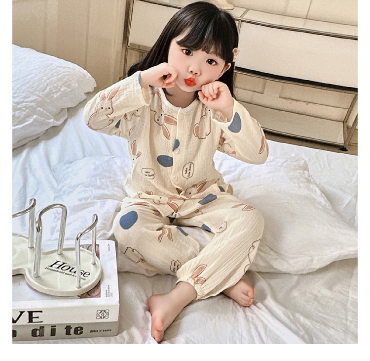 • 순면 잠옷 세트 더블 레이어 거즈 노란색 토끼