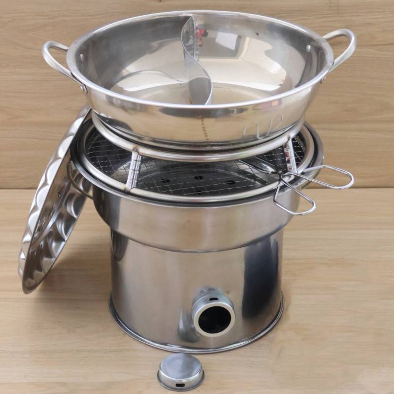 • 신형 스테인리스 숯불 난로 + 숯 클립 + 냄비 홀더 + 원양 냄비 (그릴망 포함)