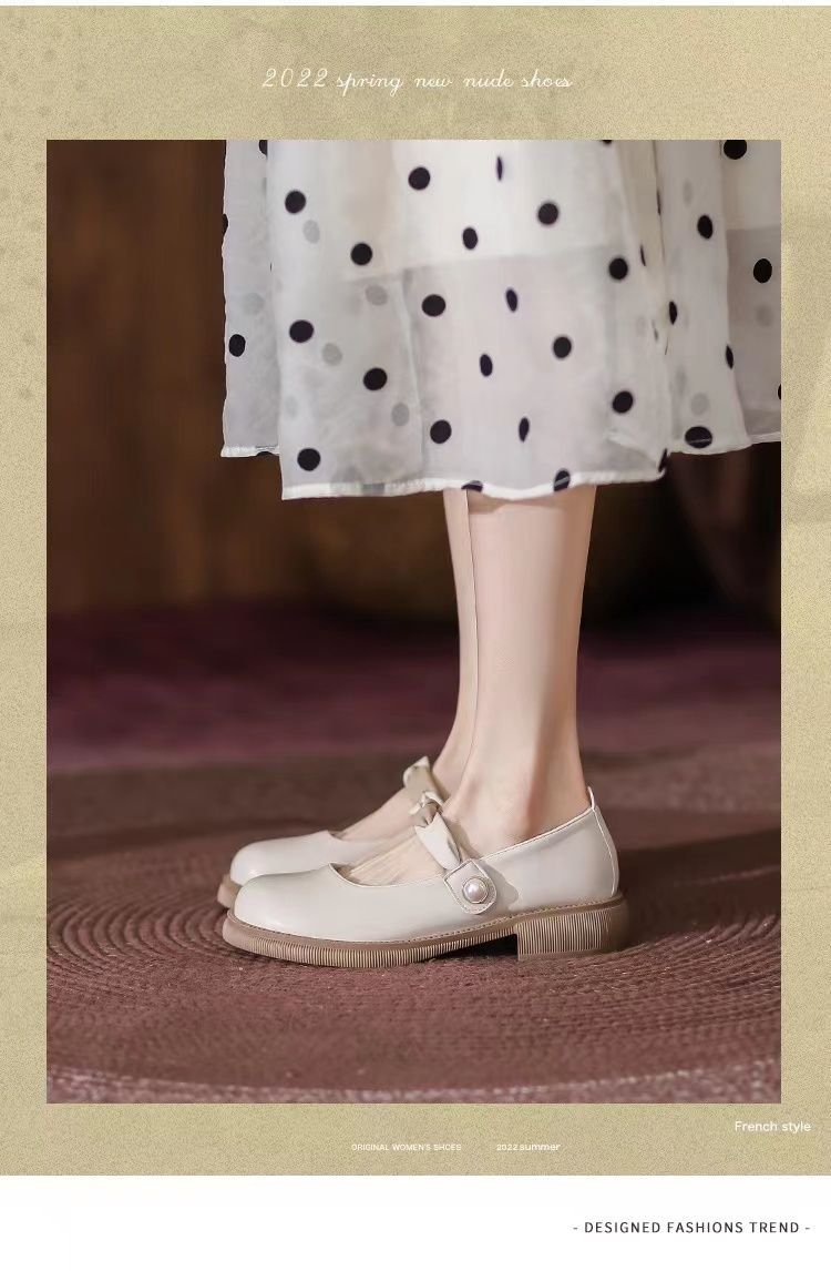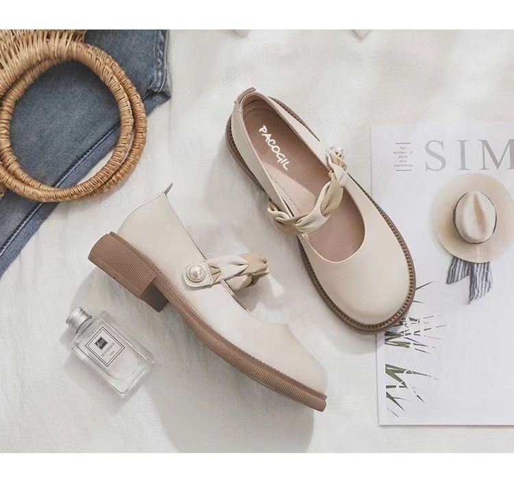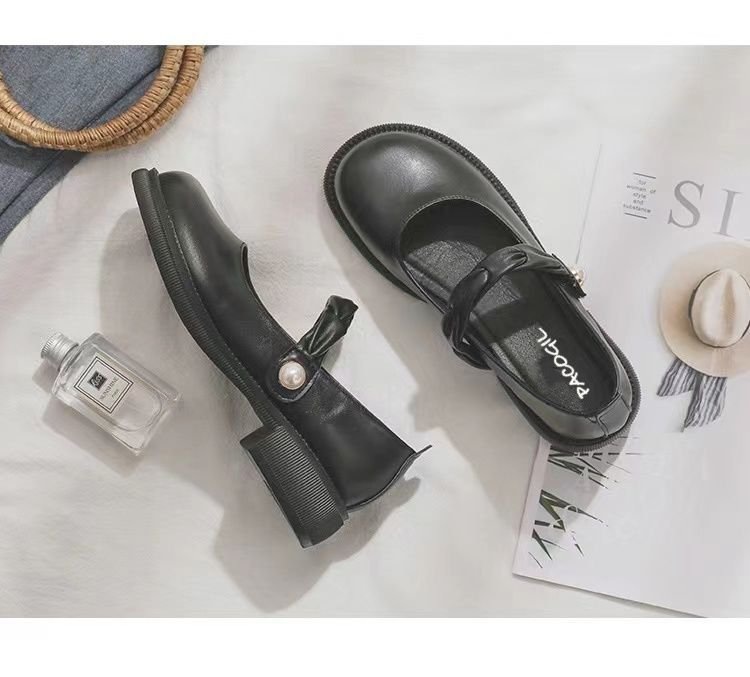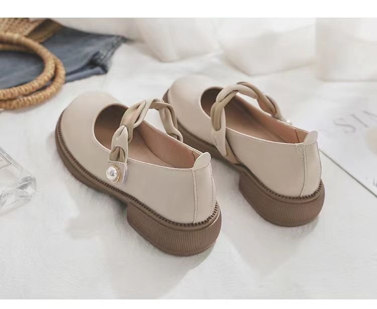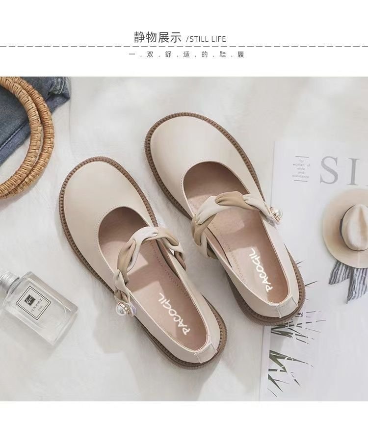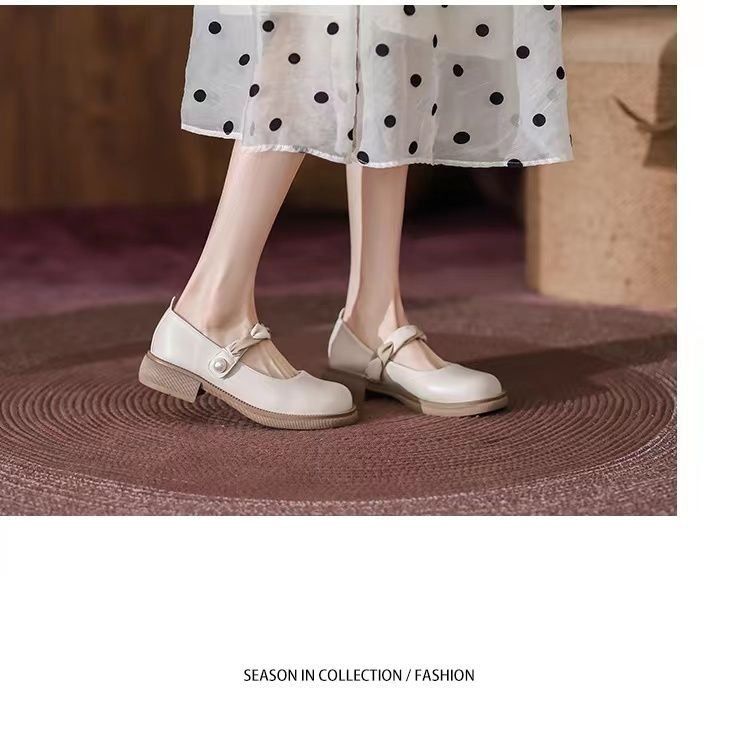프랑스 스타일 두꺼운 메리 제인 여성 신발 발가락 샌들 2025 봄과 여름 새로운 영국 스타일 가죽 신발 플랫 슈즈스토어 가기