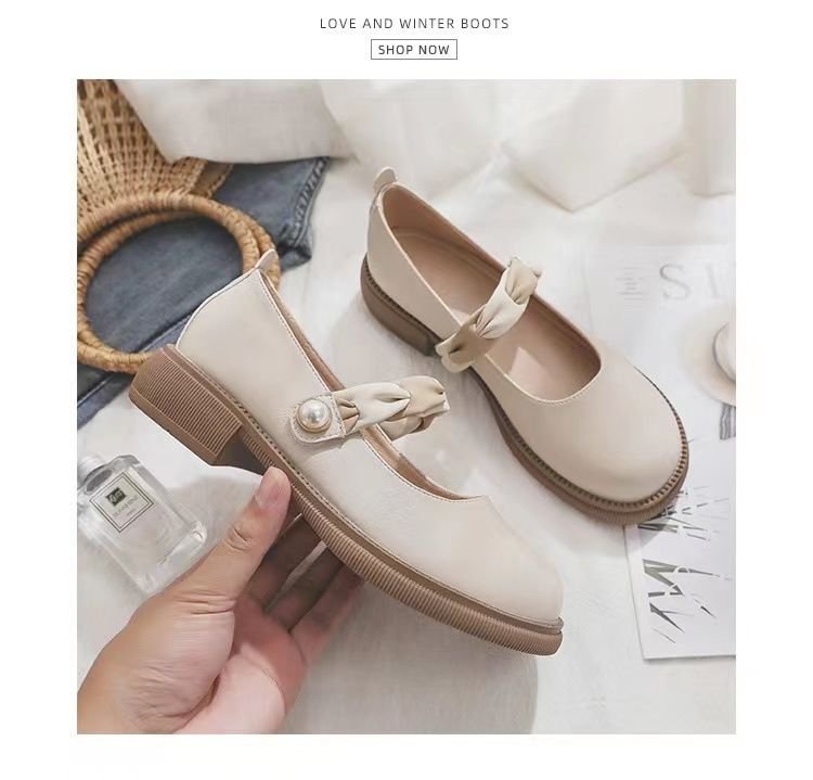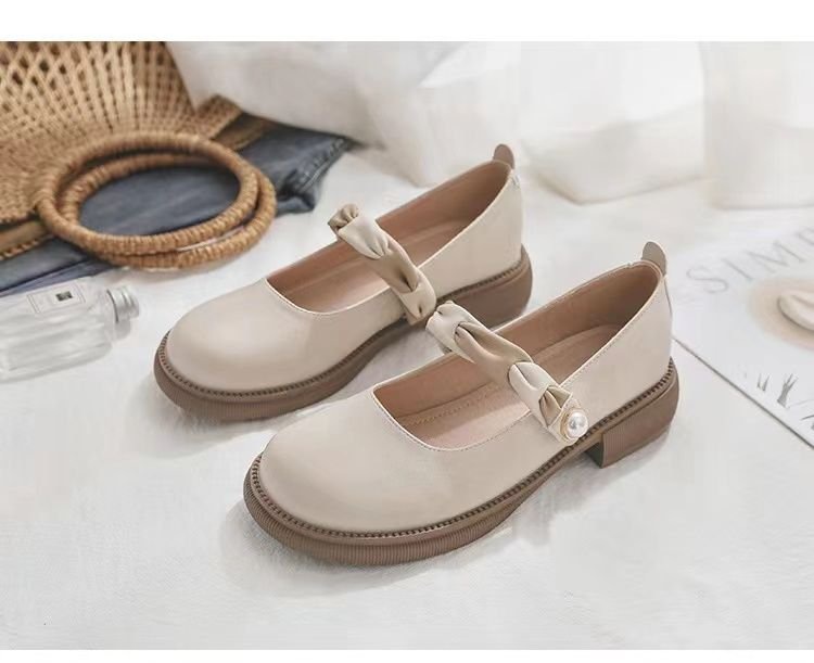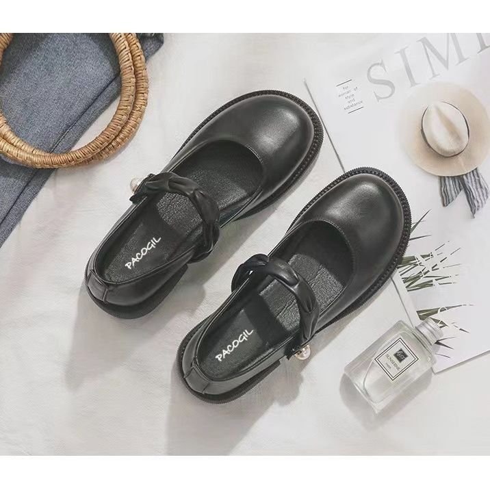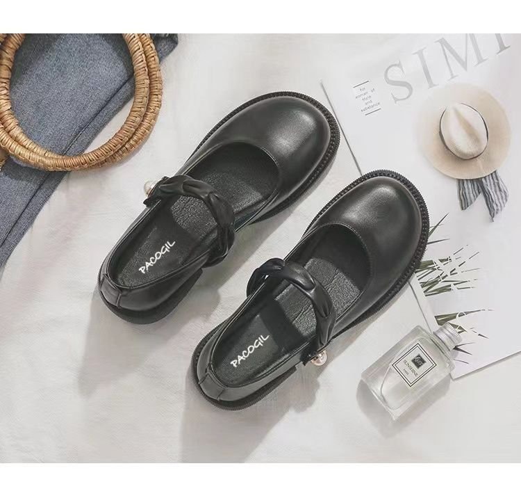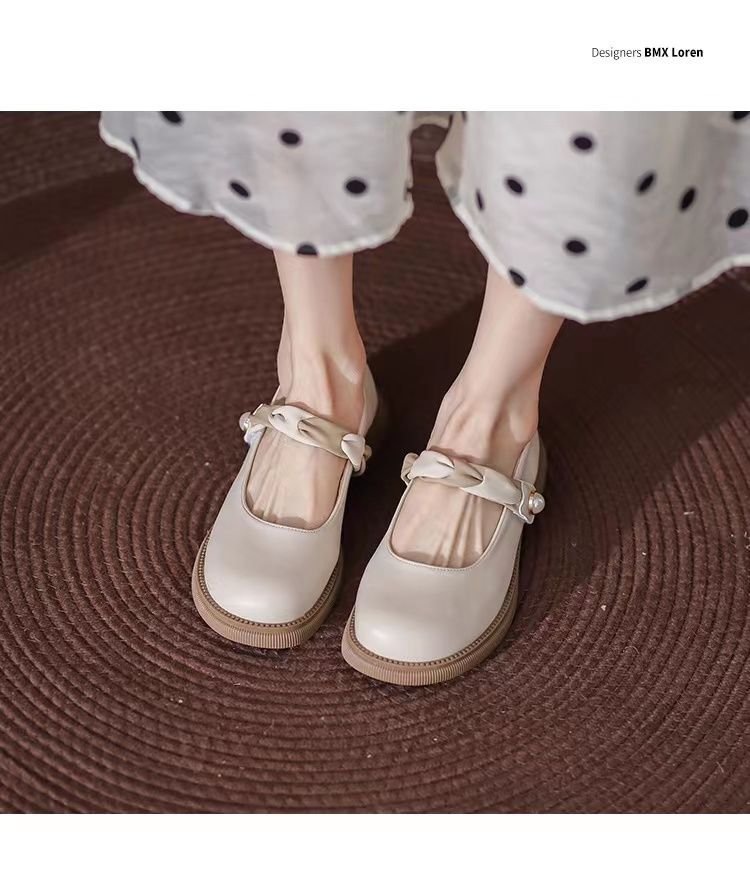 프랑스 스타일 두꺼운 메리 제인 여성 신발 발가락 샌들 2025 봄과 여름 새로운 영국 스타일 가죽 신발 플랫 슈즈스토어 가기