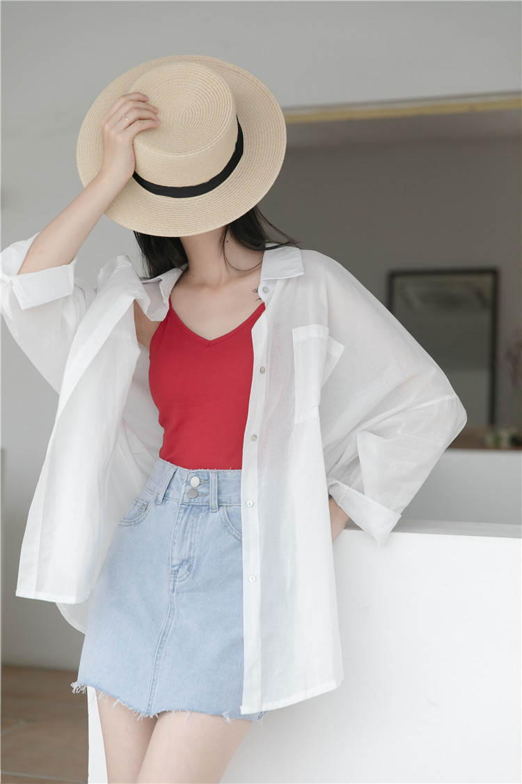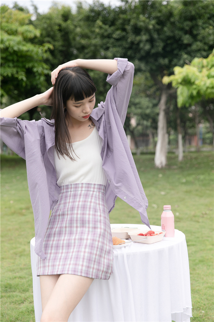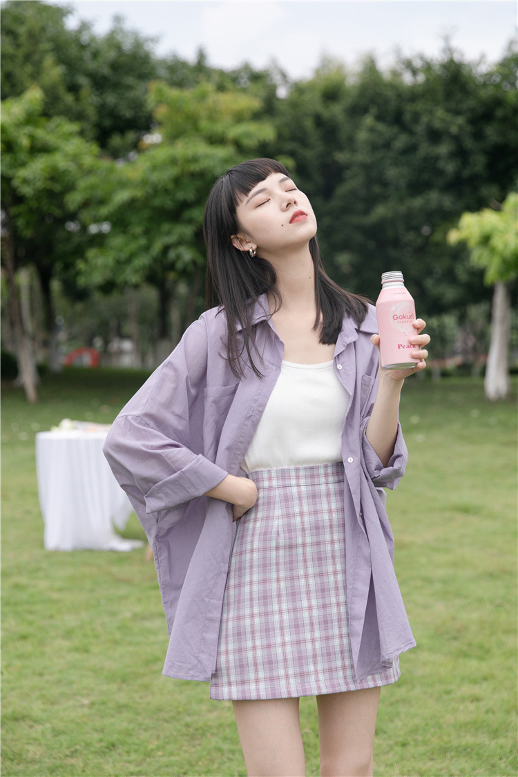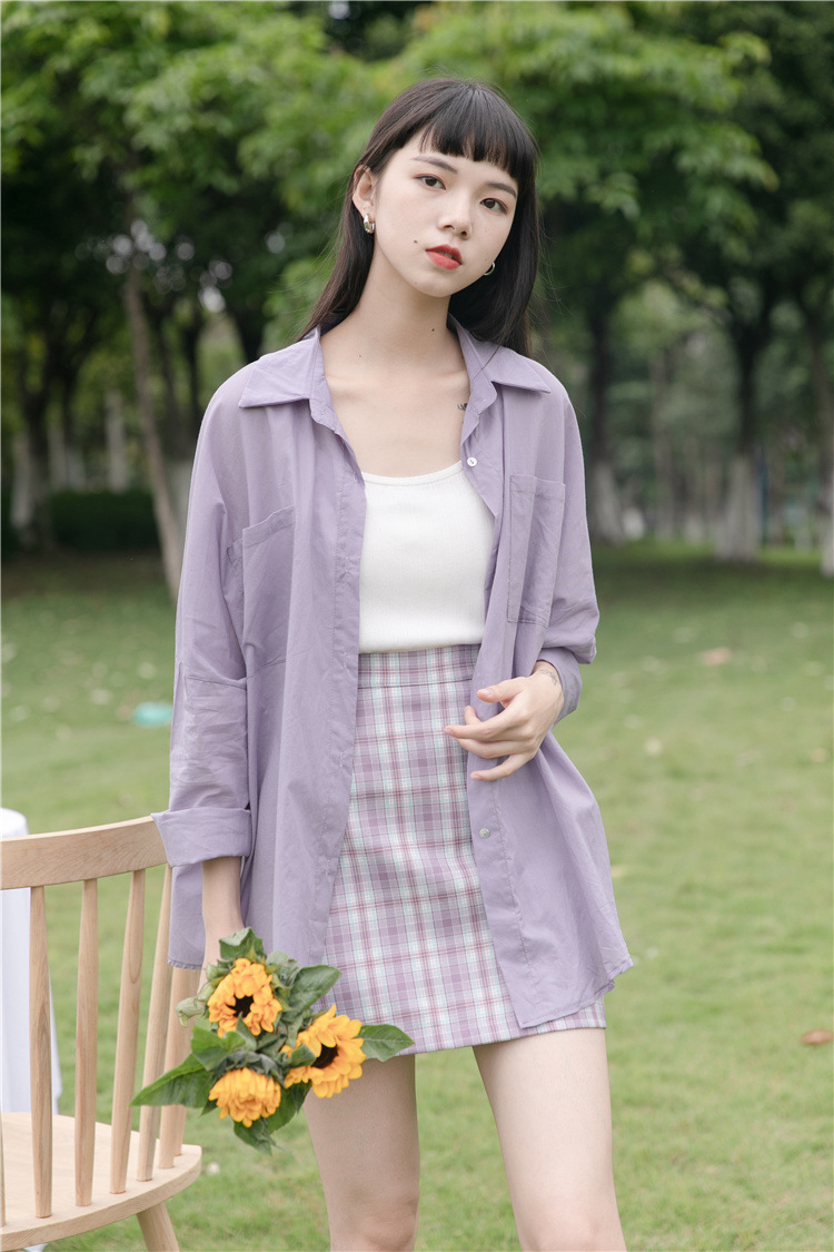여름 얇은 보라색 긴팔 선 스크린 셔츠 여자의 여름 얇은 탑 2024 새로운 봄 외부 착용 올 매치 재킷스토어 가기