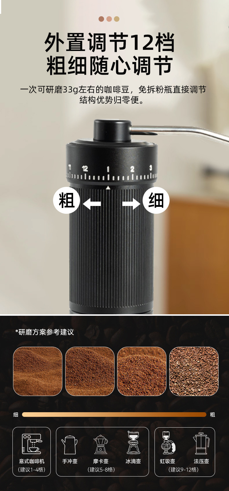 새로운 외부 콩 그라인더 핸드 커피 머신 야외 휴대용 수동 커피 그라인더 CNC 스틸 코어 그라인더 콩 그라인더