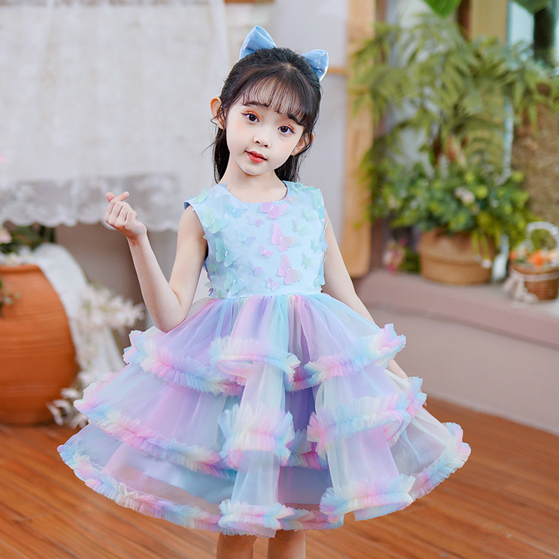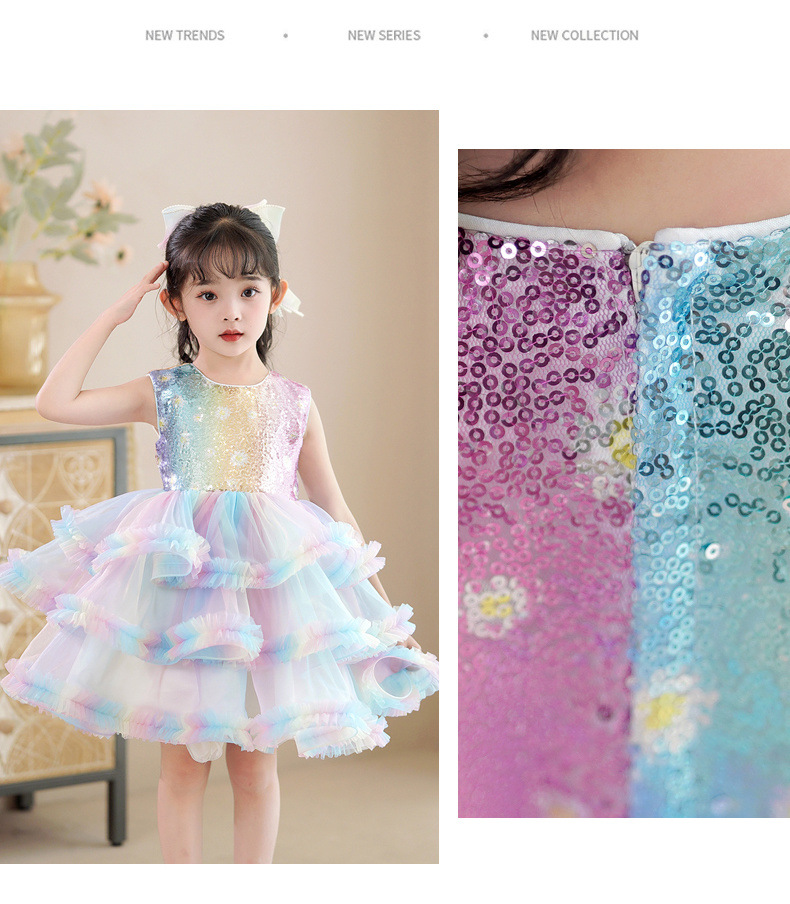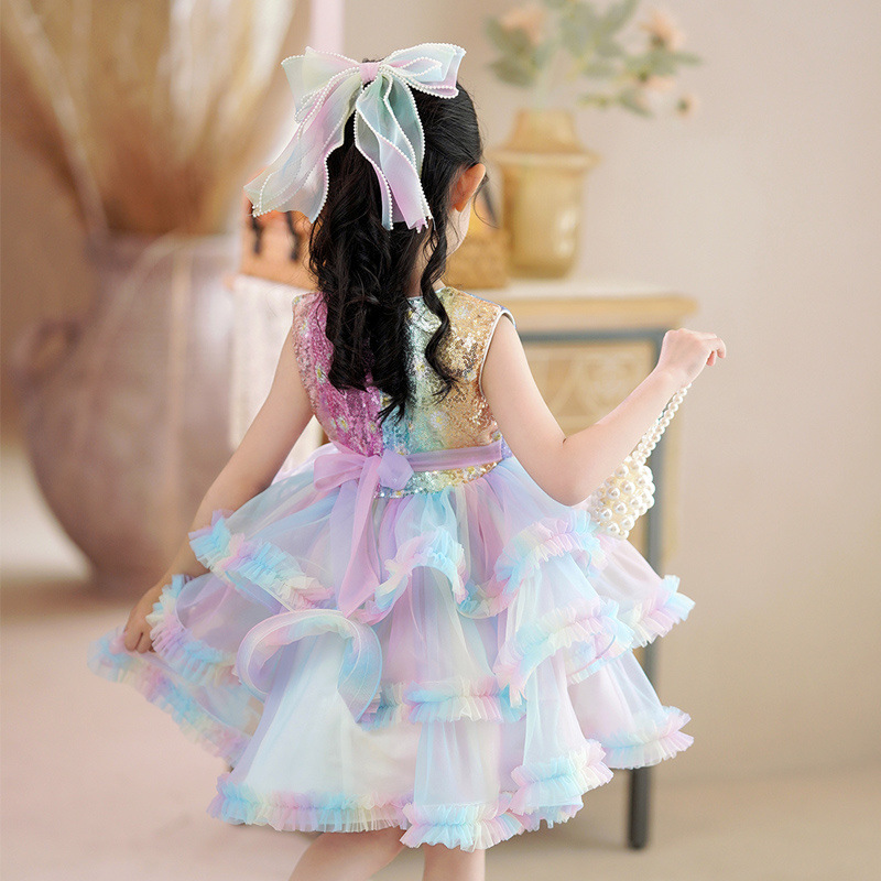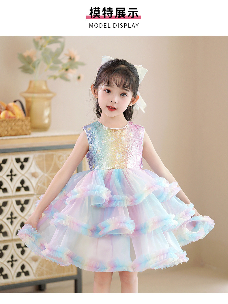 소녀 스팽글 털린 원사 공주 스커트 어린이 서양식 민소매 베셋 스커트 컬러 케이크 스커트 6 일 공연 원피스스토어 가기