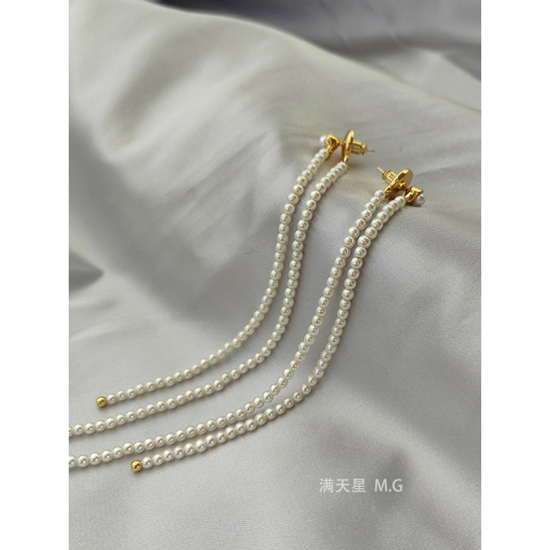 긴 진주 술 귀걸이 가벼운 고급 우아한 실버 핀 귀걸이 긴 귀걸이 여성용 귀걸이스토어 가기