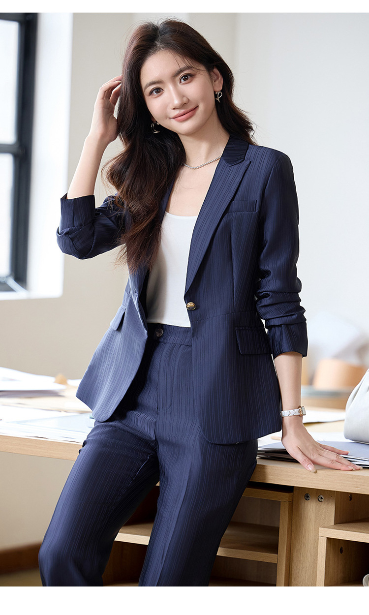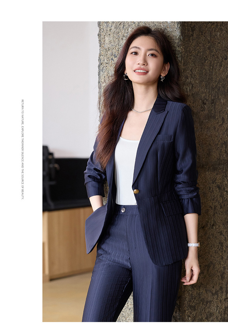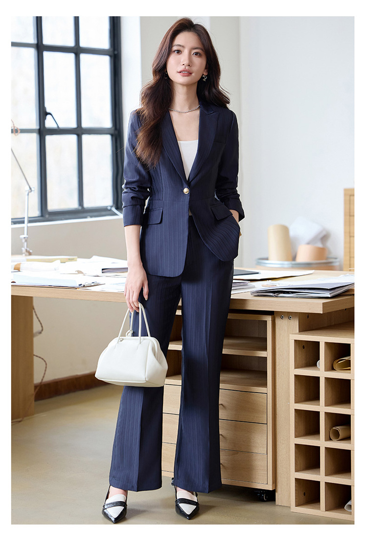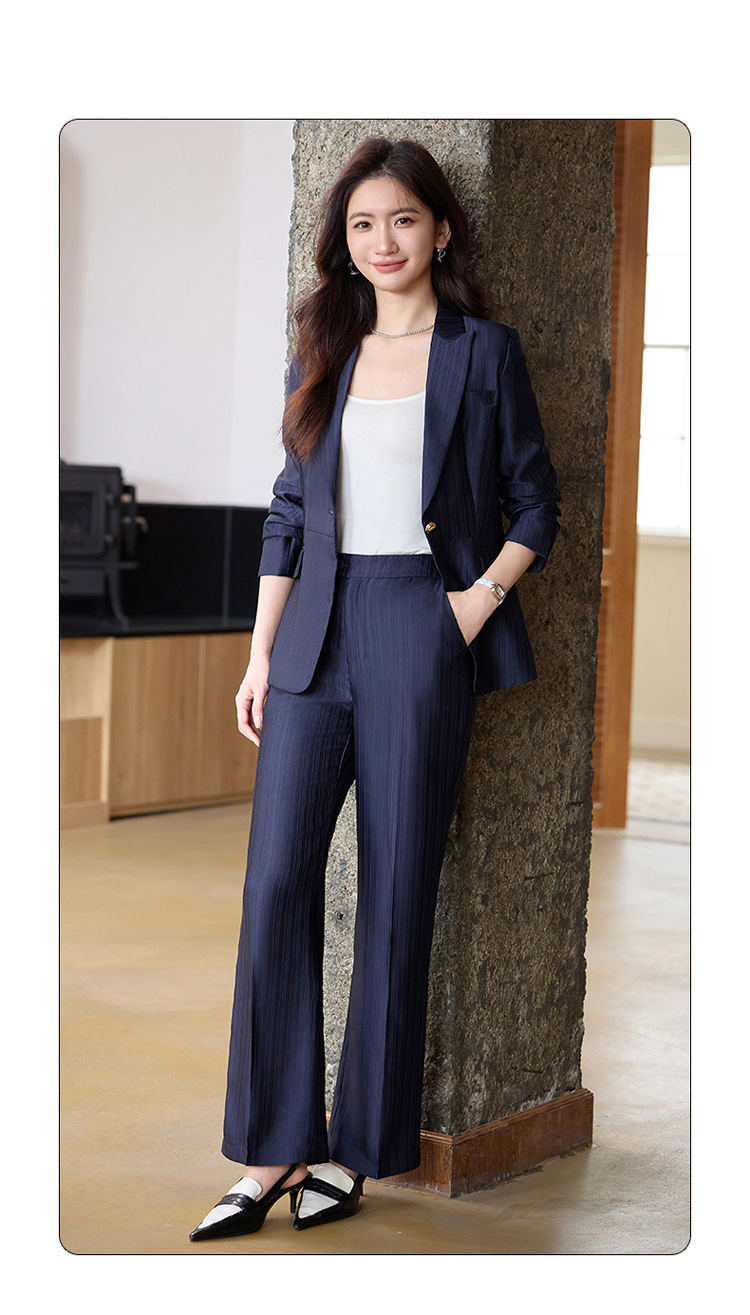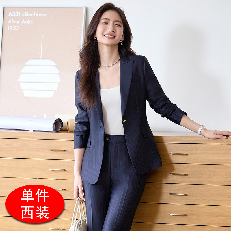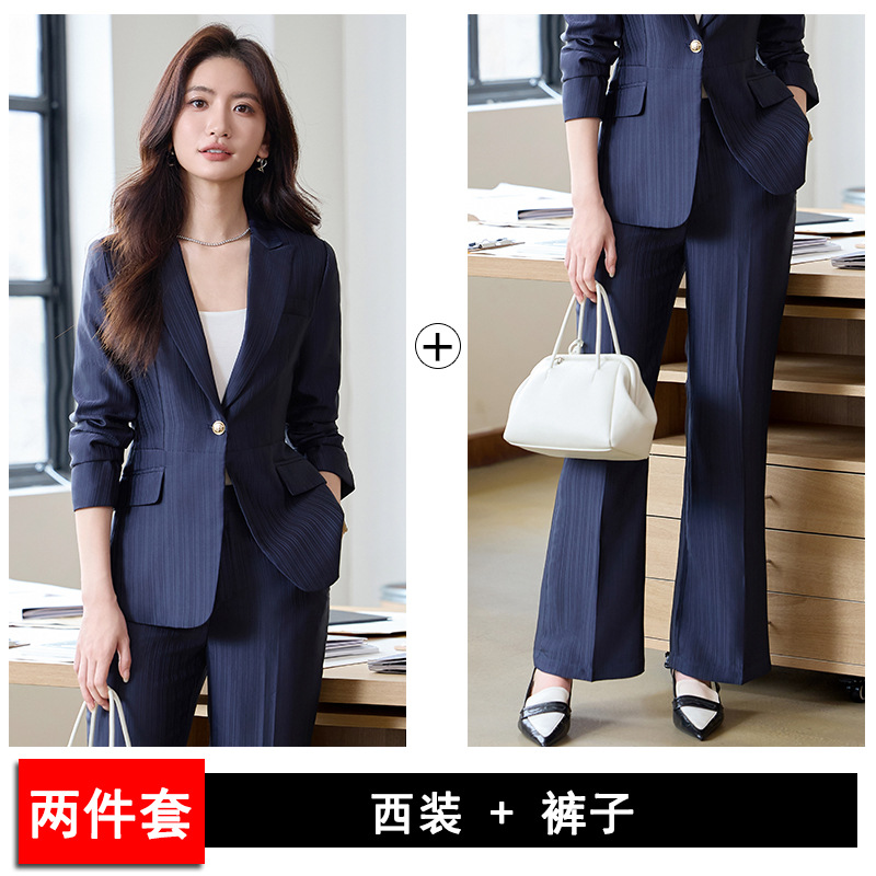 줄무늬 세트 세트 여성의 2025 새로운 봄과 가을 사업 착용 기질 여신 팬 고급 관리자 작업 옷 세트스토어 가기