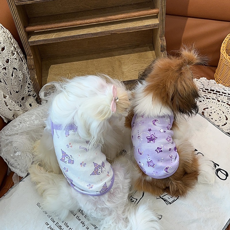 애완동물 조끼 봄철 만화 노란 오리 강아지 편안하고 통기성 좋은 반팔 티셔츠 의류 도매 땀 흡수 비숑