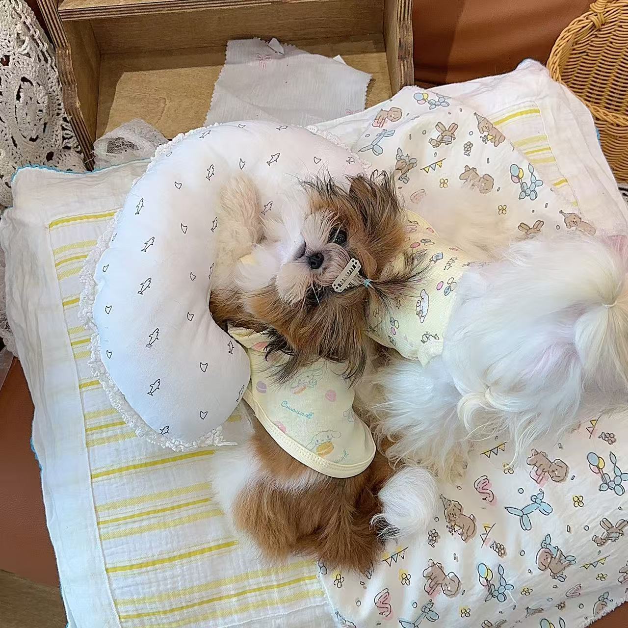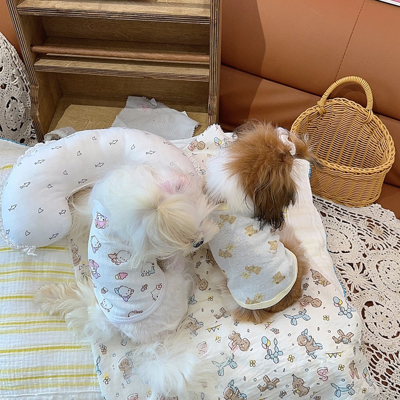 애완동물 조끼 봄철 만화 노란 오리 강아지 편안하고 통기성 좋은 반팔 티셔츠 의류 도매 땀 흡수 비숑스토어 가기