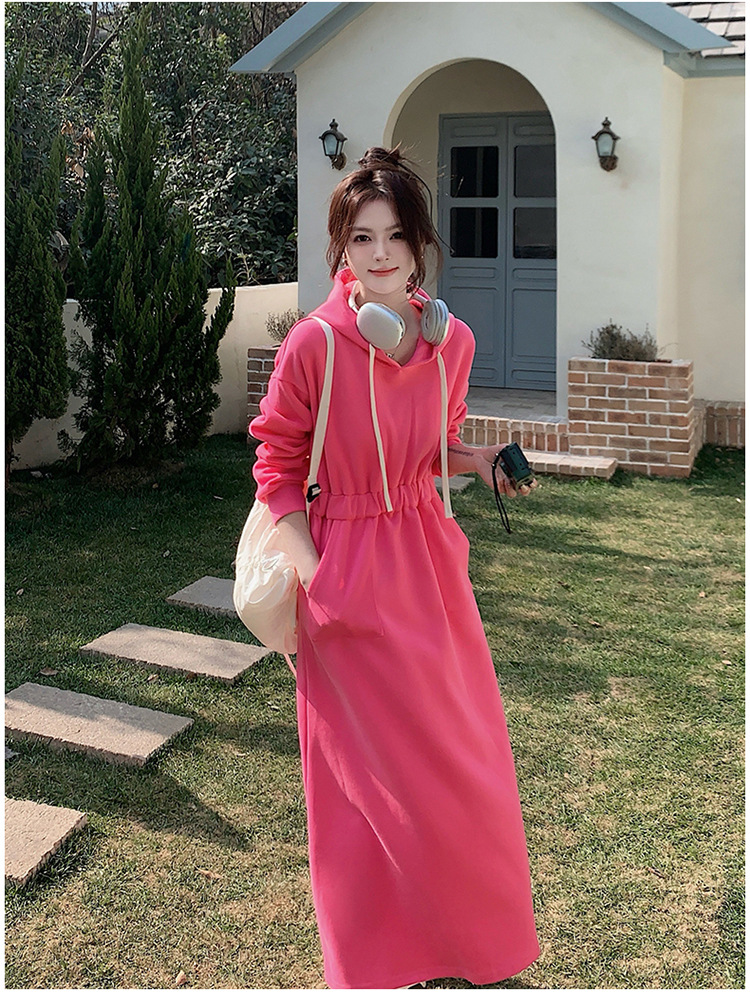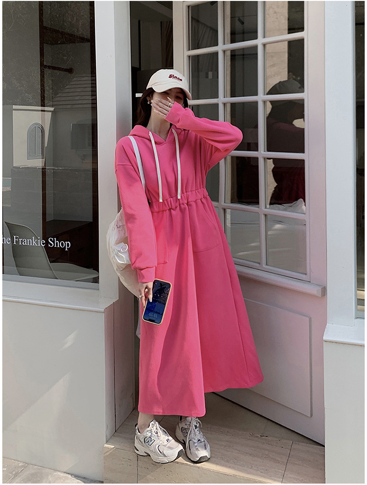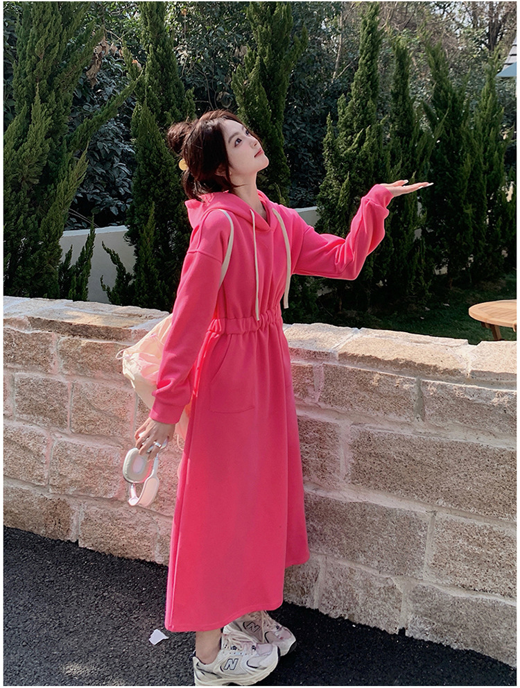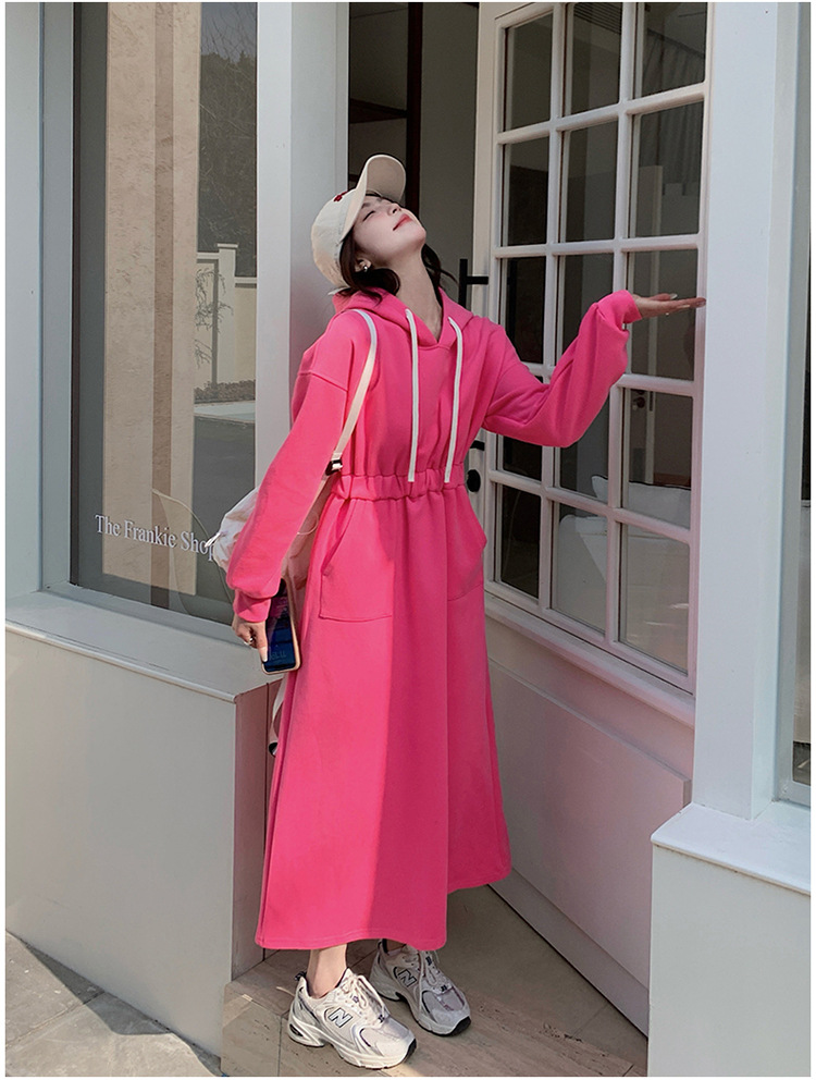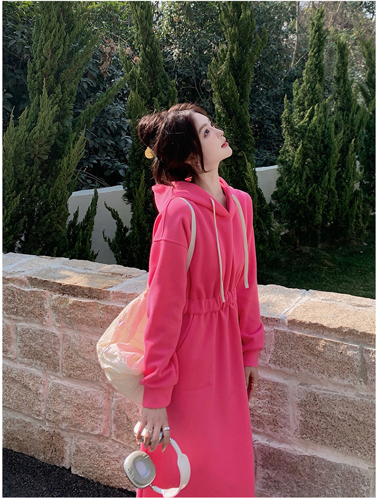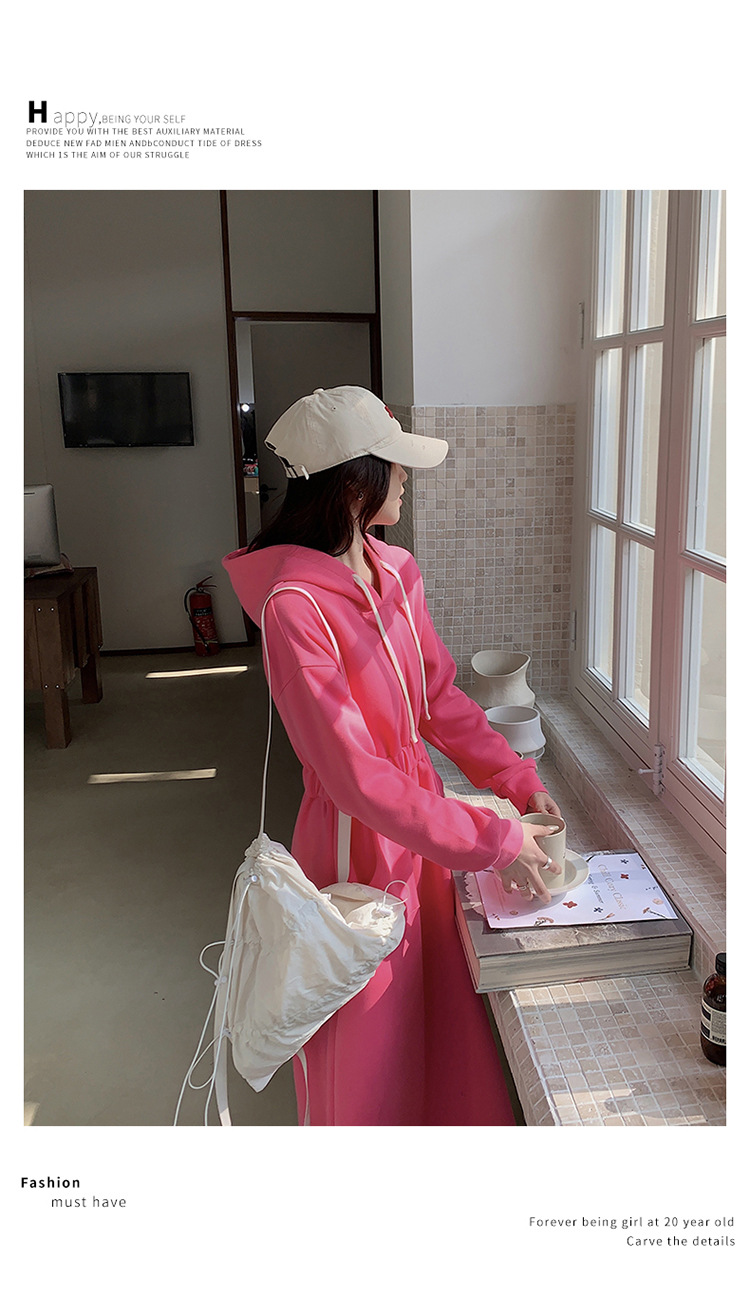 [Mengmei] 25 Chunyifa 핑크 캐주얼 후드 땀 작은 순수한 허리 슬림 원피스스토어 가기