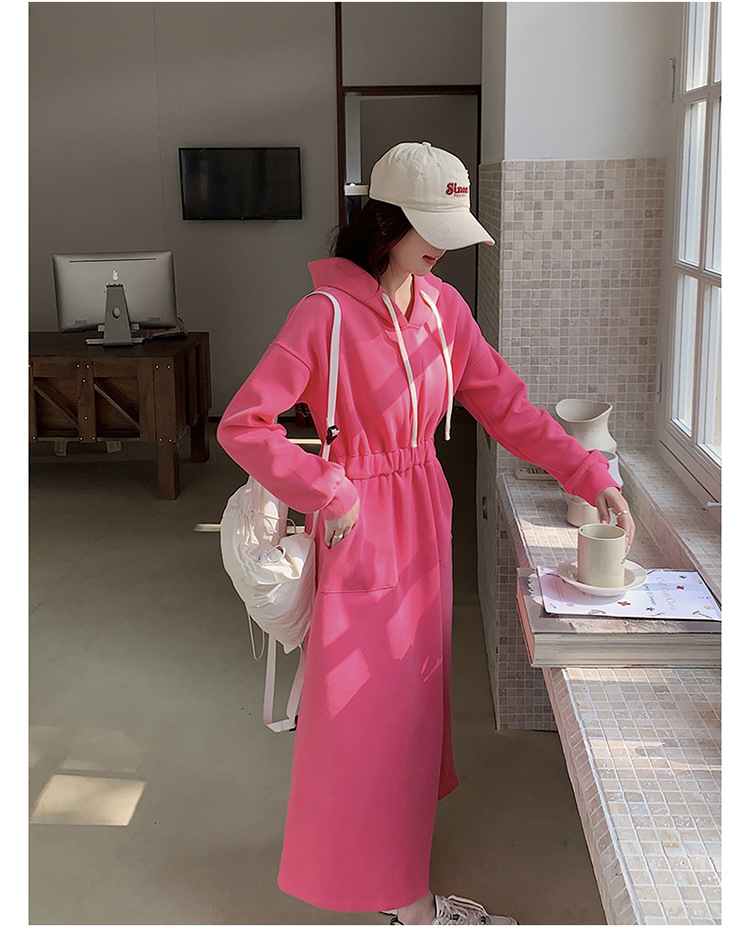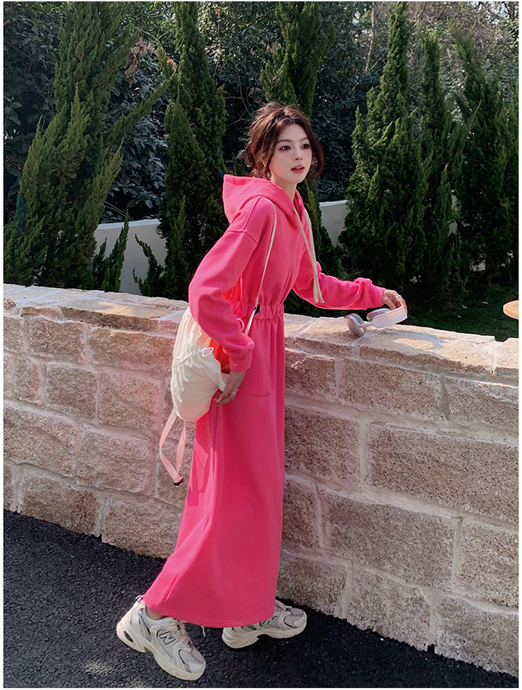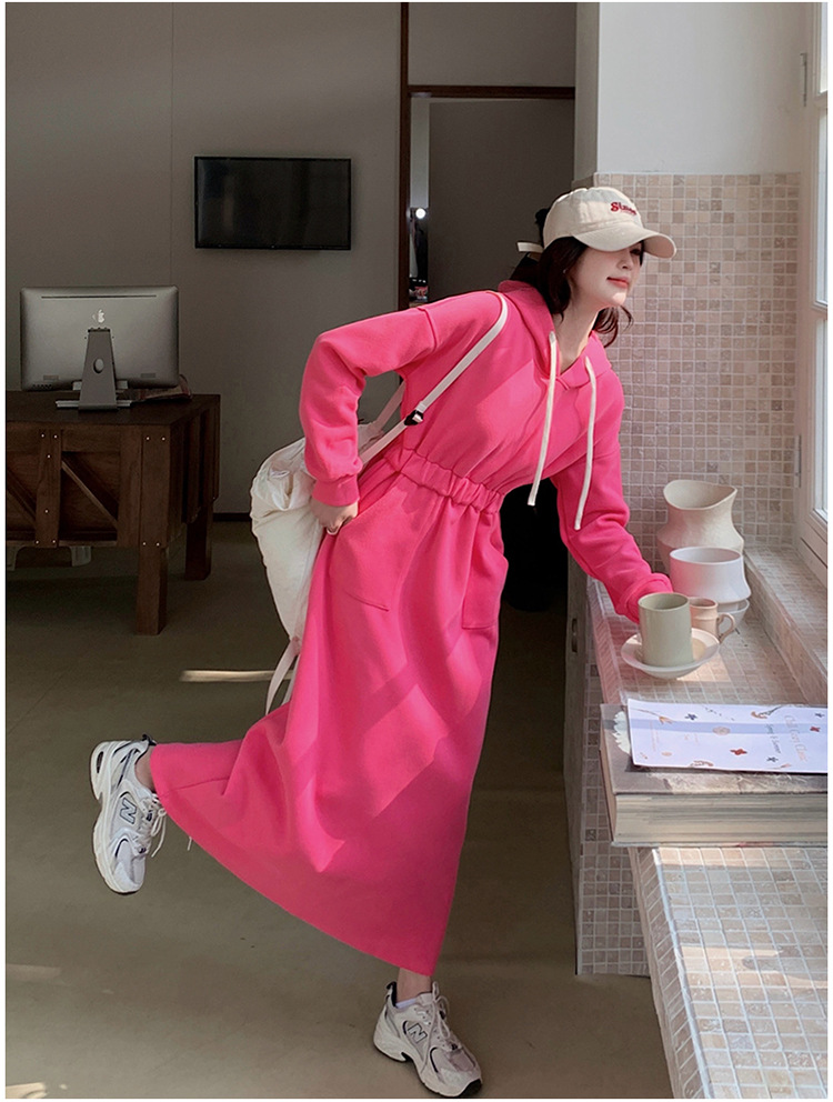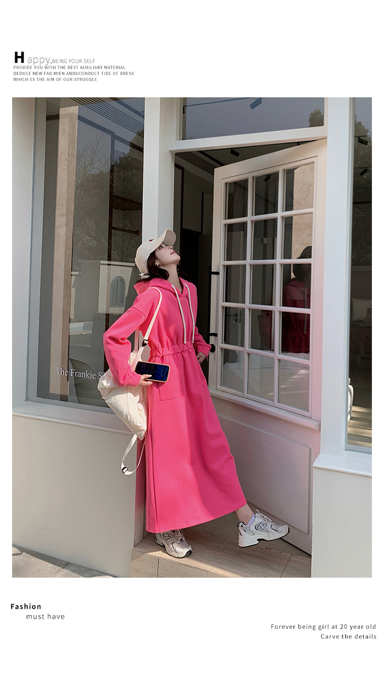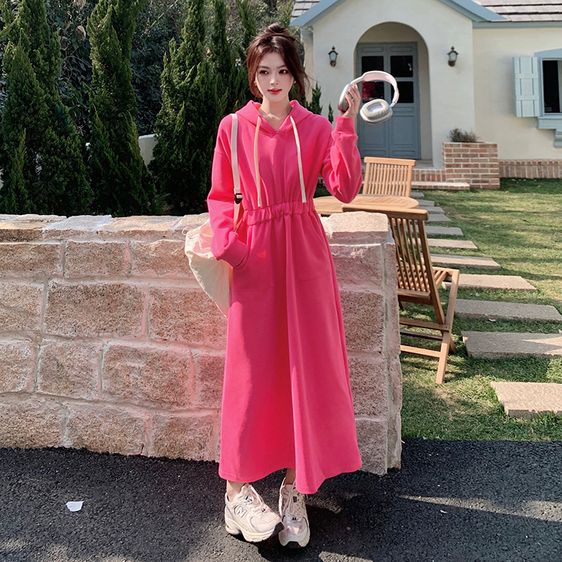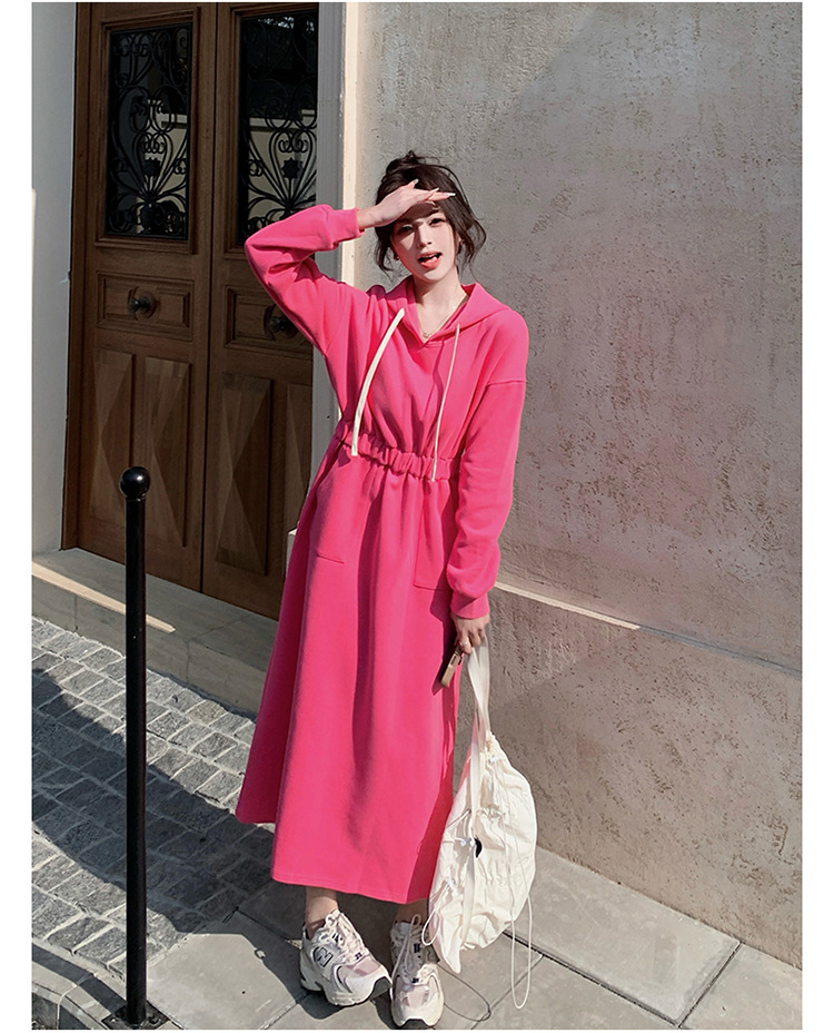 [Mengmei] 25 Chunyifa 핑크 캐주얼 후드 땀 작은 순수한 허리 슬림 원피스스토어 가기