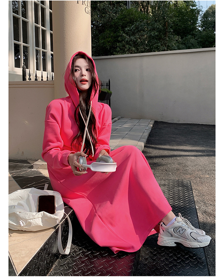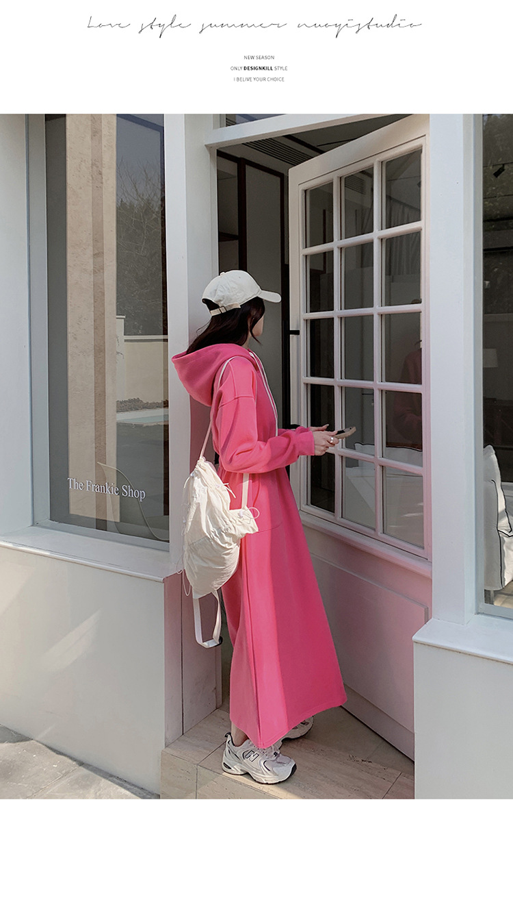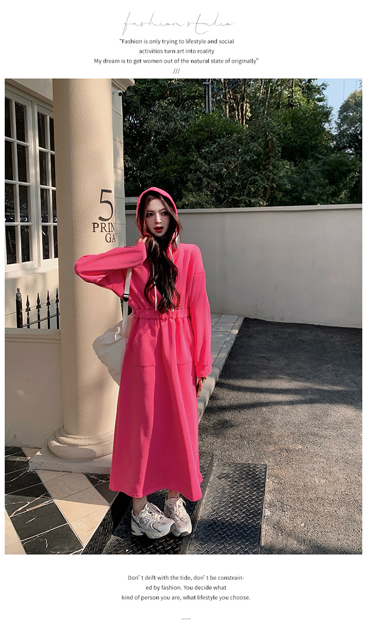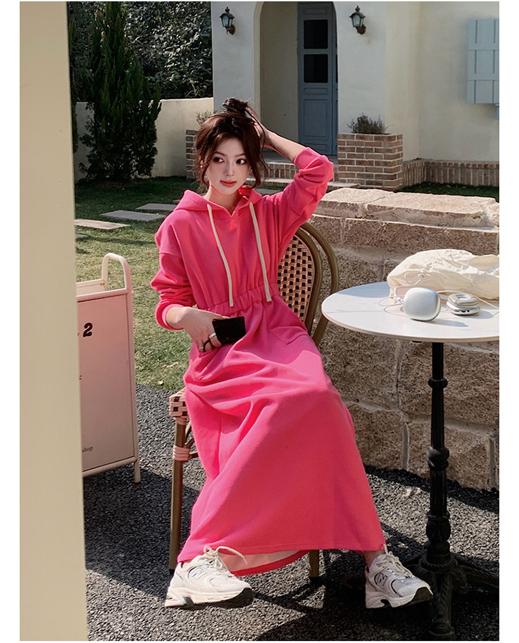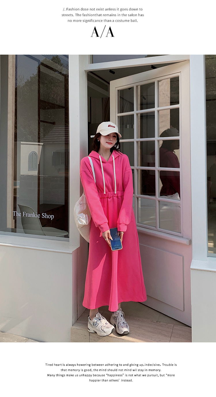 [Mengmei] 25 Chunyifa 핑크 캐주얼 후드 땀 작은 순수한 허리 슬림 원피스스토어 가기