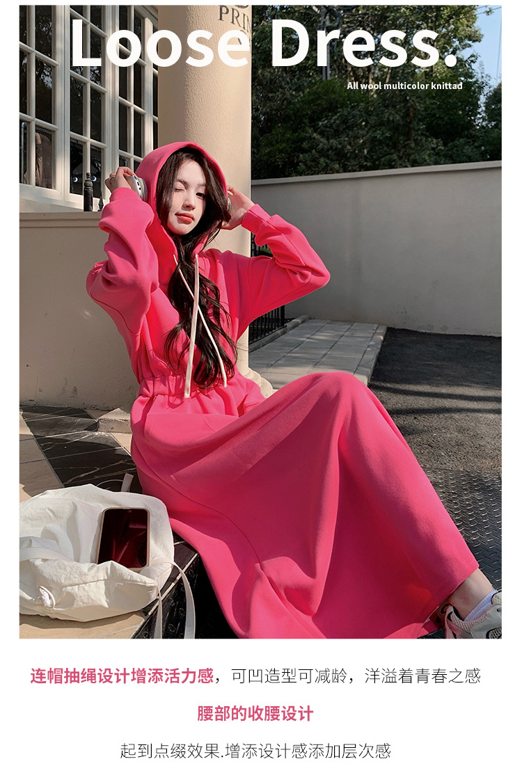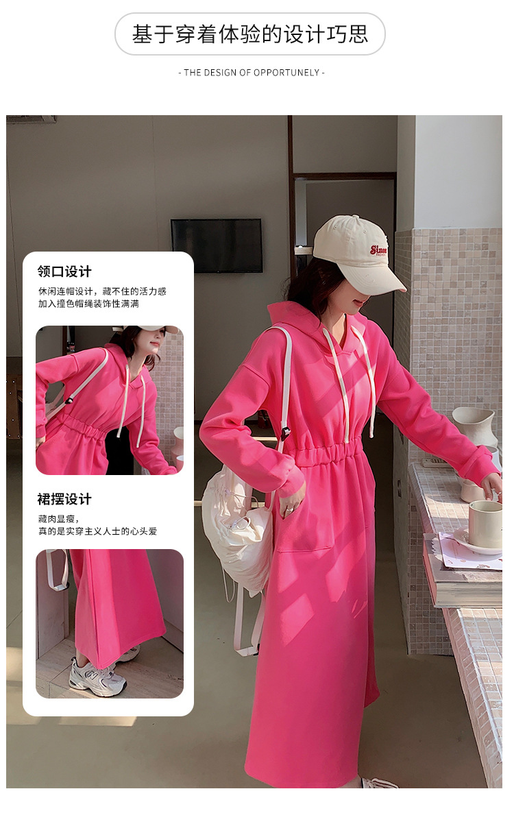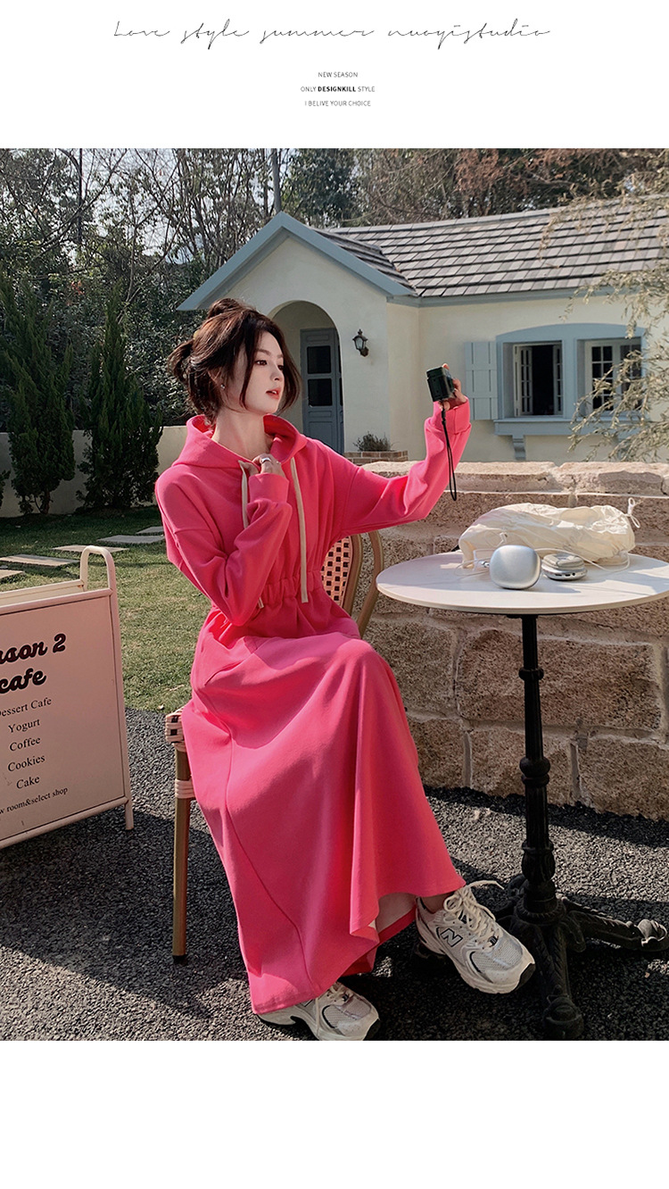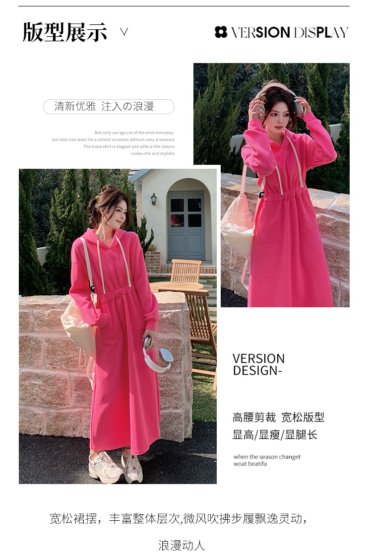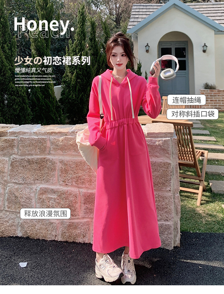 [Mengmei] 25 Chunyifa 핑크 캐주얼 후드 땀 작은 순수한 허리 슬림 원피스