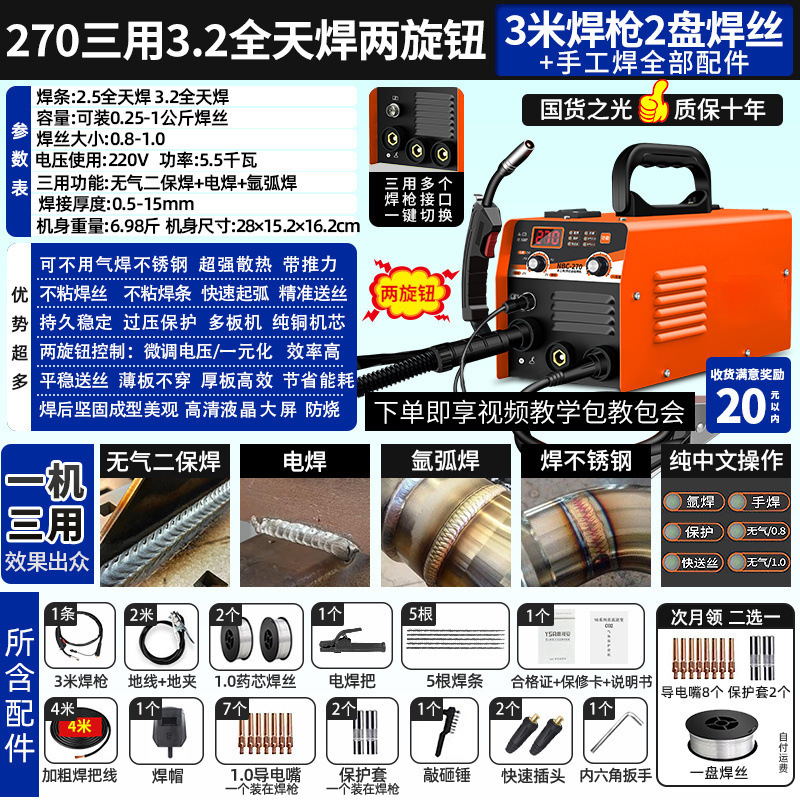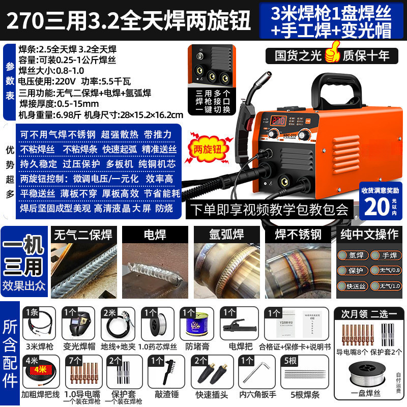 • 5kg 270 삼용 3.2 설치: 건 3m개 용접 와이어 조광 캡 1개
