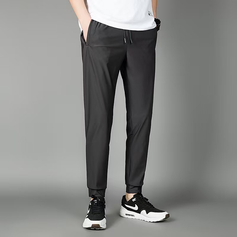 여름 아이스 실크 스포츠 남자 바지 얇은 빠른 건조 스트레이트 바지 여름 느슨한 플러스 사이즈 뚱뚱한 남자 캐주얼 바지스토어 가기
