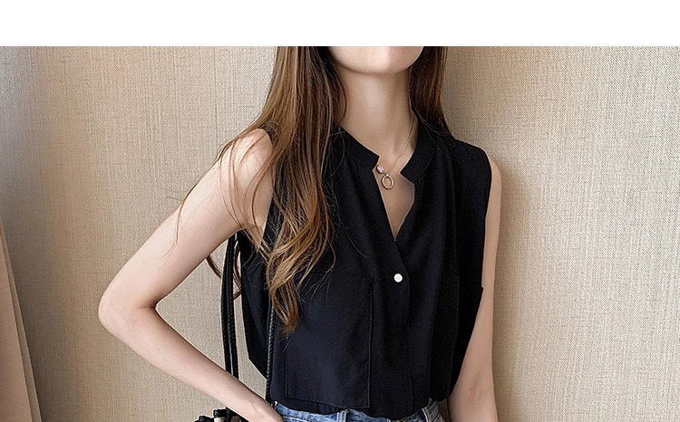 조끼 민소매 셔츠 여자 여름 새로운 올매치 톱 웨스턴 스타일 셔츠 한국식 셔츠 셔츠 느슨한 쉬폰 셔츠