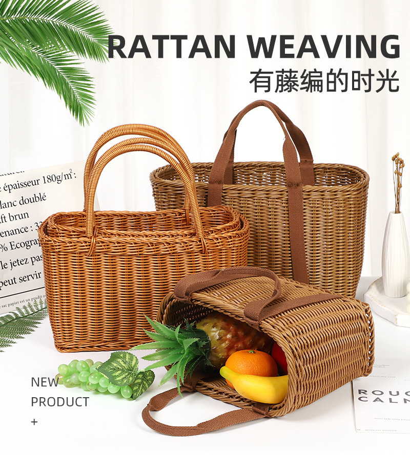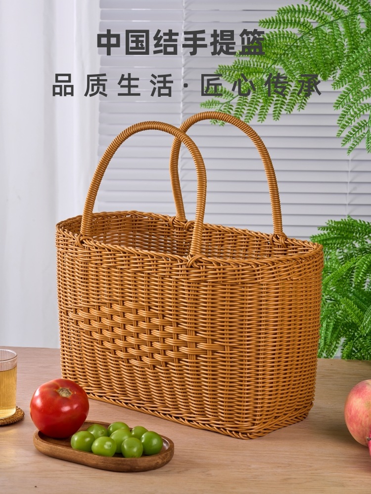 쇼핑 바구니 휴대용 바구니 등나무 짠 순수 짠 중국 매듭 꽃 바구니 따기 피크닉 홈 구매 과일 및 야채 바구니