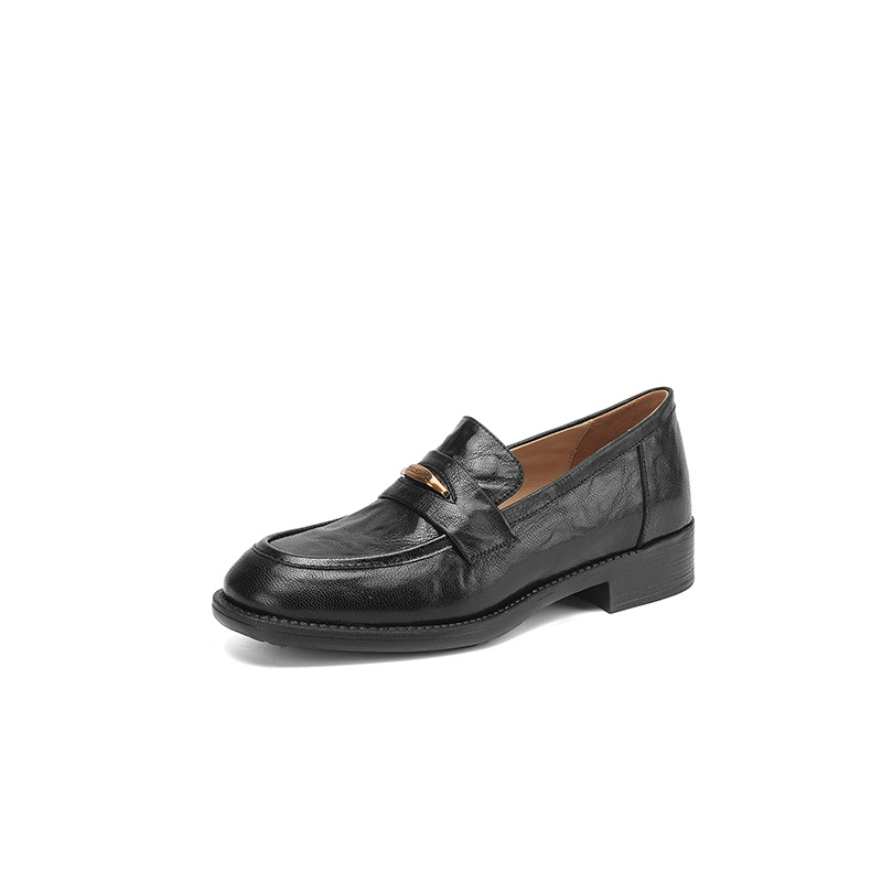 양가죽 로퍼의 첫 번째 레이어 2025 봄 새로운 금속 장식 작은 가죽 신발 여성의 낮은 뒤꿈치 캐주얼 영국 신발 40스토어 가기