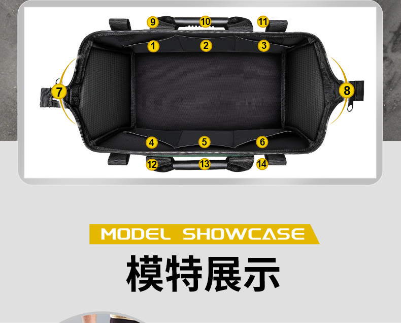 • 18inch [5겹의 천 + 강철 못 보강] 작은 도구 + 전기 드릴 액세서리를 담을 수 있습니다.