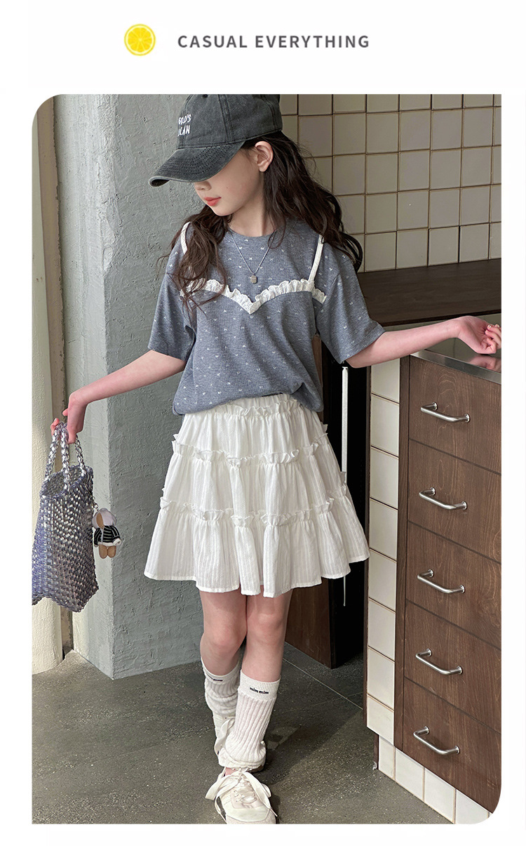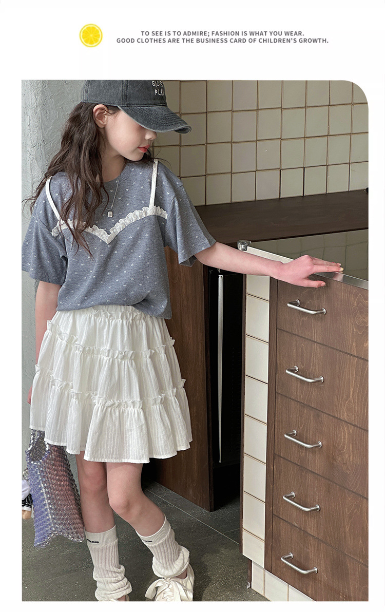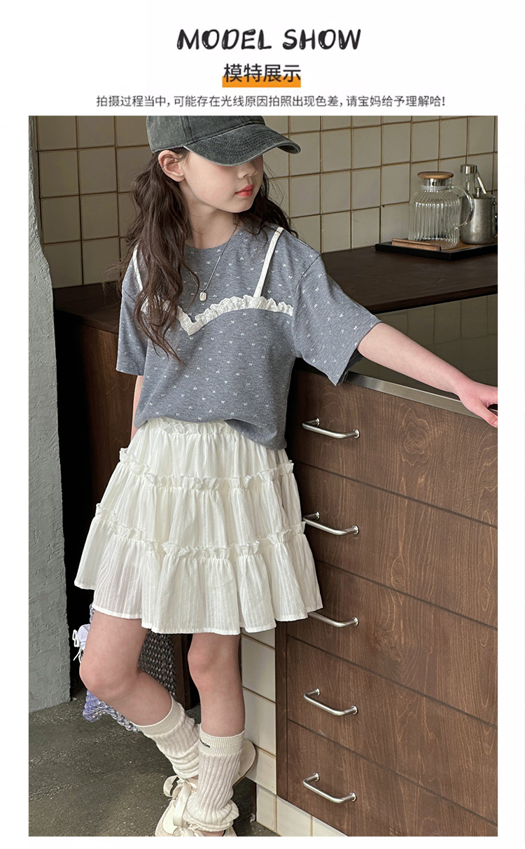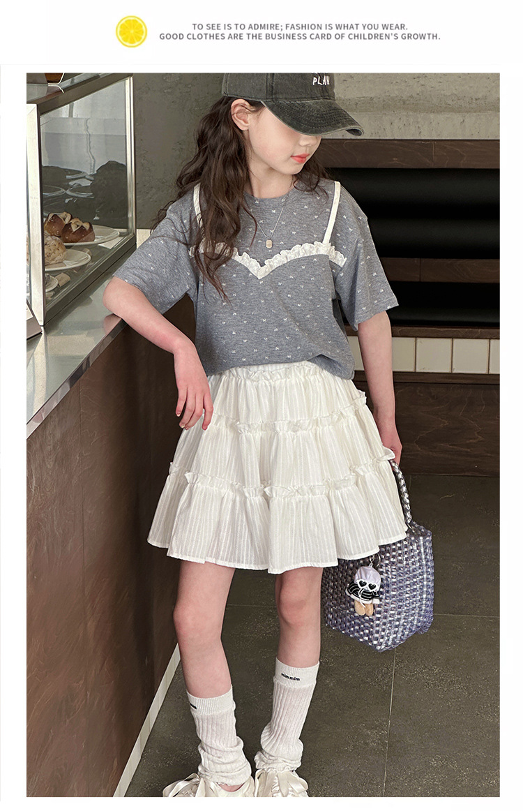 소녀 여름 옷 세트 2025 새로운 스타일 중첩 어린이 반팔 투피스 소녀의 여름 어린이 얇은 옷
