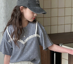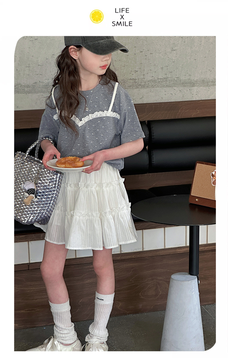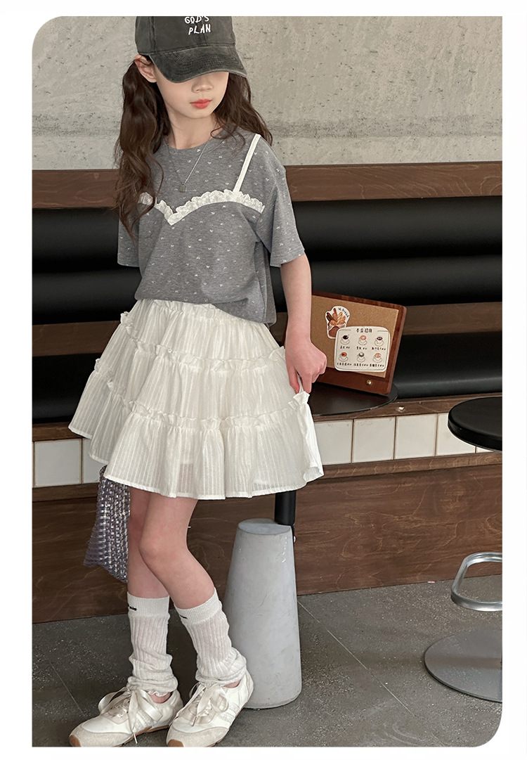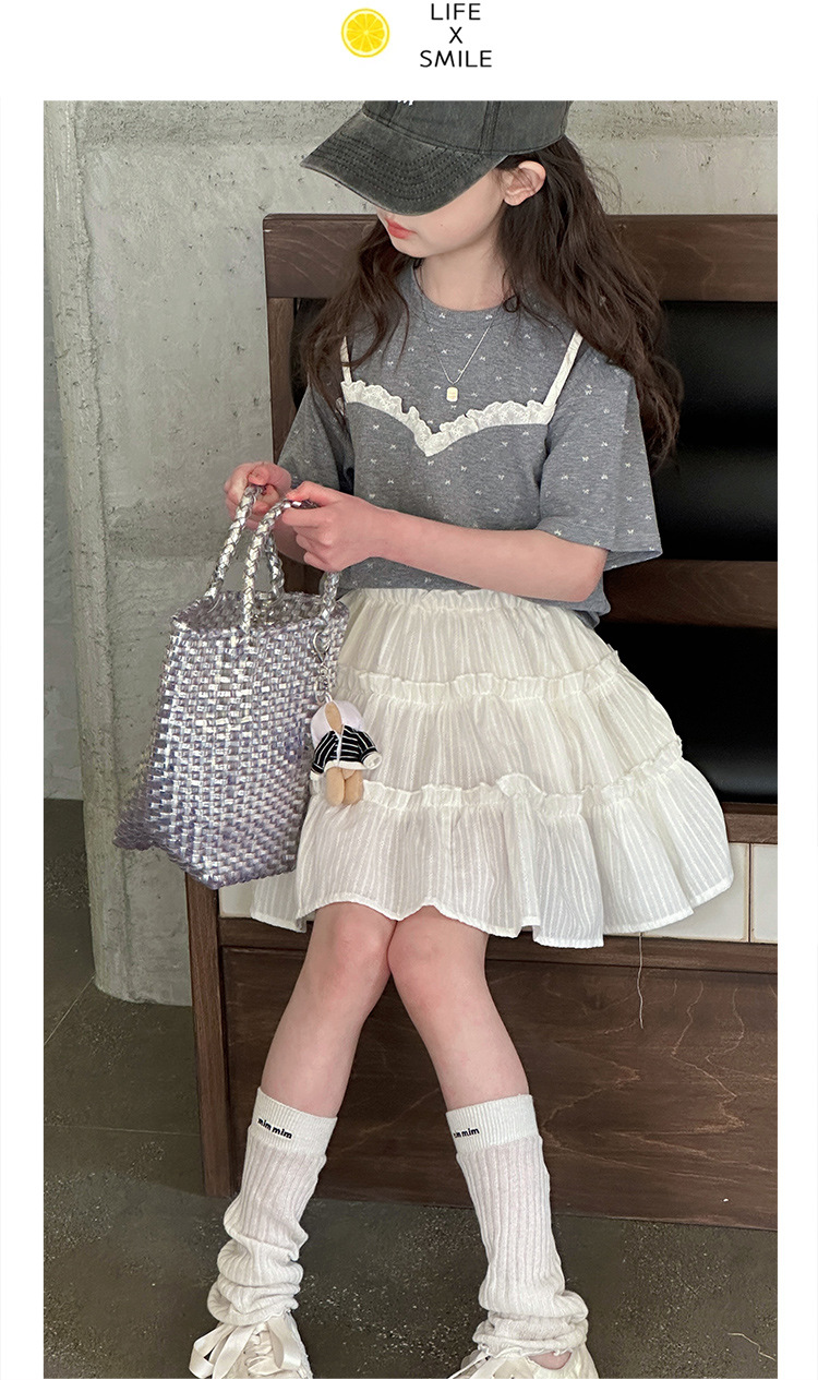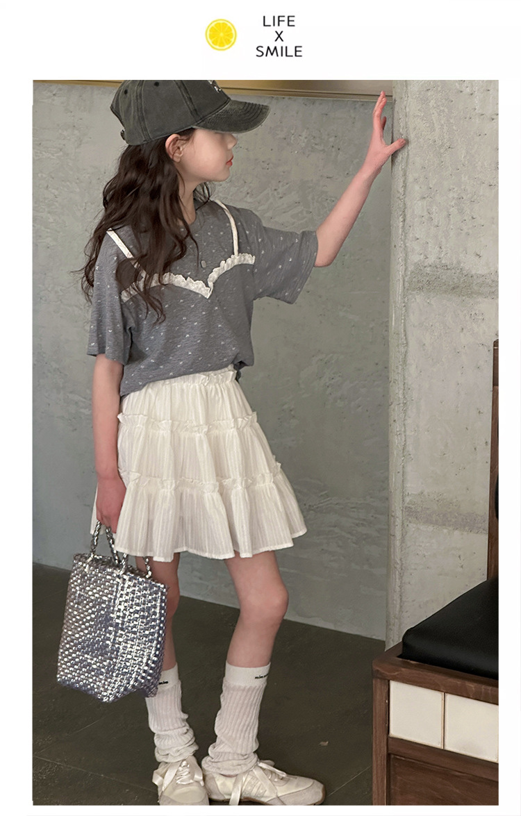 소녀 여름 옷 세트 2025 새로운 스타일 중첩 어린이 반팔 투피스 소녀의 여름 어린이 얇은 옷