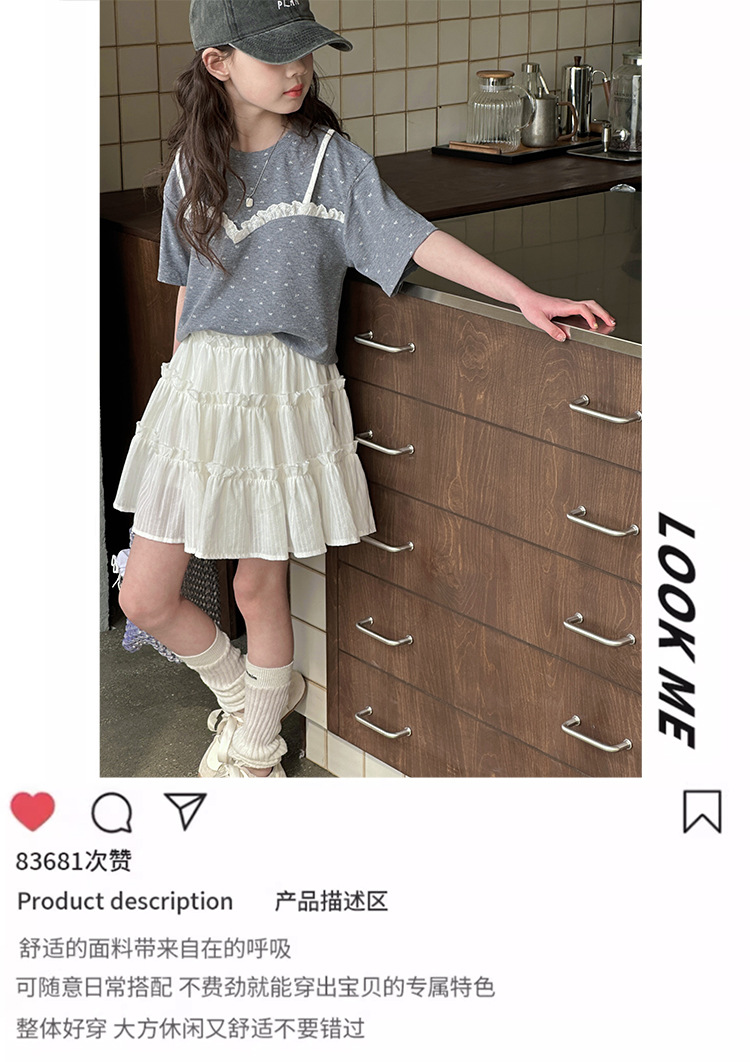 소녀 여름 옷 세트 2025 새로운 스타일 중첩 어린이 반팔 투피스 소녀의 여름 어린이 얇은 옷스토어 가기