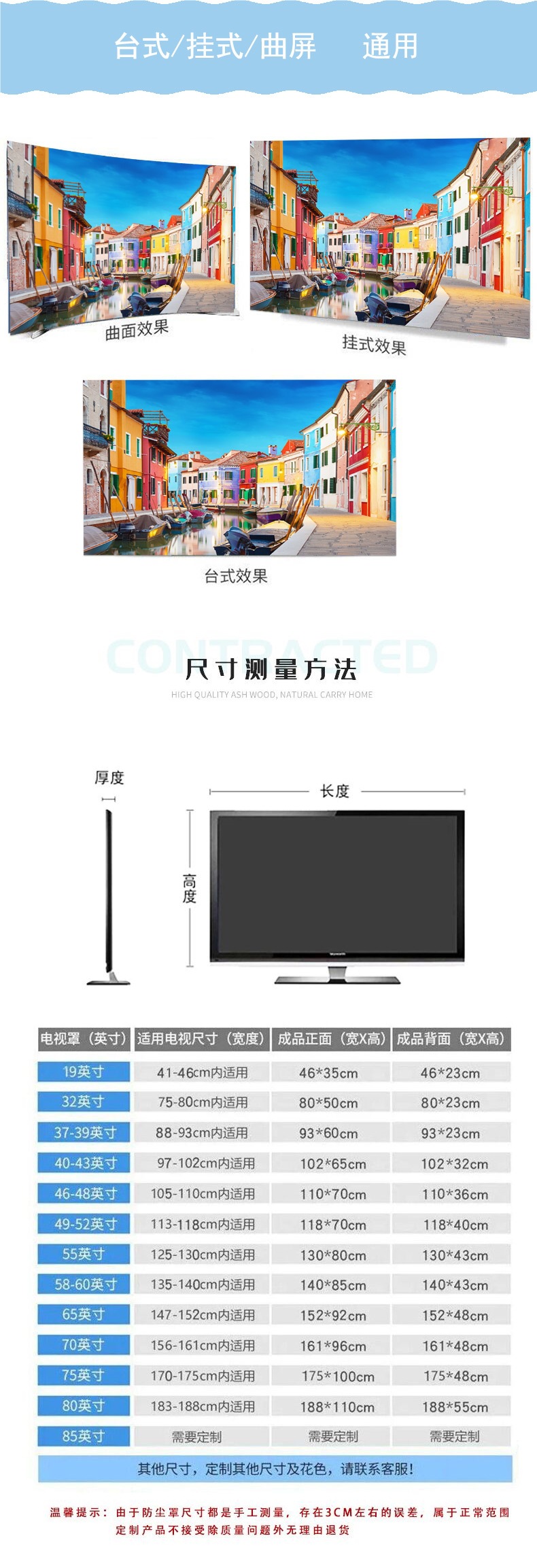 새로운 TV 커버 먼지 커버 먼지 커버 보호 커버 보호 커버 55 인치 65 매달려 데스크탑 곡선 화면 북유럽