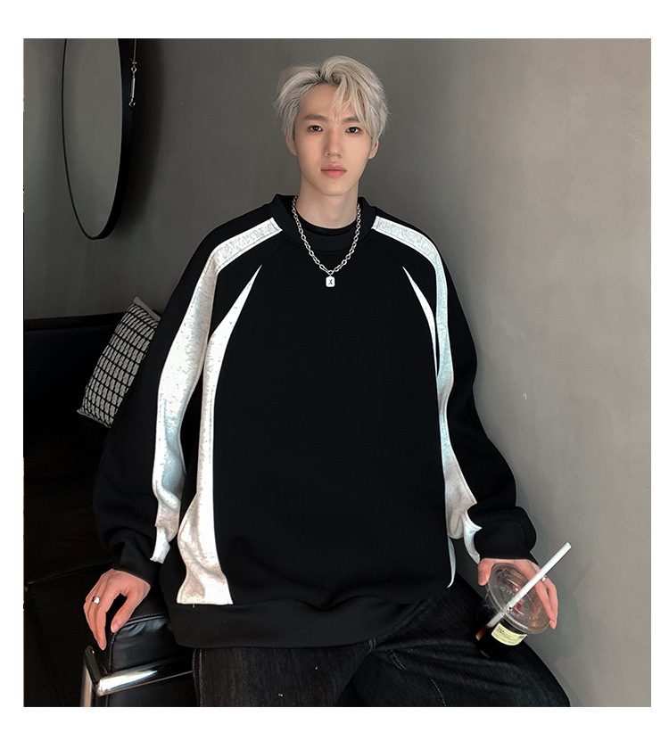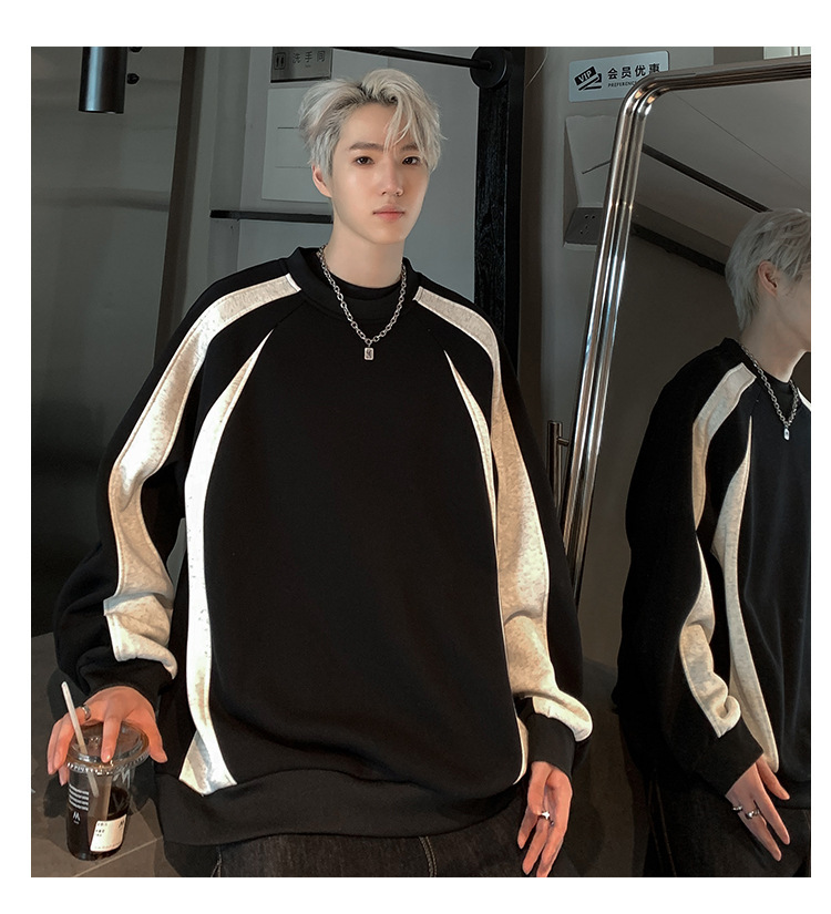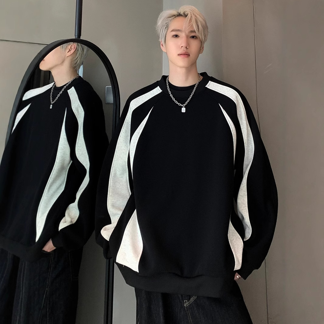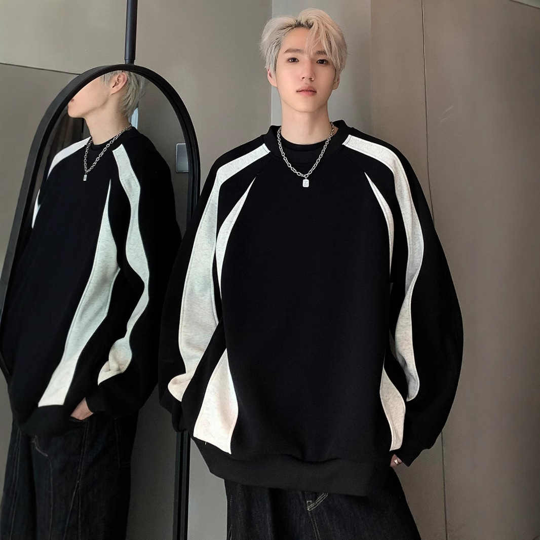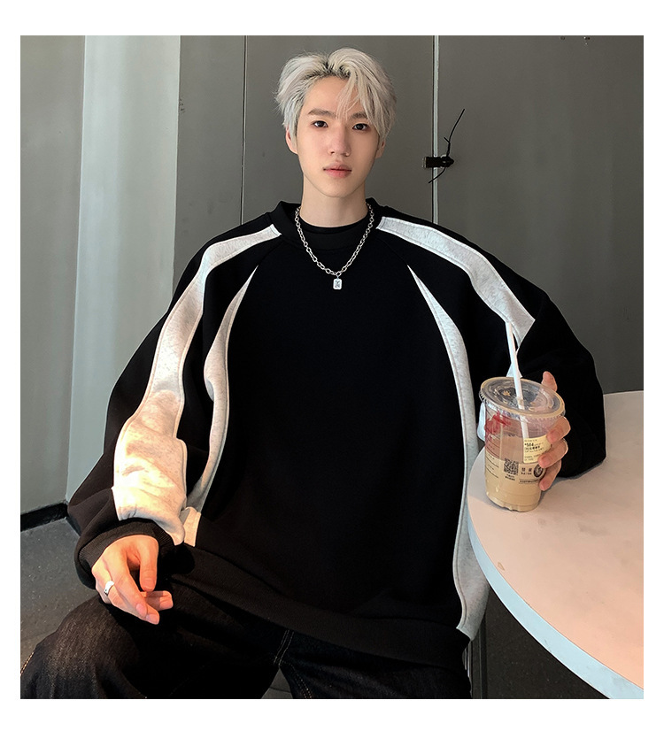 미국 스트라이프 스티칭 스웨터 남성 2024 가을과 겨울 새로운 블록버스터 패션 브랜드 360g 블록버스터 느슨한 캐주얼 코트스토어 가기