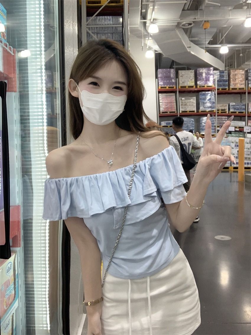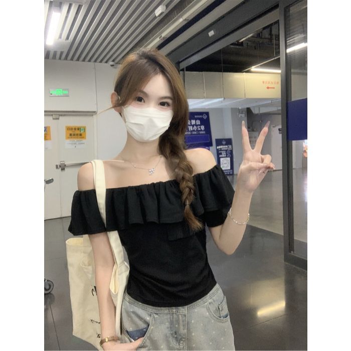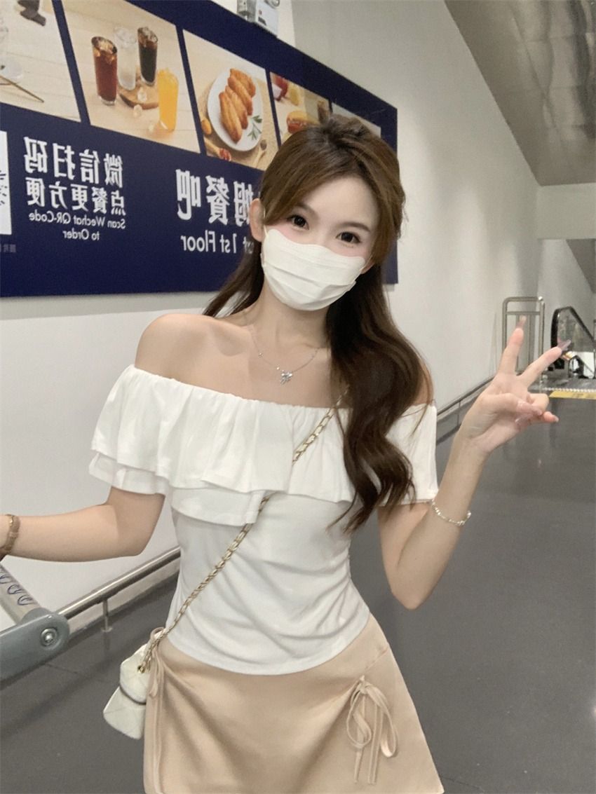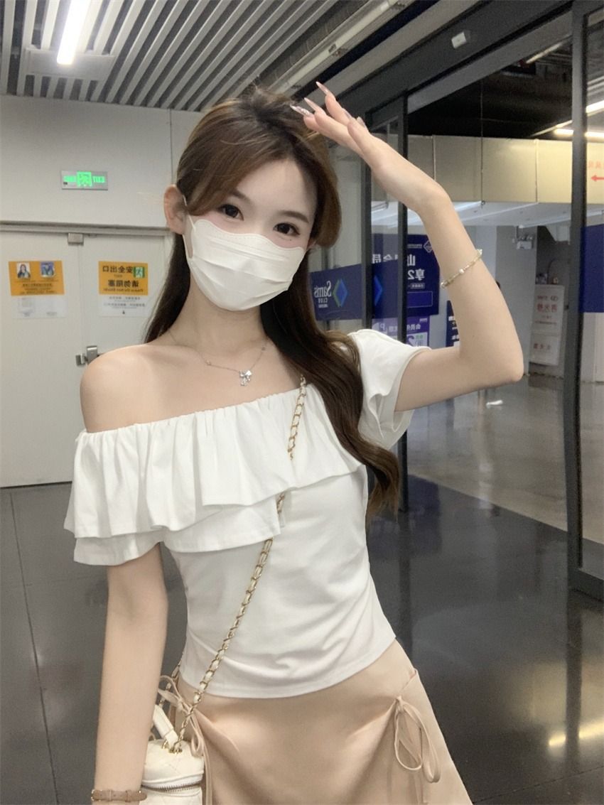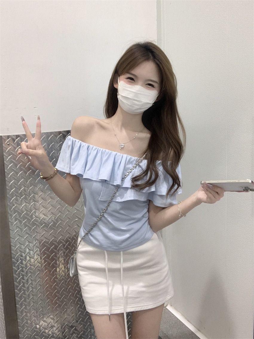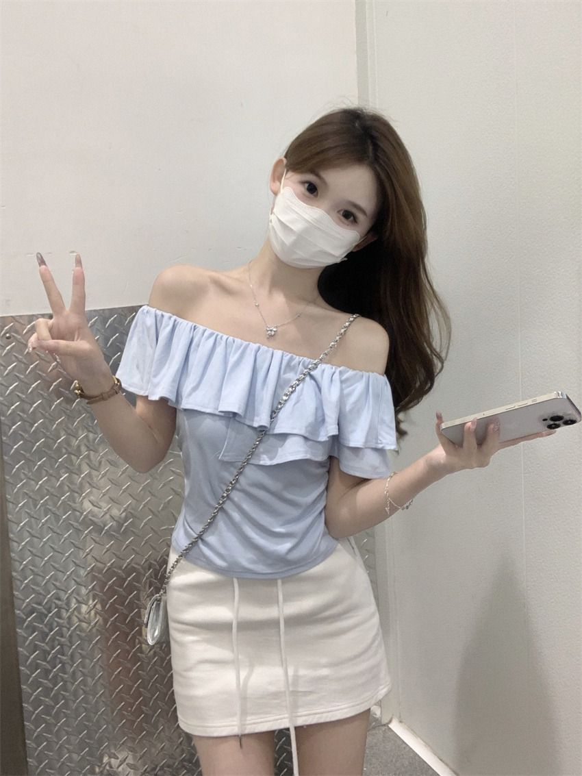 봄과 여름 새로운 한국 스타일 순수한 욕망 반팔 티셔츠 주름진 세련된 슬림 핏 쇼트 탑스토어 가기