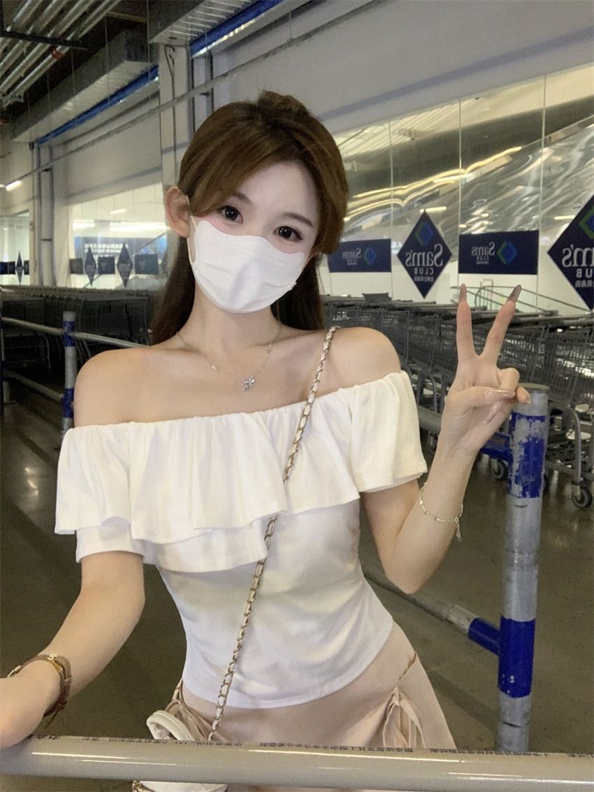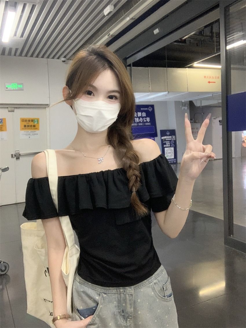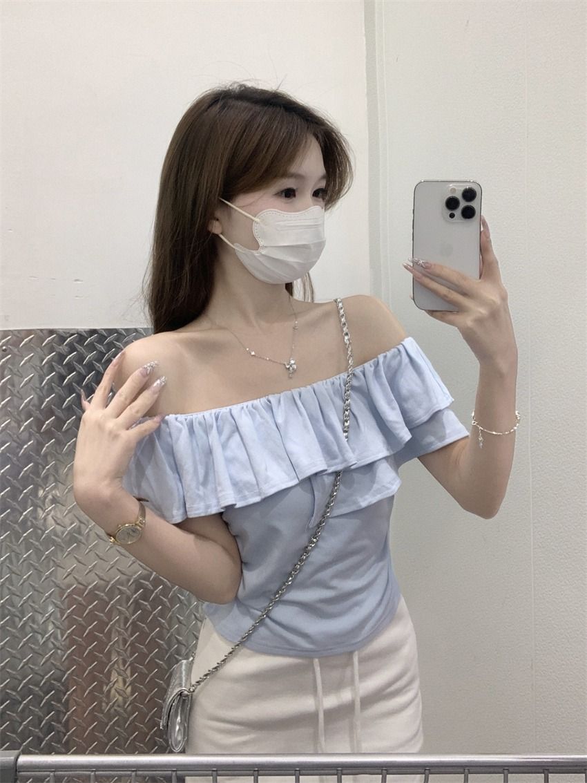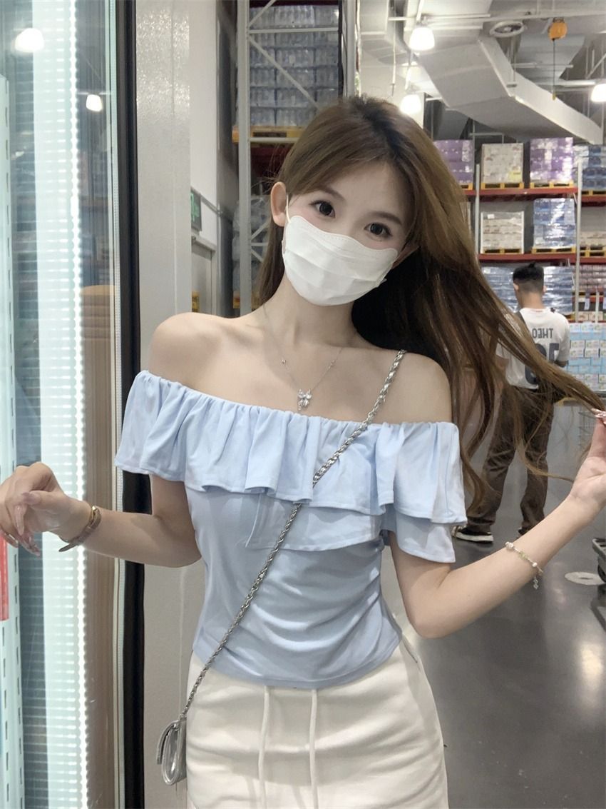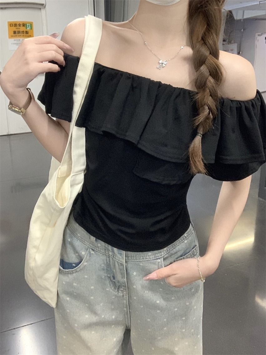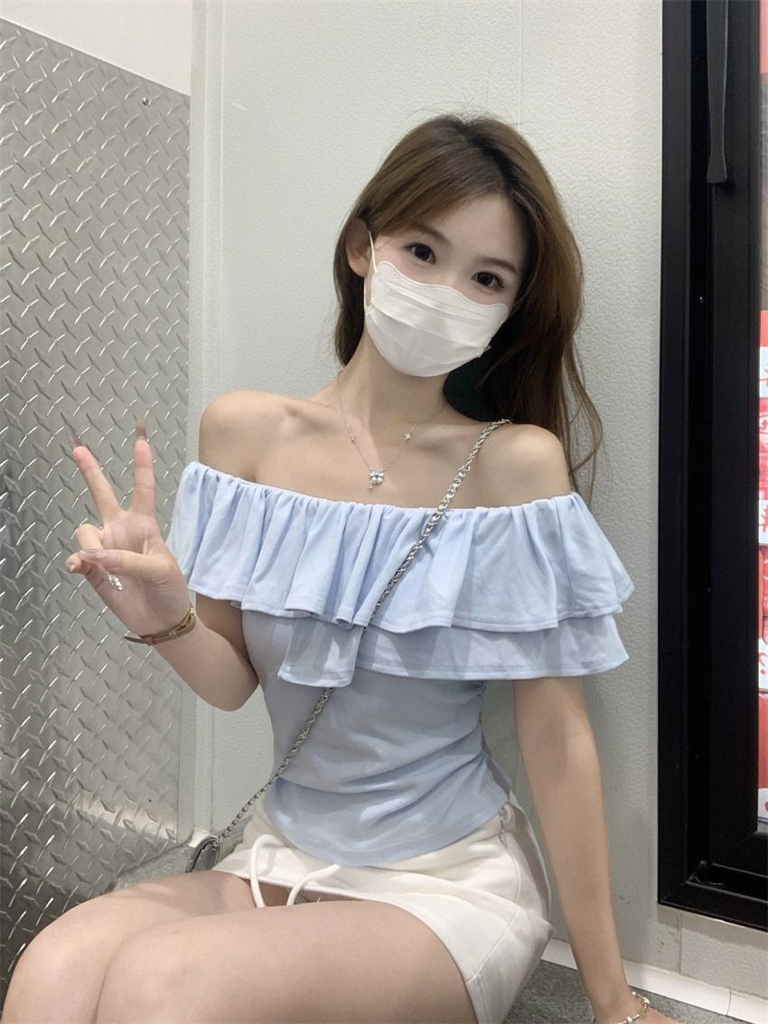 봄과 여름 새로운 한국 스타일 순수한 욕망 반팔 티셔츠 주름진 세련된 슬림 핏 쇼트 탑스토어 가기
