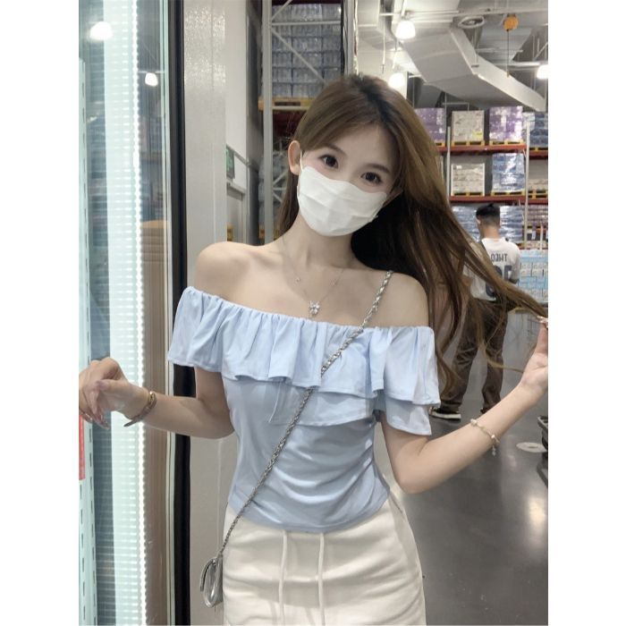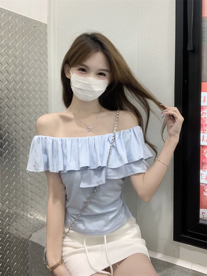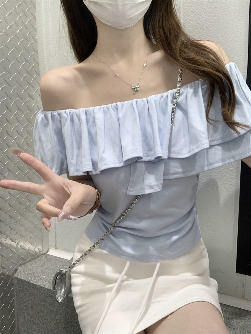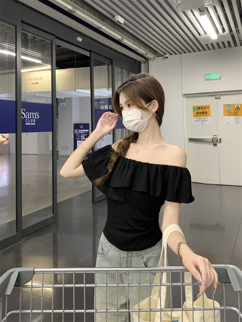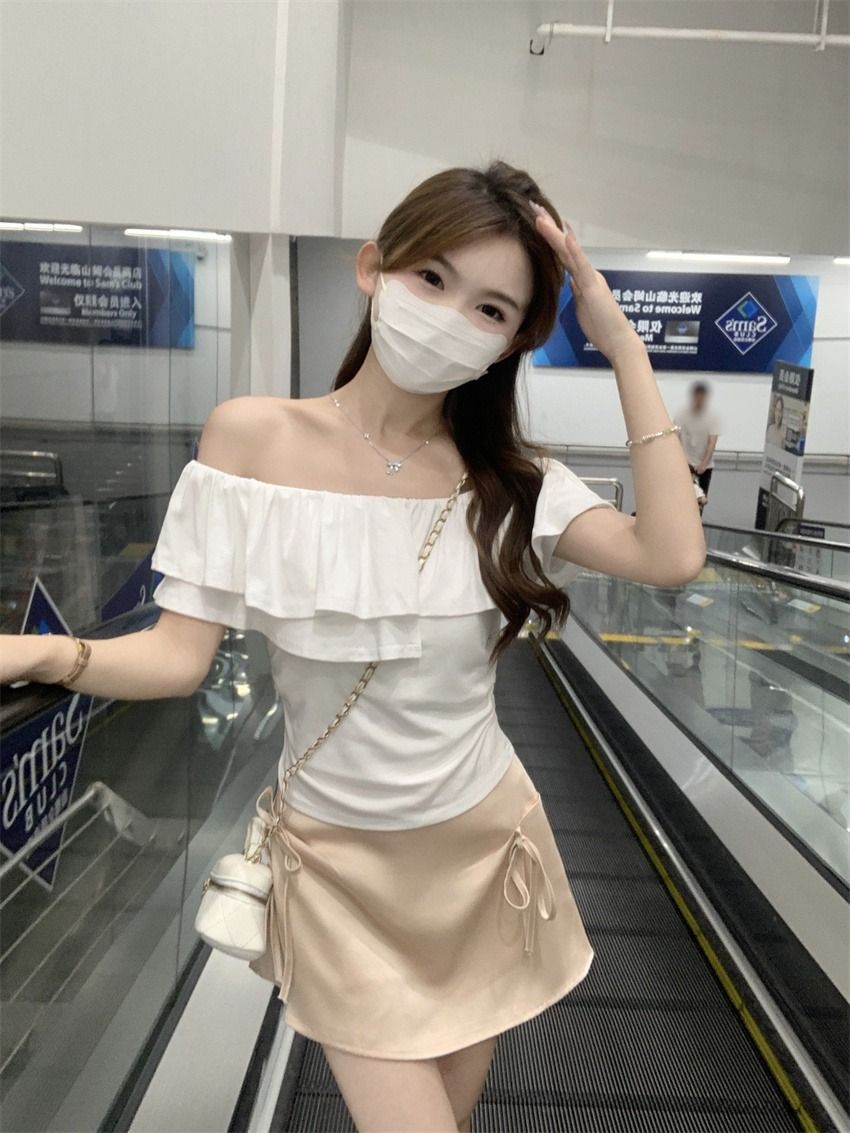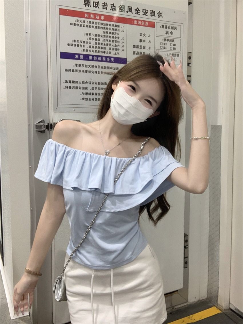 봄과 여름 새로운 한국 스타일 순수한 욕망 반팔 티셔츠 주름진 세련된 슬림 핏 쇼트 탑스토어 가기