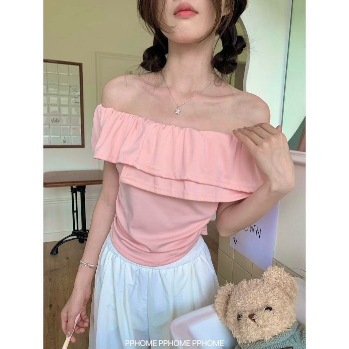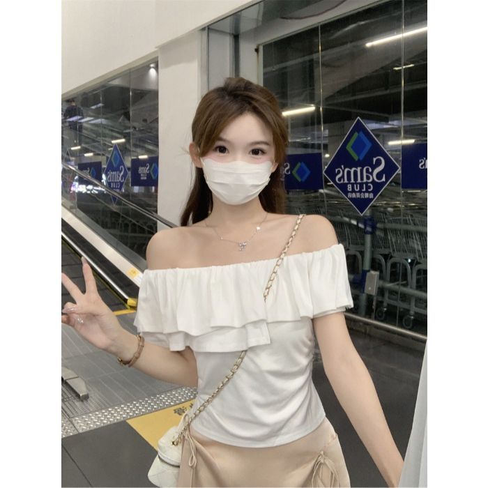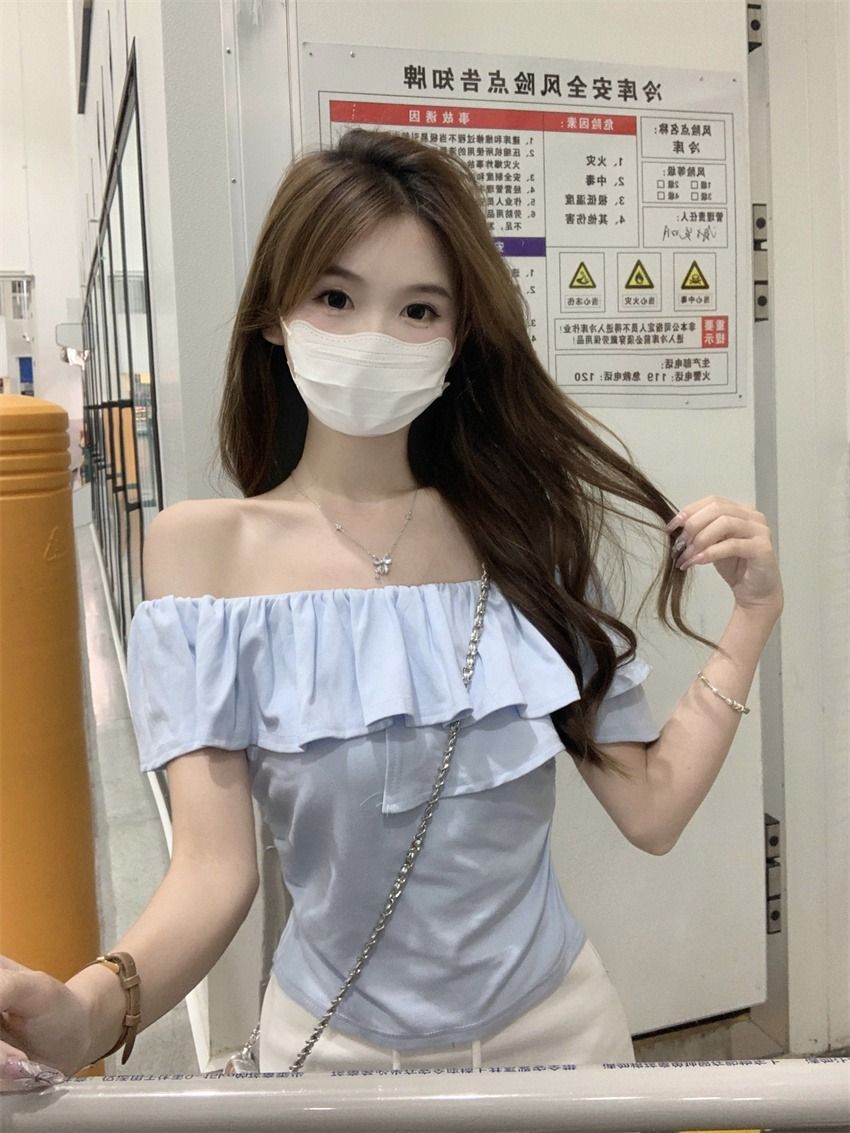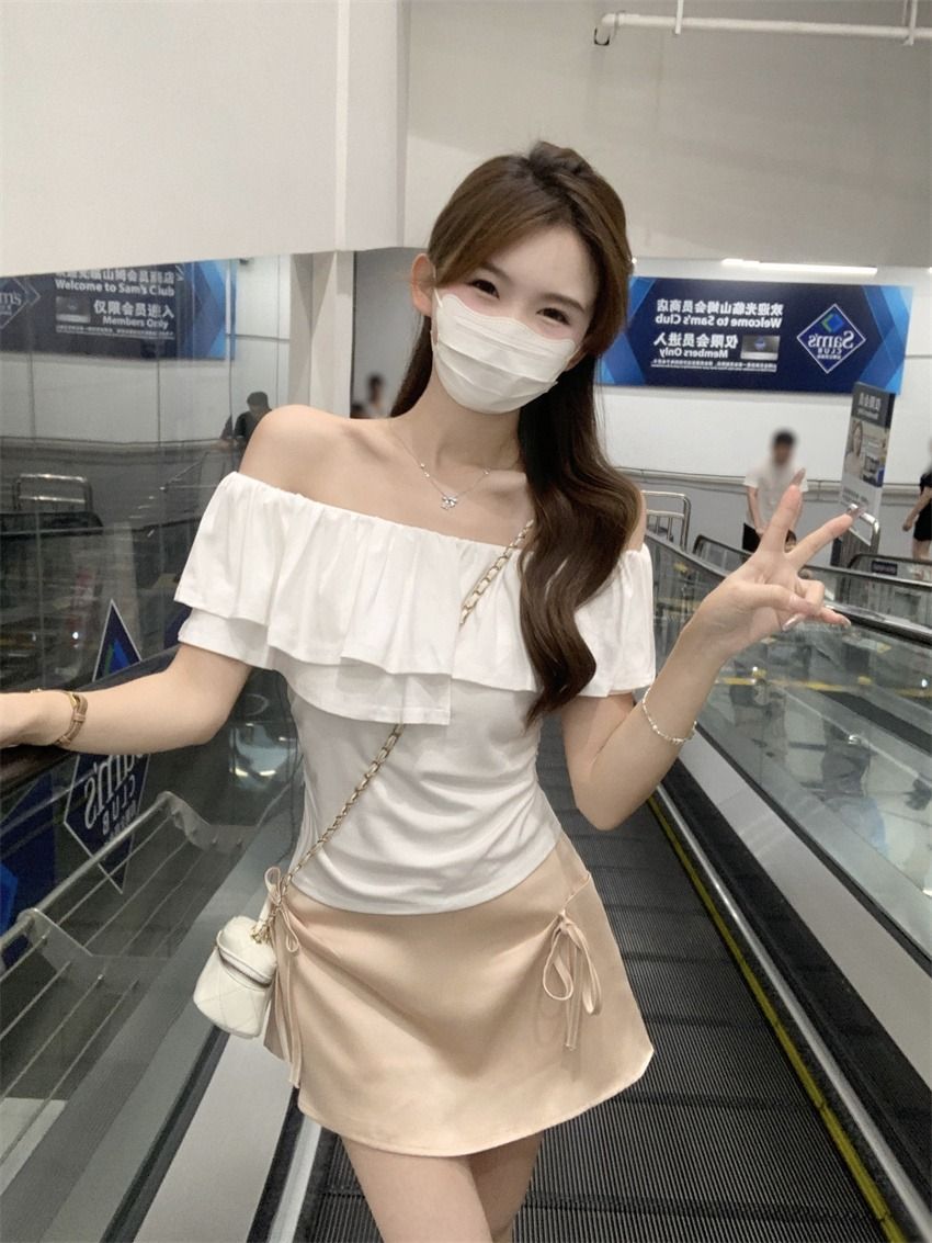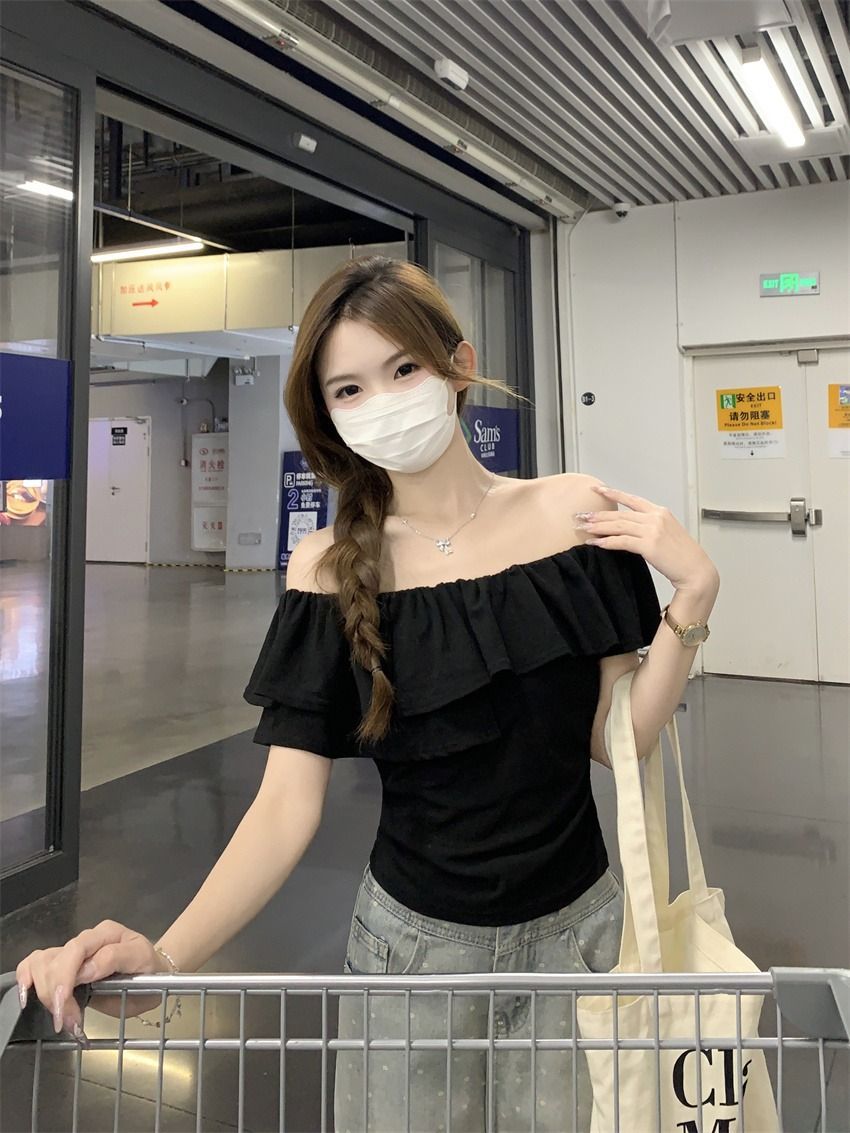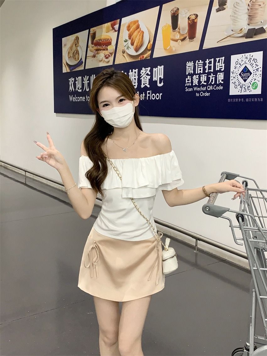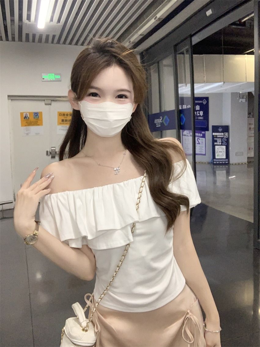 봄과 여름 새로운 한국 스타일 순수한 욕망 반팔 티셔츠 주름진 세련된 슬림 핏 쇼트 탑스토어 가기