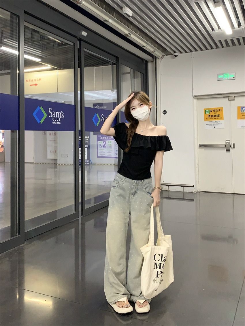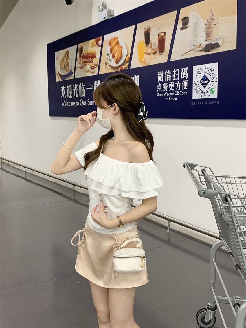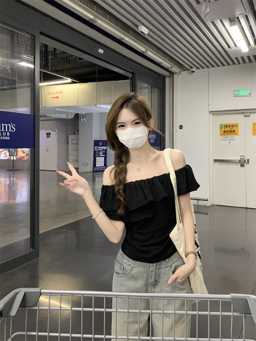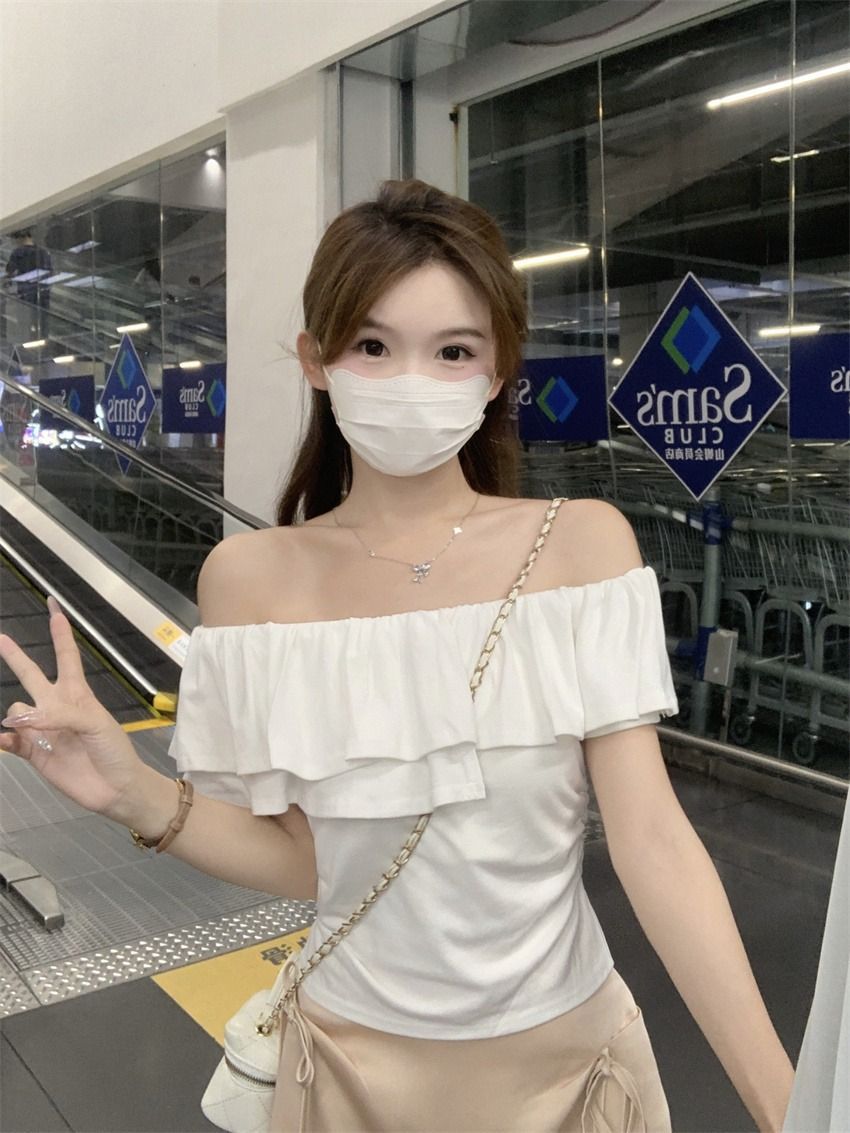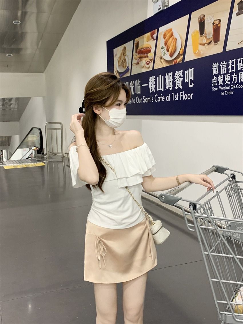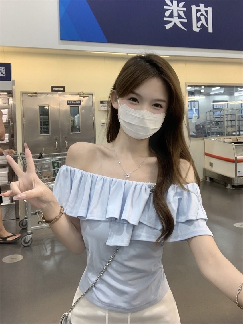 봄과 여름 새로운 한국 스타일 순수한 욕망 반팔 티셔츠 주름진 세련된 슬림 핏 쇼트 탑스토어 가기