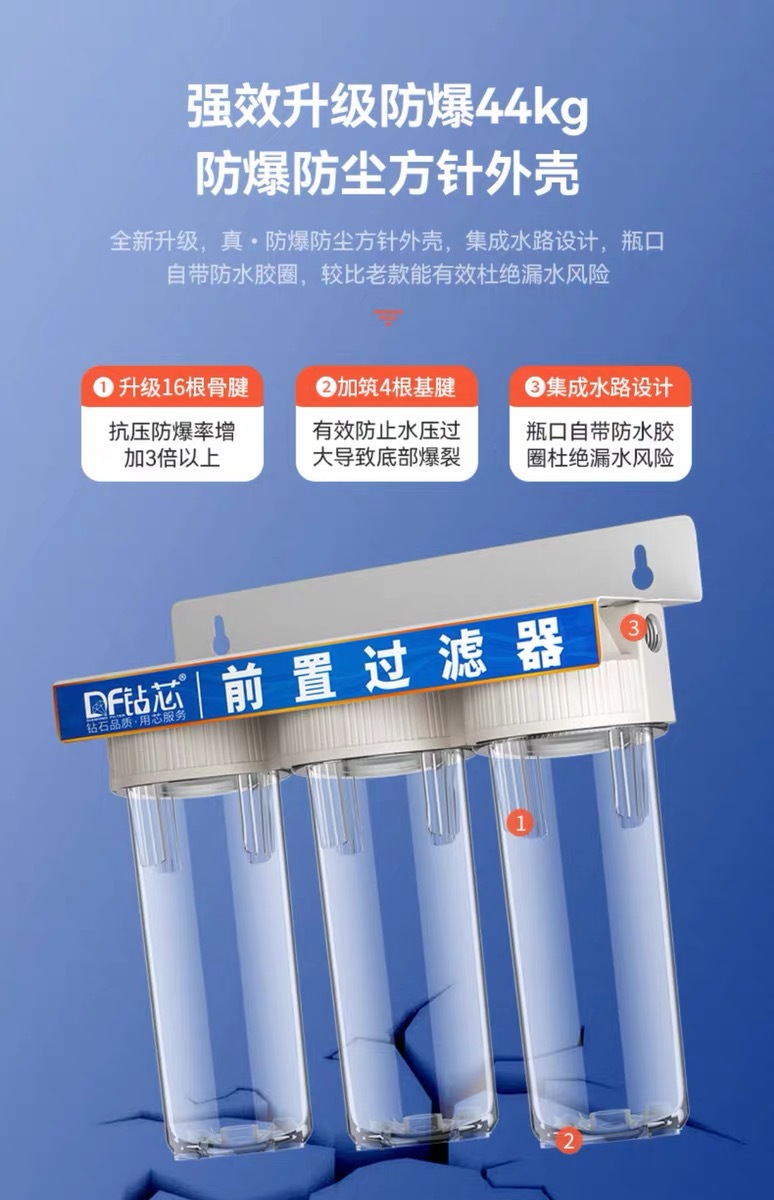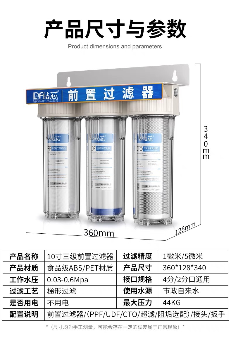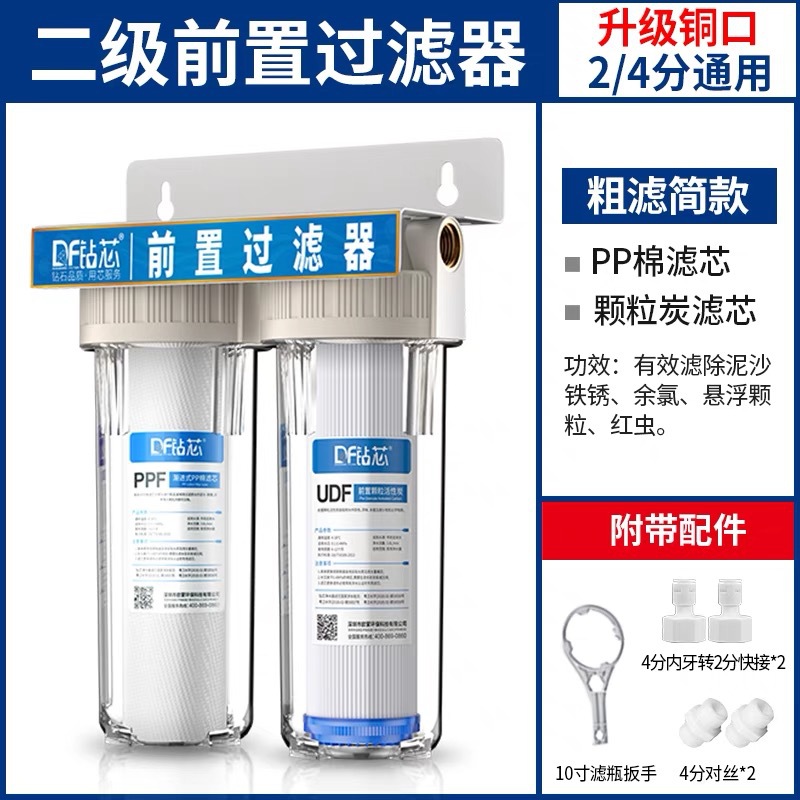 사전 필터 정수기 폭발 방지 투명 필터 병 10 인치 2 차 구리 주방 수돗물 정화