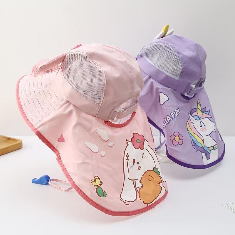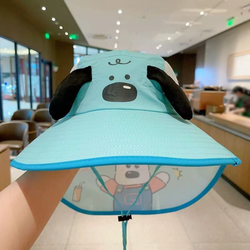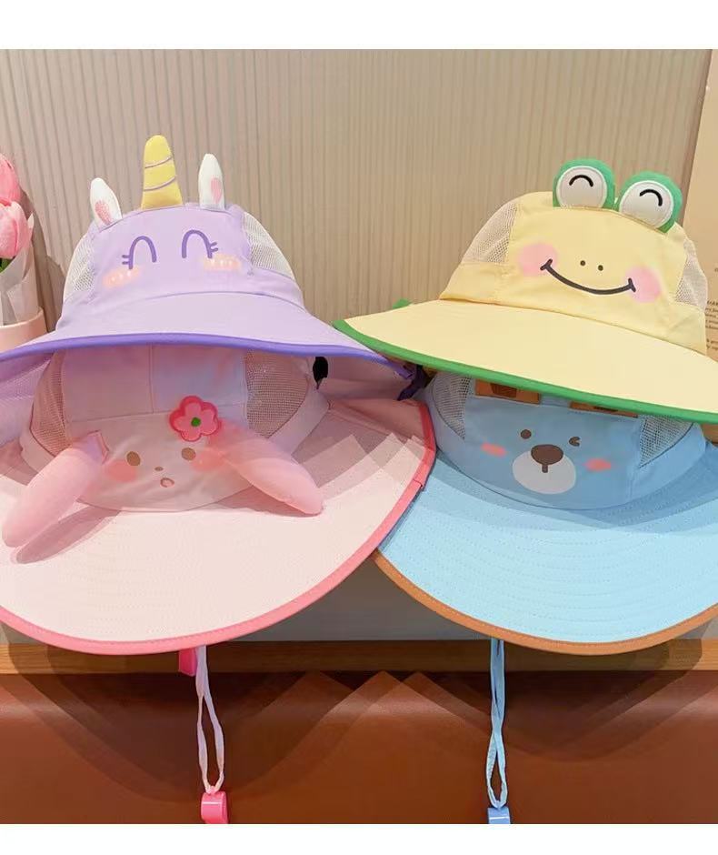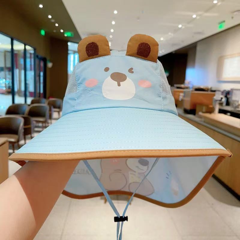 어린이 여름 만화 태양 보호 모자 아기 큰 챙 귀여운 빈 모자 소녀와 소년 야외 목도리 태양 모자스토어 가기