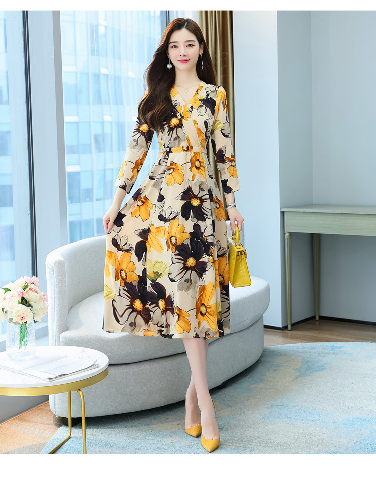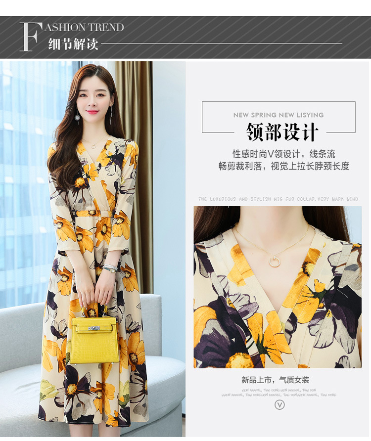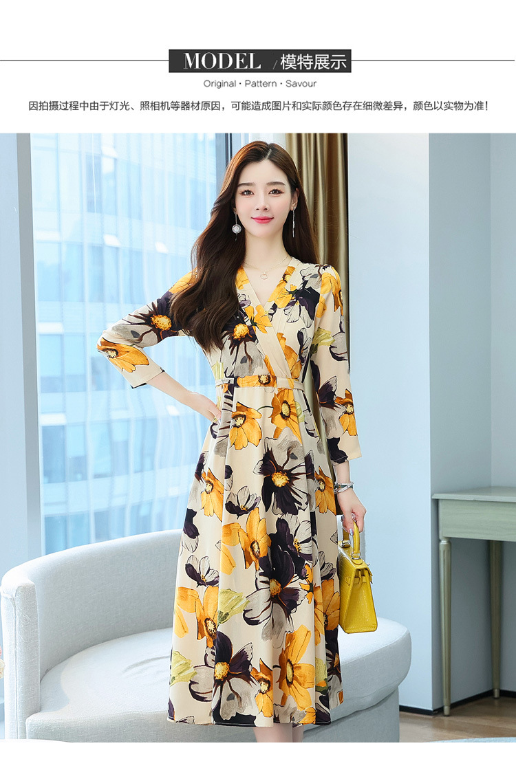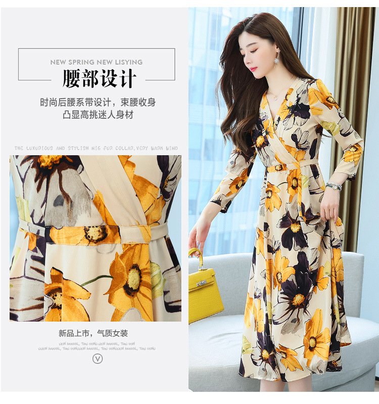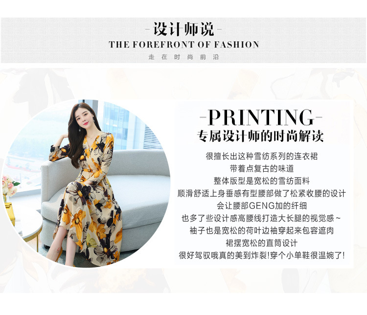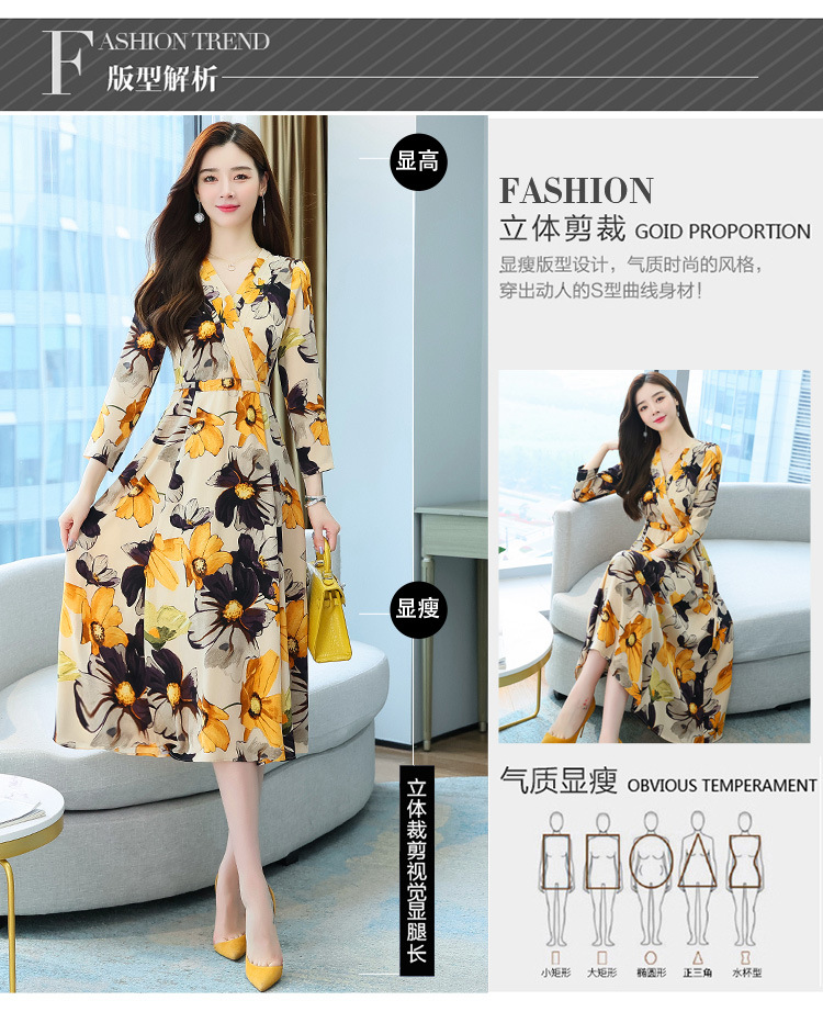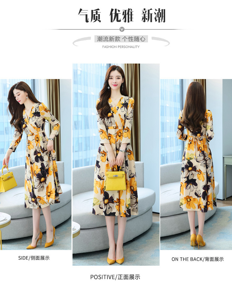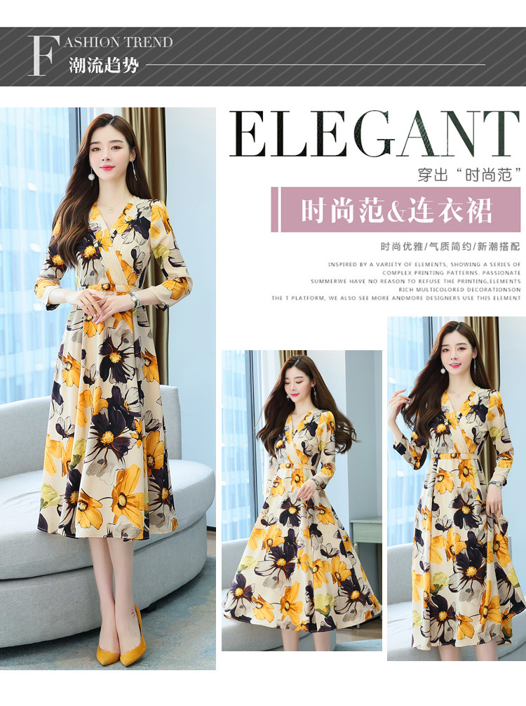 긴 무릎 긴팔 쉬폰 원피스 이른 봄 새 여성복 슬리밍 우아한 가을 롱 스커트