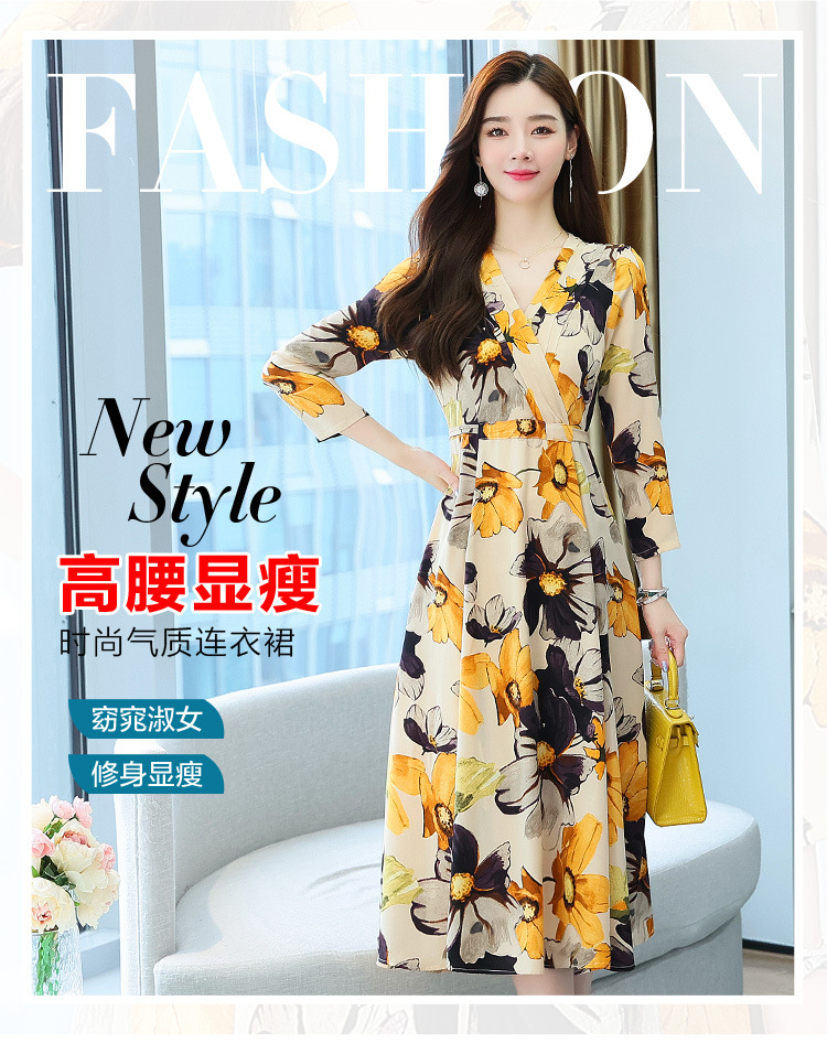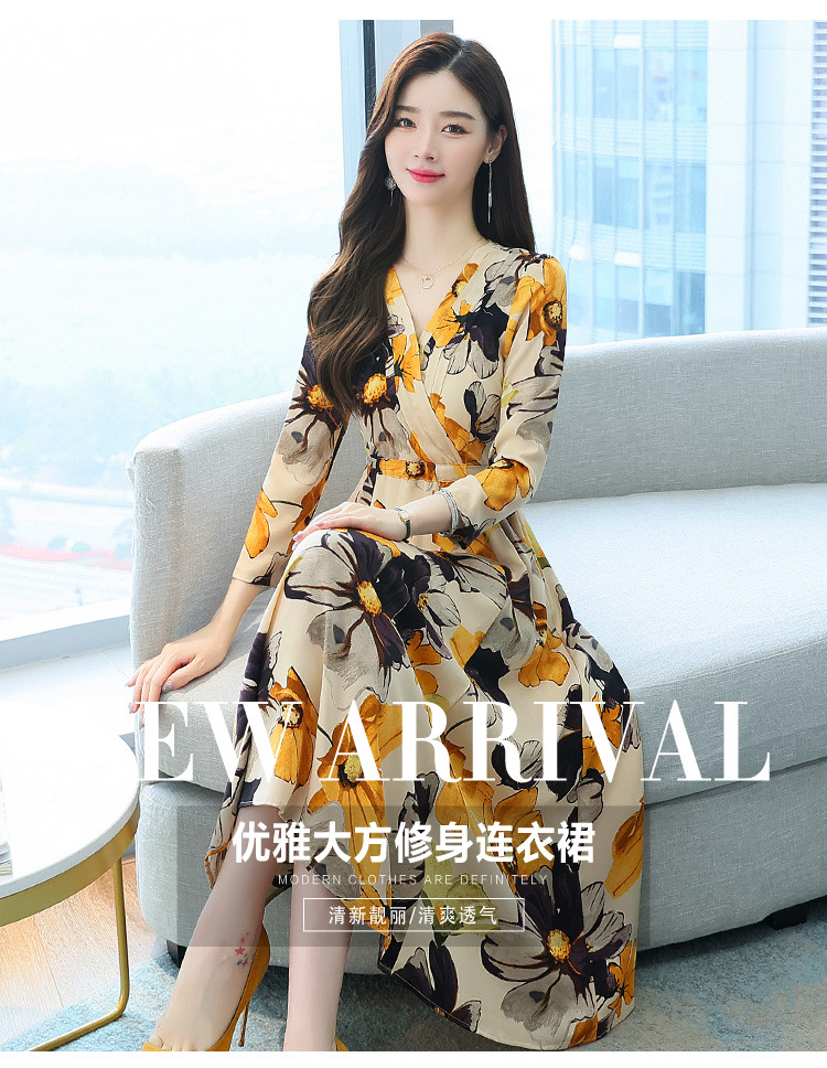 긴 무릎 긴팔 쉬폰 원피스 이른 봄 새 여성복 슬리밍 우아한 가을 롱 스커트스토어 가기