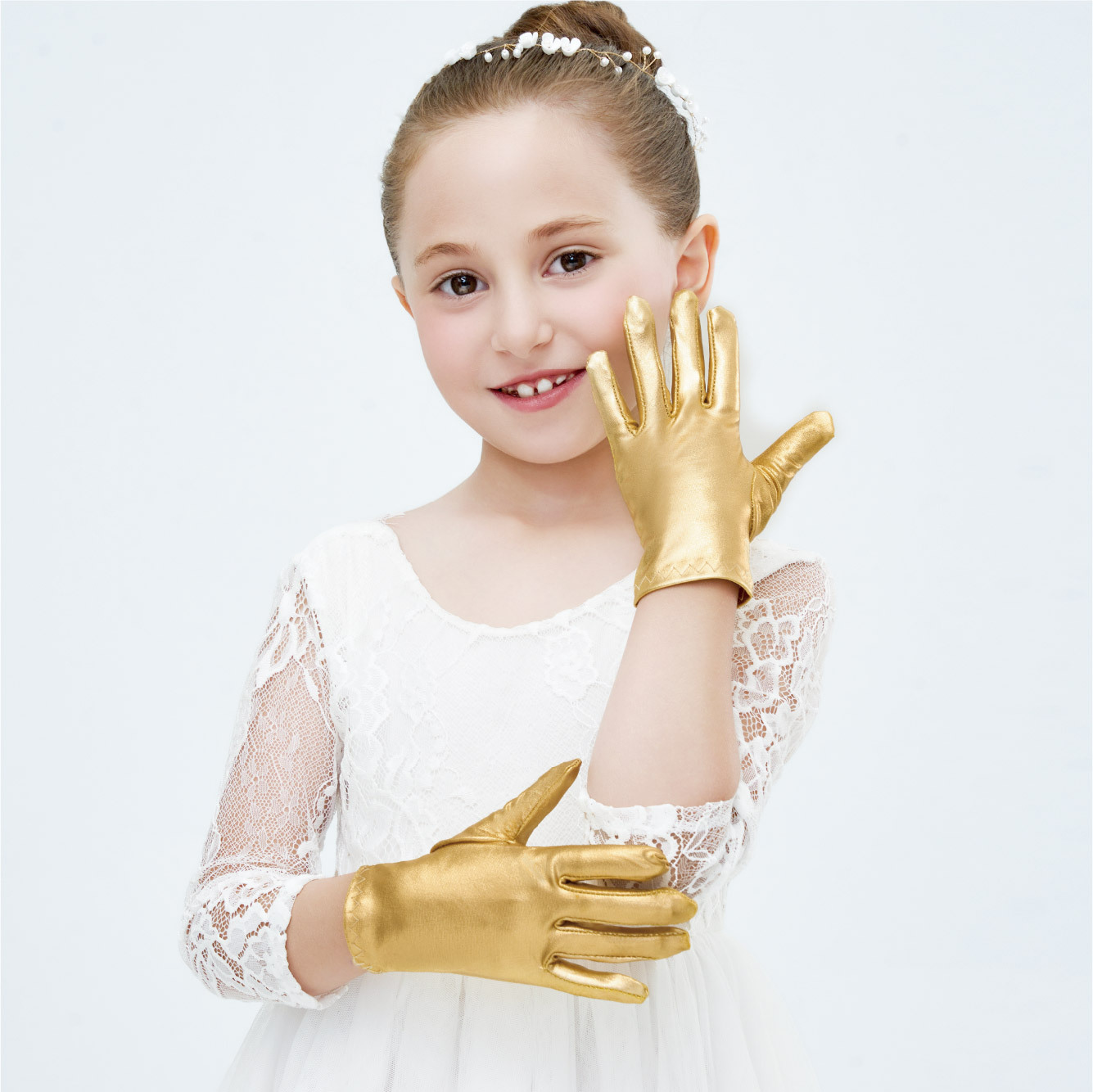 • 어린이용 페이턴트 가죽 퍼포먼스 장갑 골드