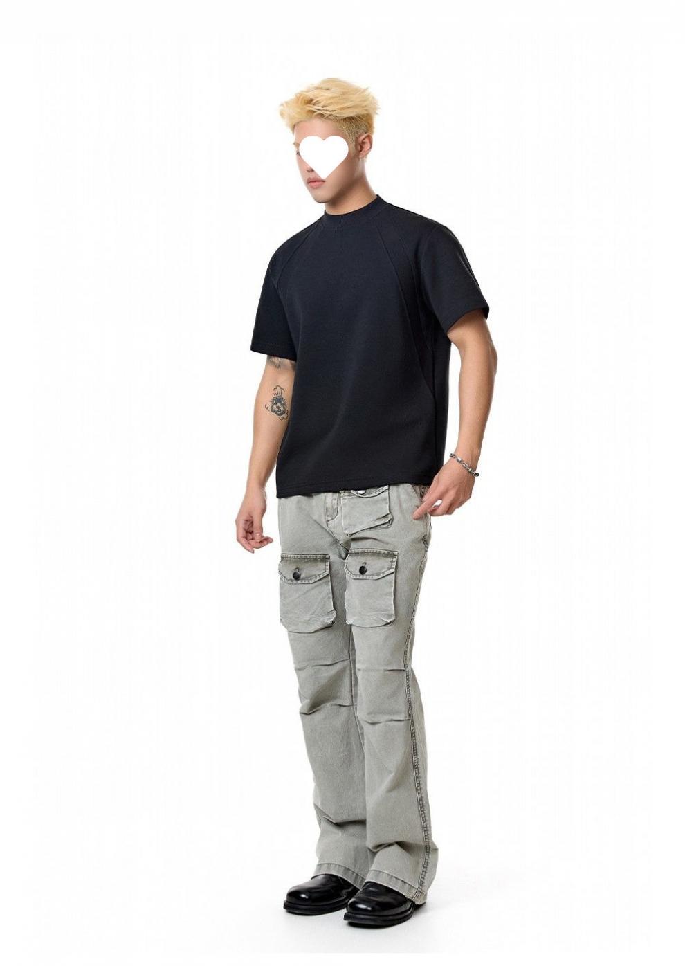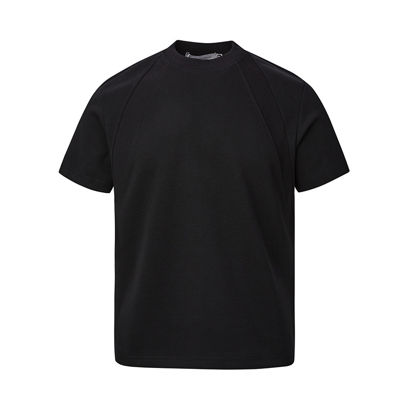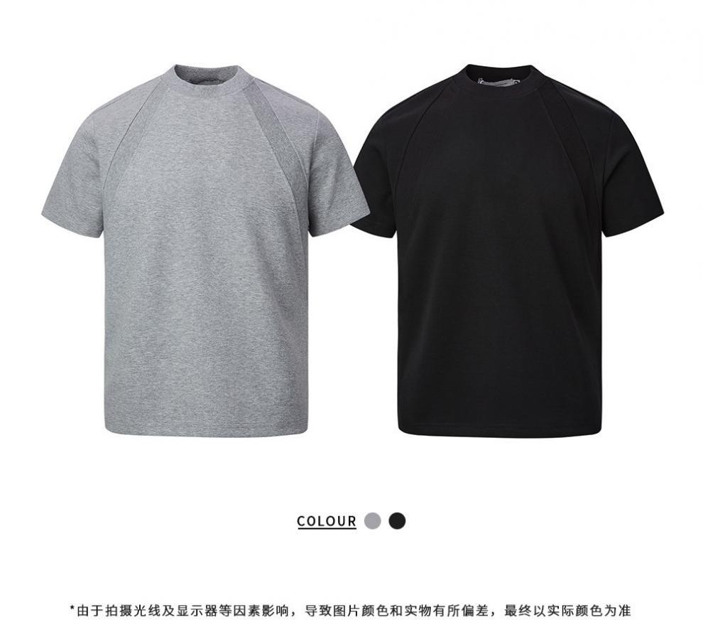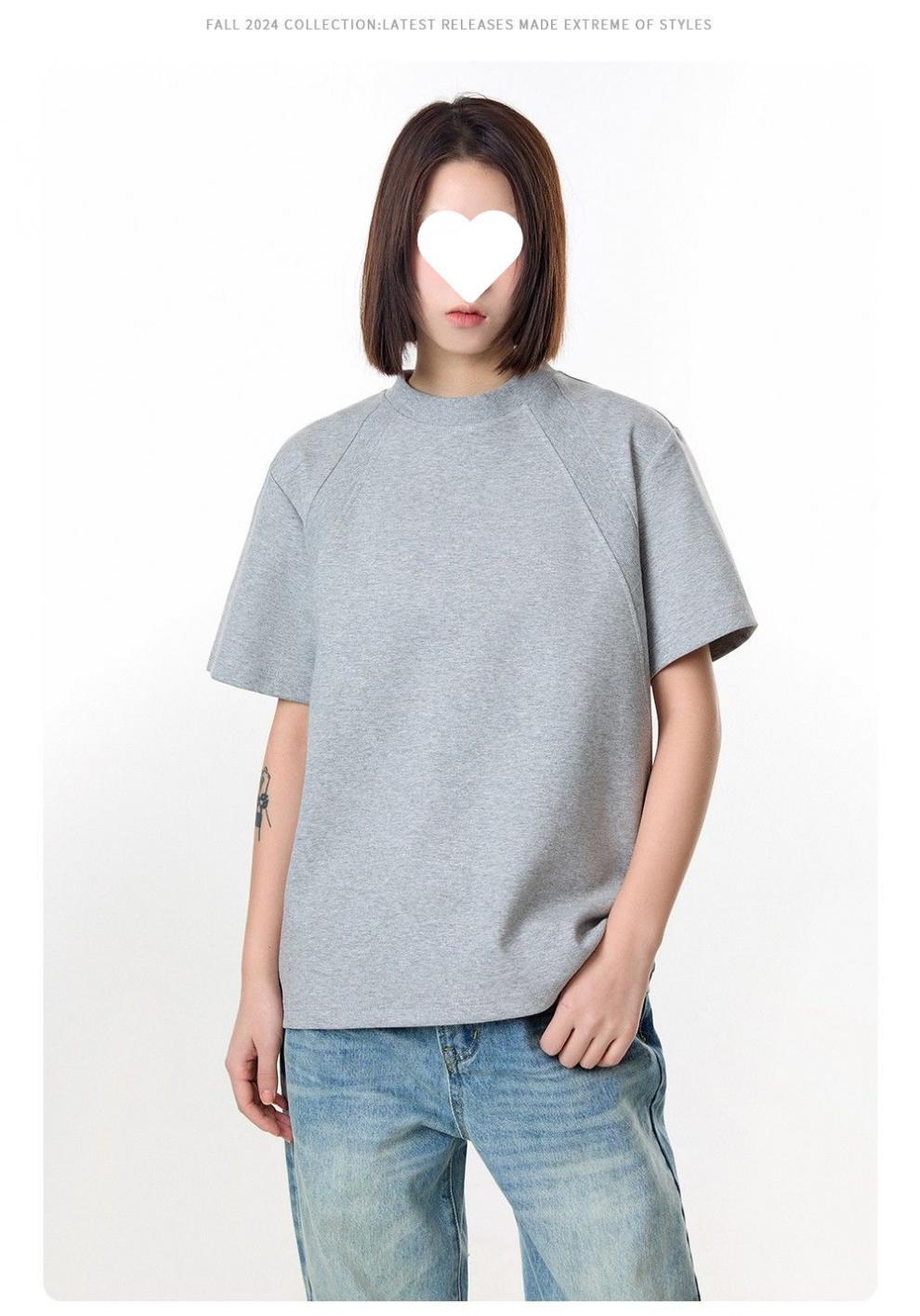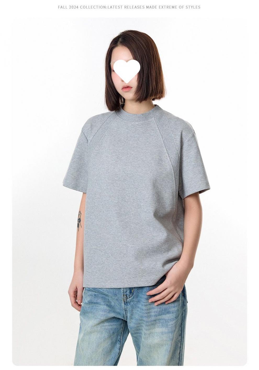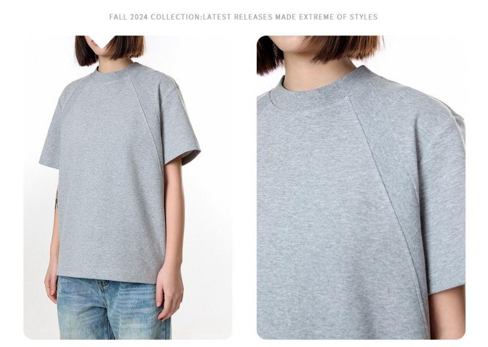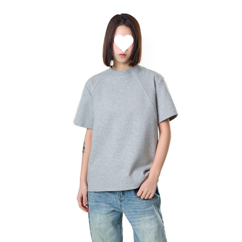 아메리칸 스타일 레트로 스티칭 숄더 티셔츠 남성과 여성의 여름 헤비 클렌핏 짧은 소매 작은 칼라 솔리드 컬러 하프 슬리브