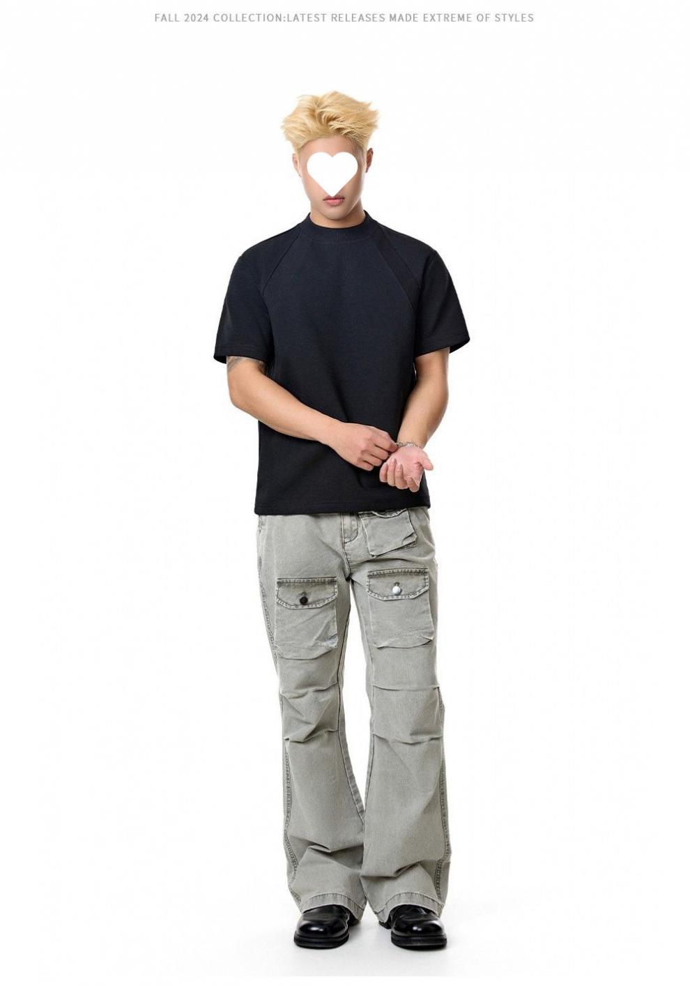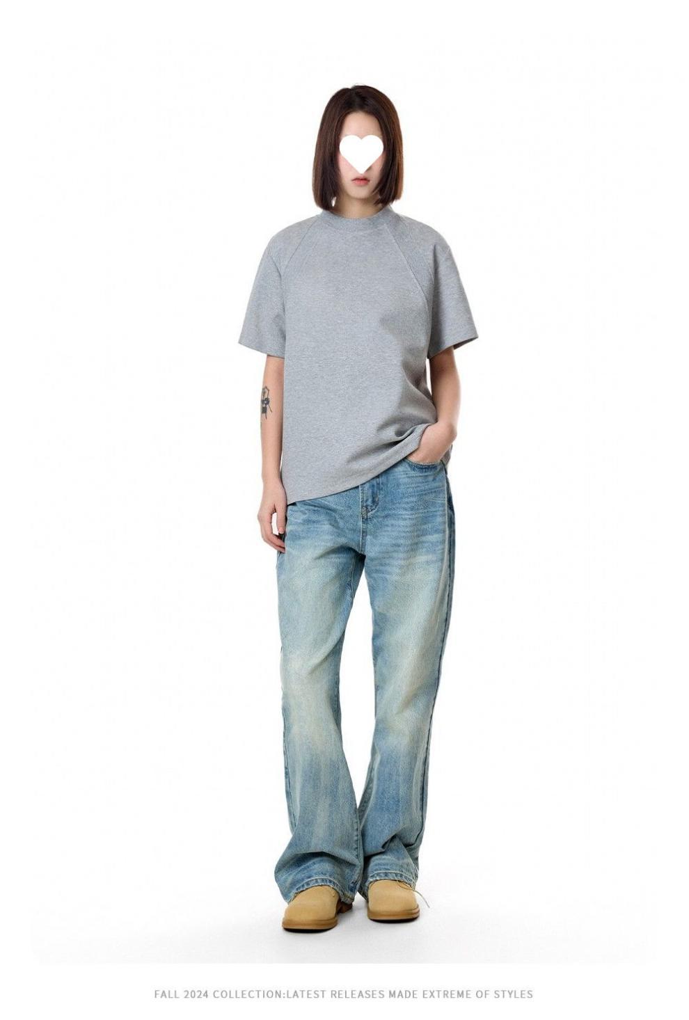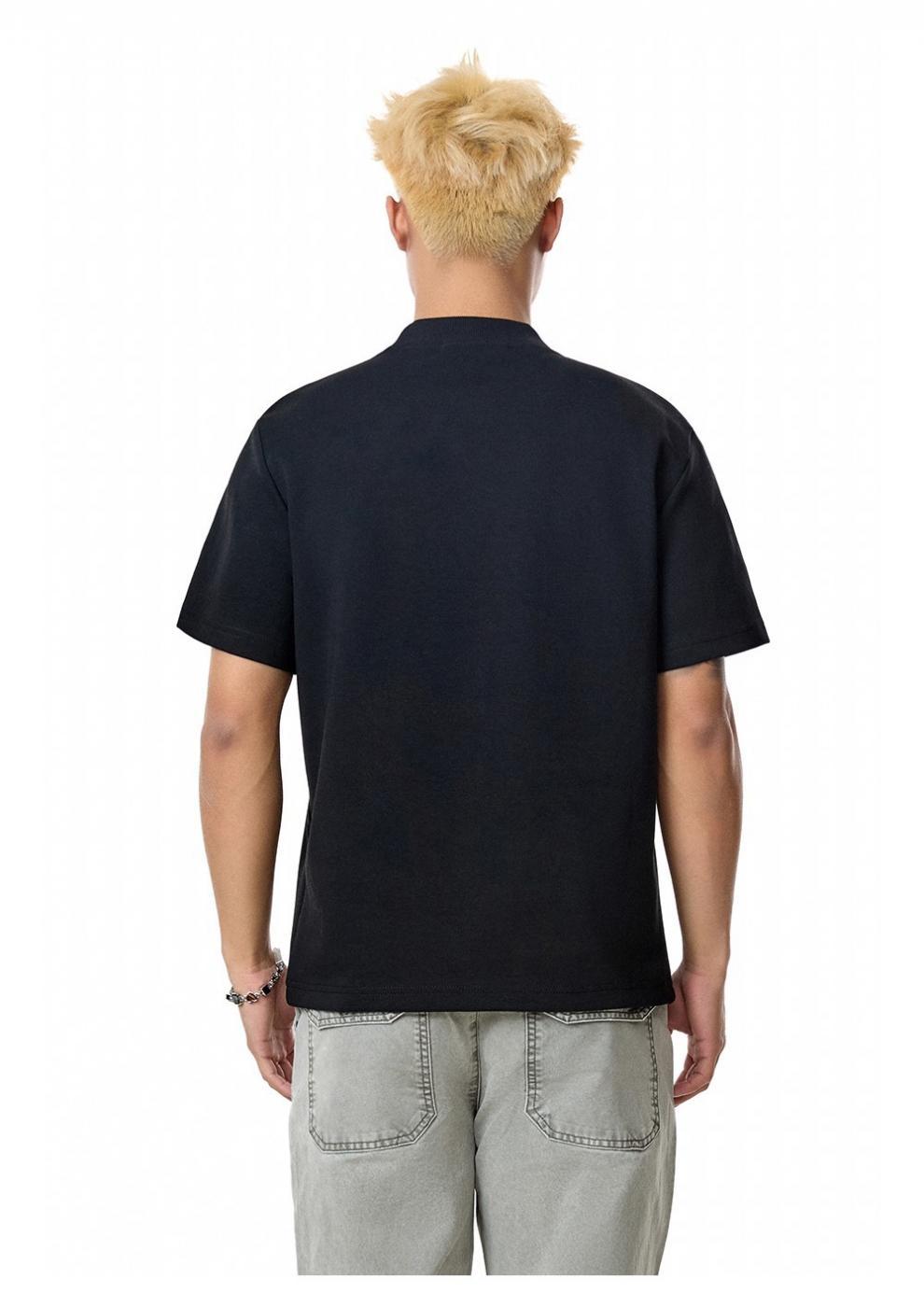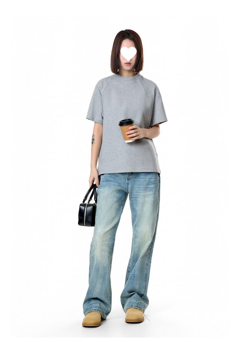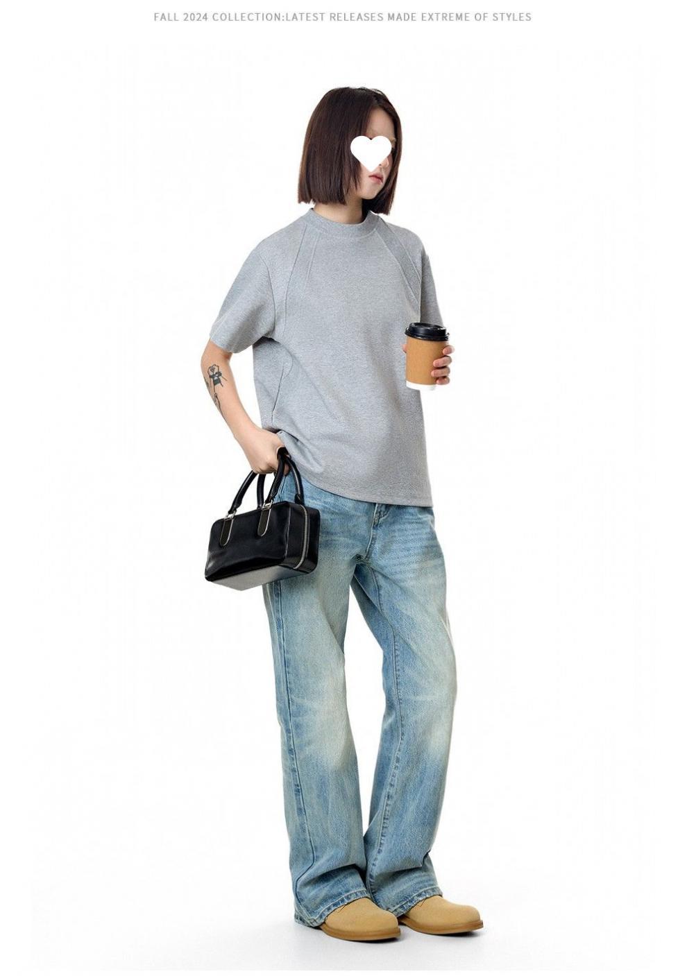 아메리칸 스타일 레트로 스티칭 숄더 티셔츠 남성과 여성의 여름 헤비 클렌핏 짧은 소매 작은 칼라 솔리드 컬러 하프 슬리브