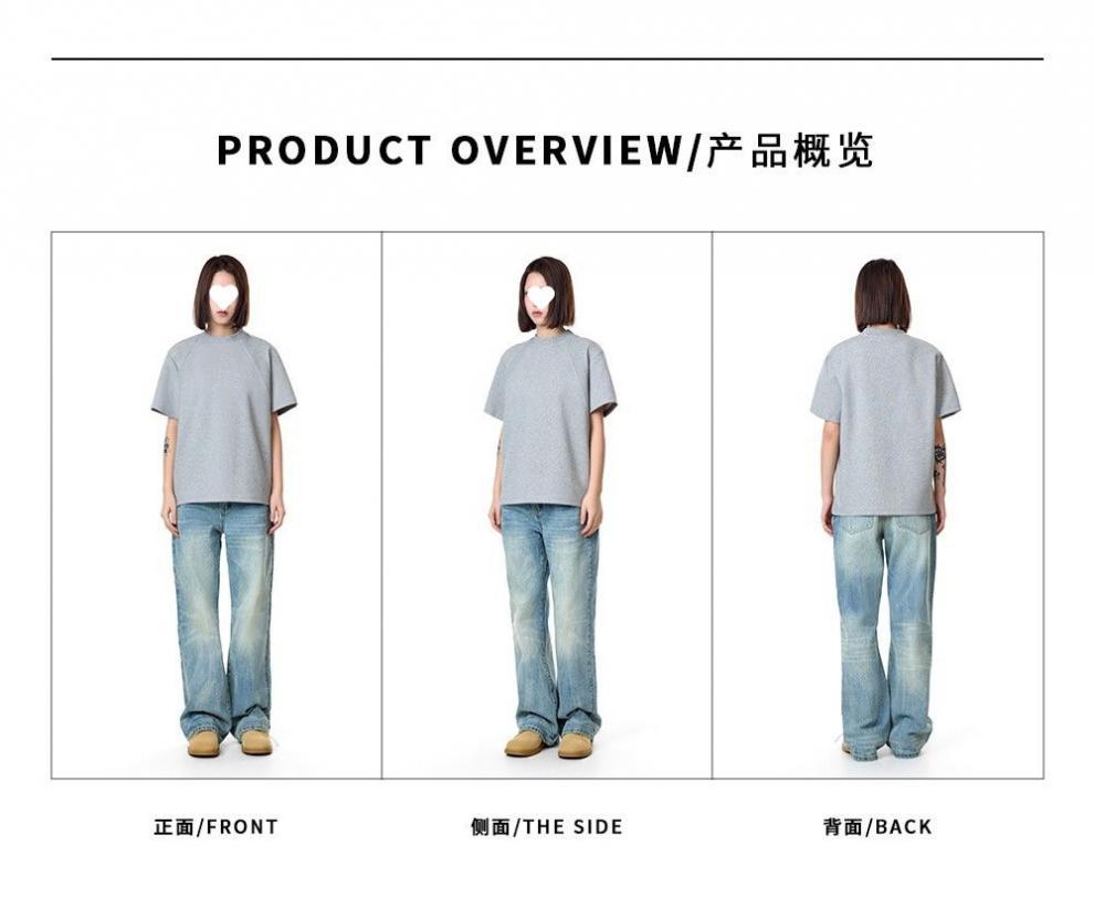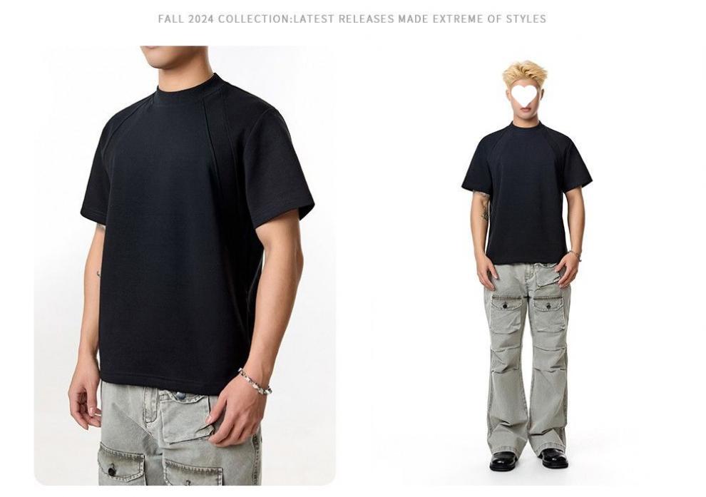 아메리칸 스타일 레트로 스티칭 숄더 티셔츠 남성과 여성의 여름 헤비 클렌핏 짧은 소매 작은 칼라 솔리드 컬러 하프 슬리브스토어 가기