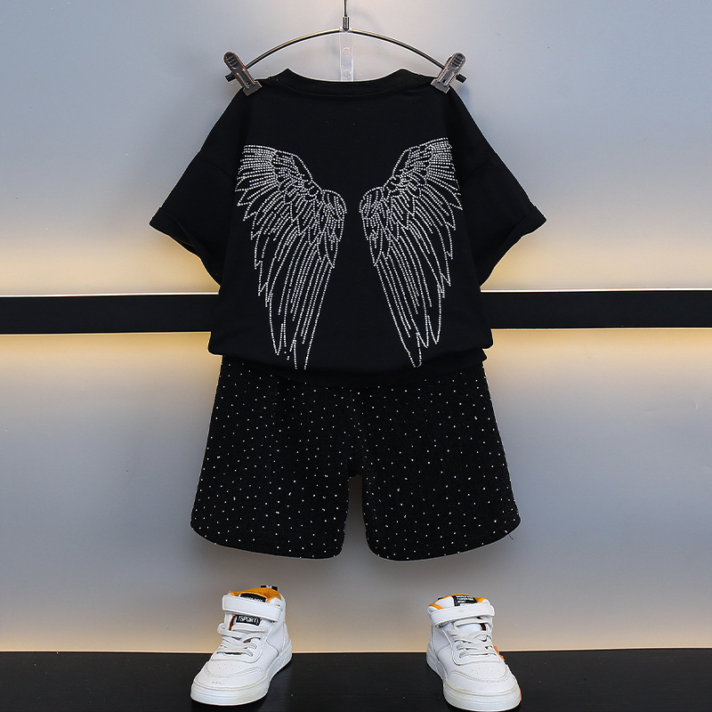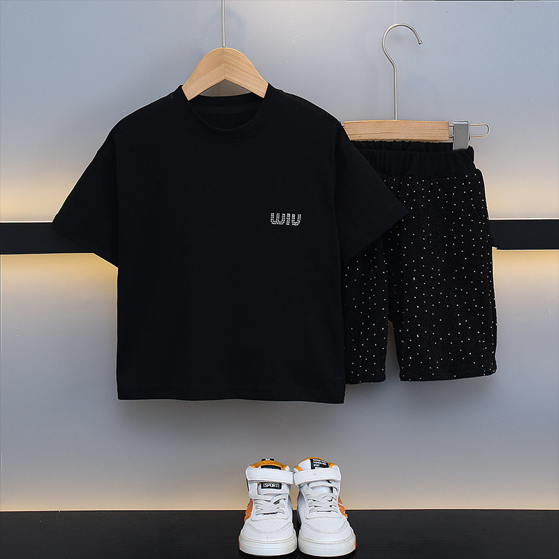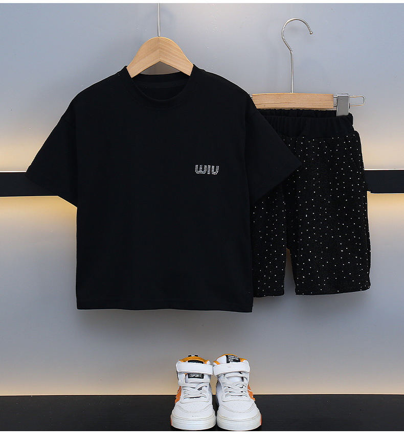 남자들의 여름 원피스 플래시 다이아몬드 세트 반팔 2025 새로운 어린이 여름 조끼 아기 밝은 다이아몬드 한국 스타일스토어 가기