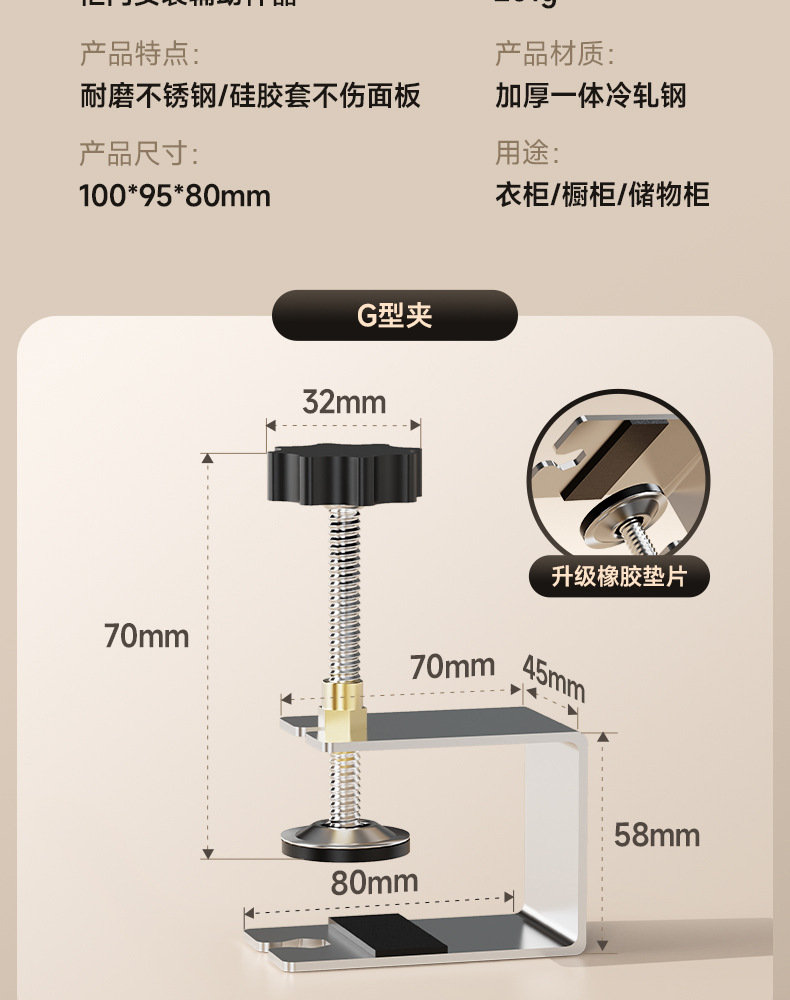 새로운 서랍 패널 장착 클립 G 형 클립 빠른 고정 클립 스테인레스 스틸 클램프 보조 설치 유물