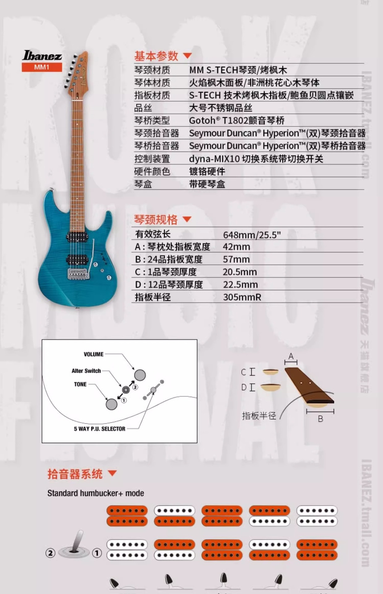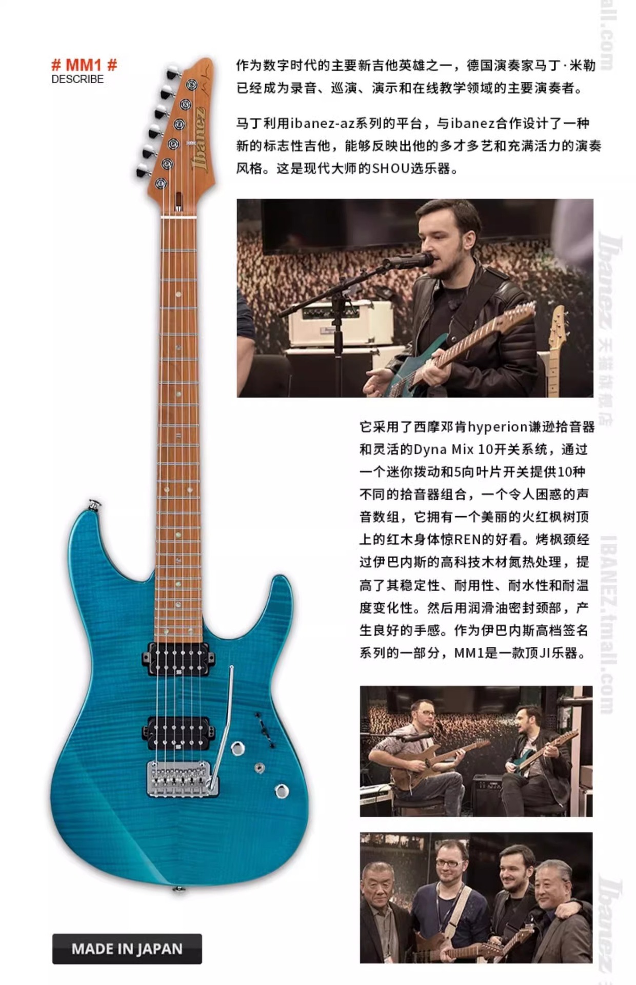 Ibanez Ebbins MM1-TAB 시그니처 일렉트릭 기타 블루 마틴 밀러 서명스토어 가기
