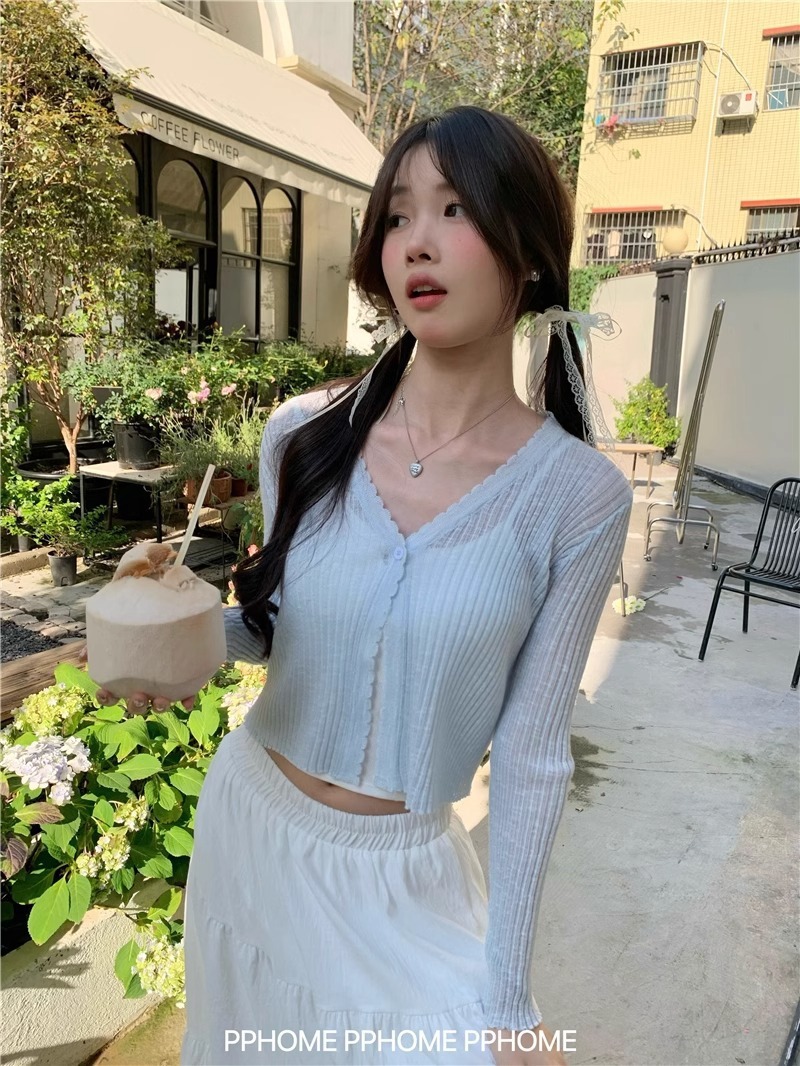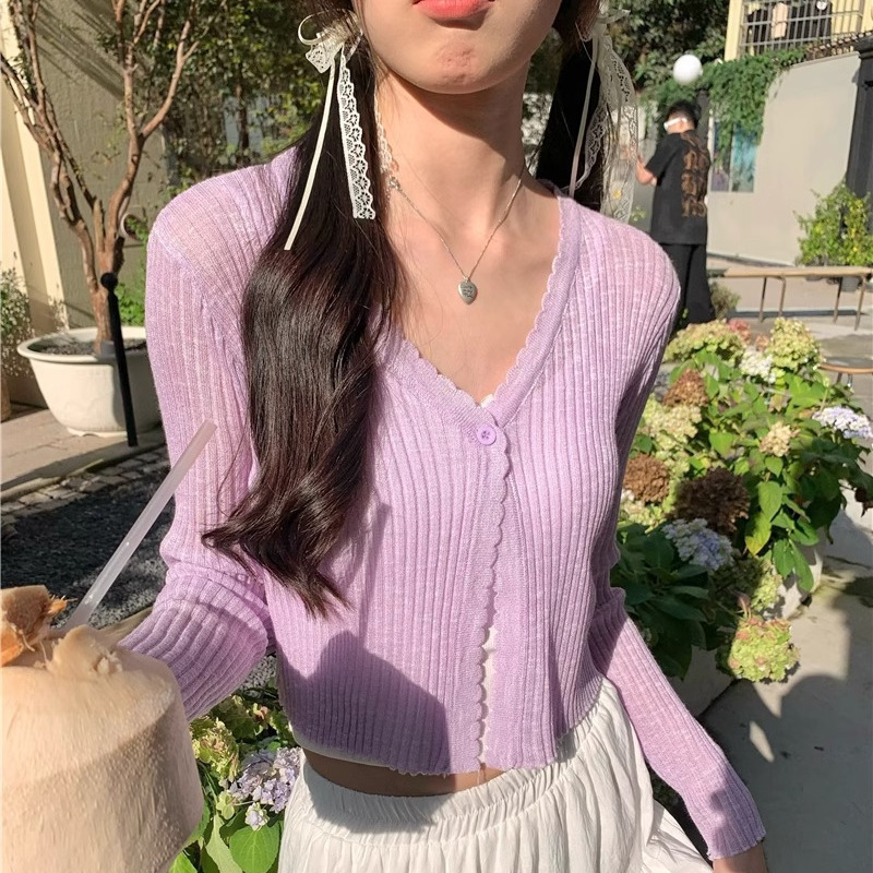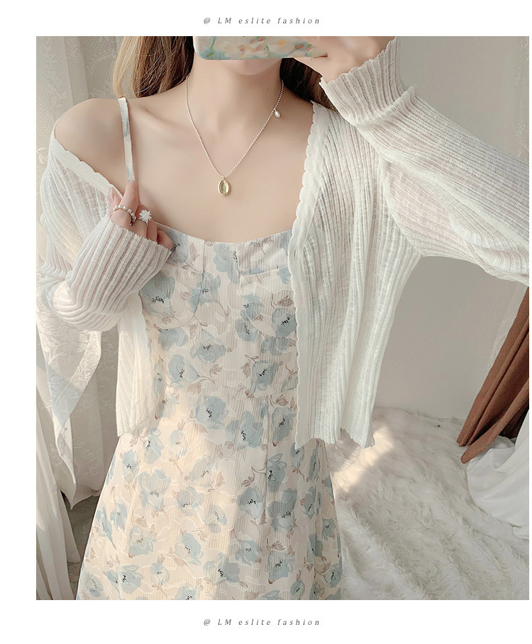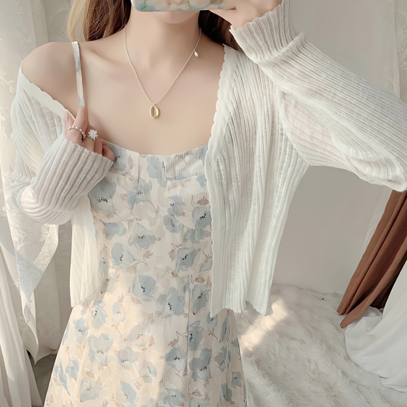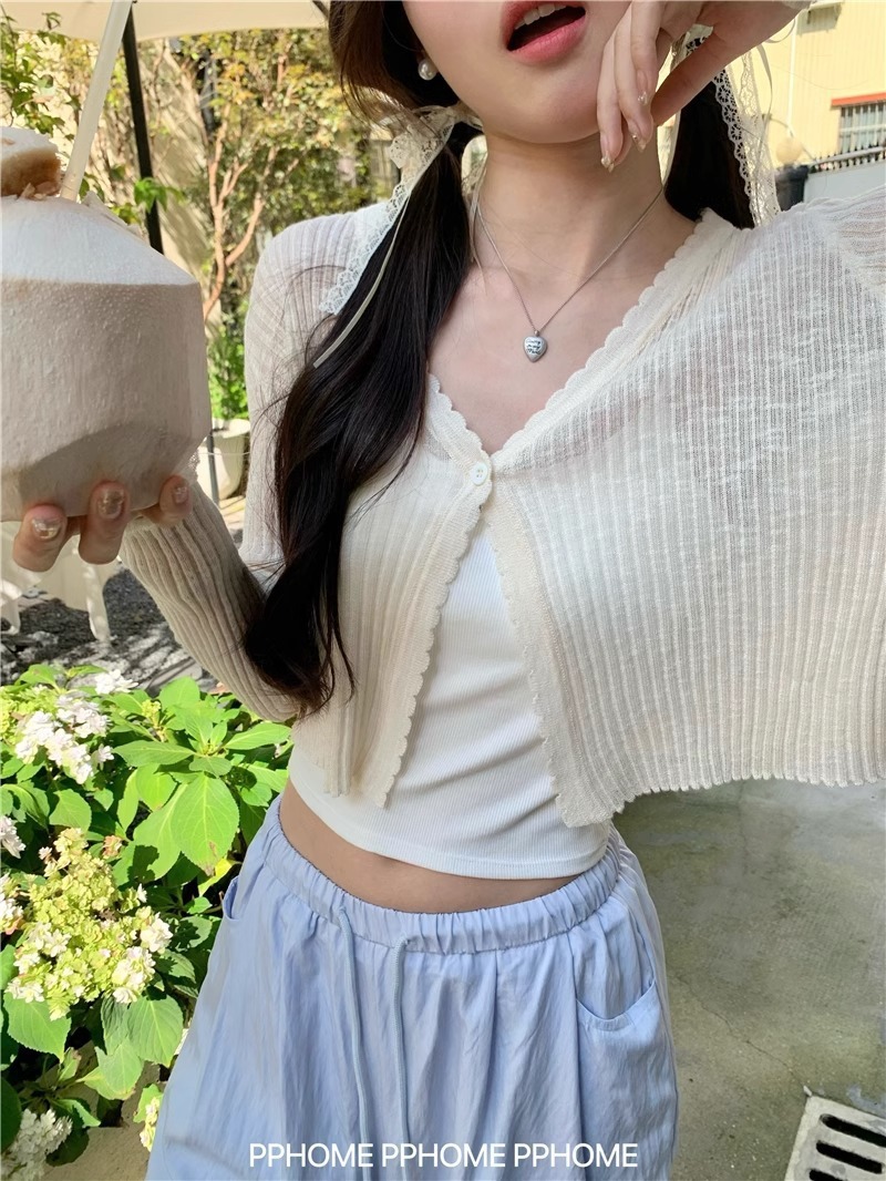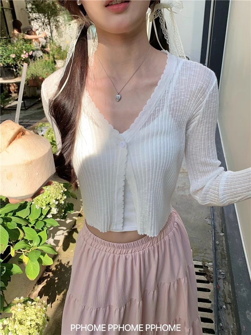 선스크린 카디건 여성 여름 얇은 외부 콜로 슬립 스커트 목도리 블라우스 아이스 실크 니트 에어컨 셔츠 짧은 자켓