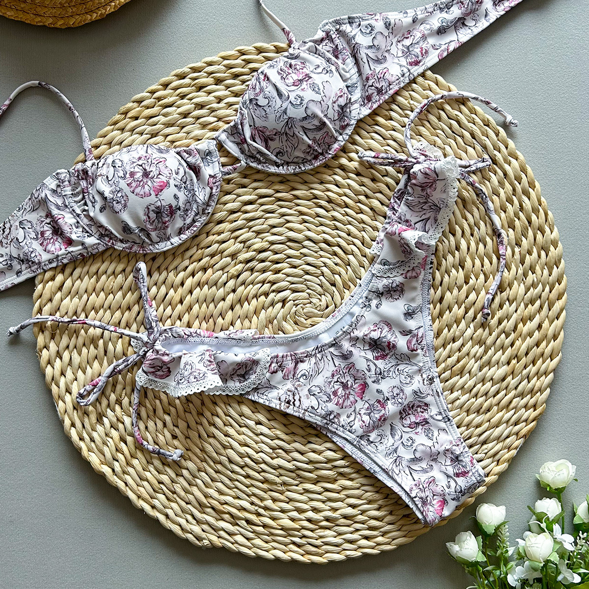 2025 새로운 비키니 섹시 유럽과 미국의 비키니 레이스 인쇄 국경 간 대외 무역 분할 여성 수영복 수영복