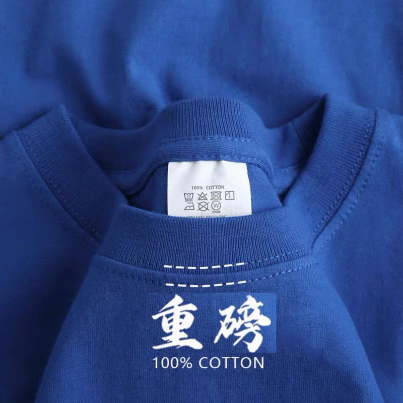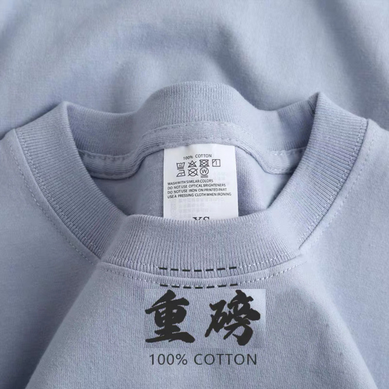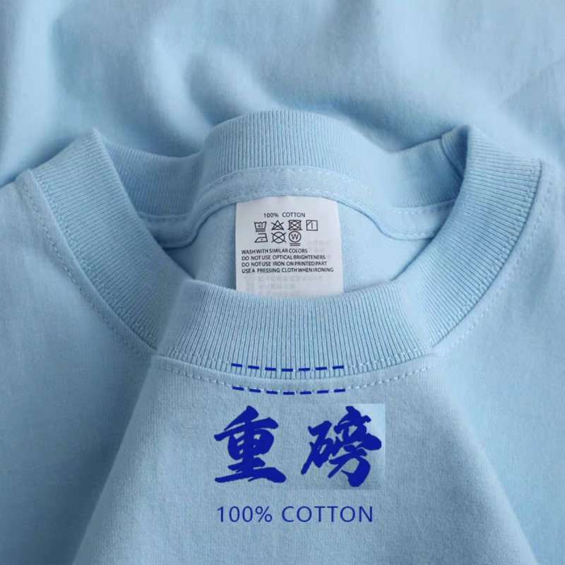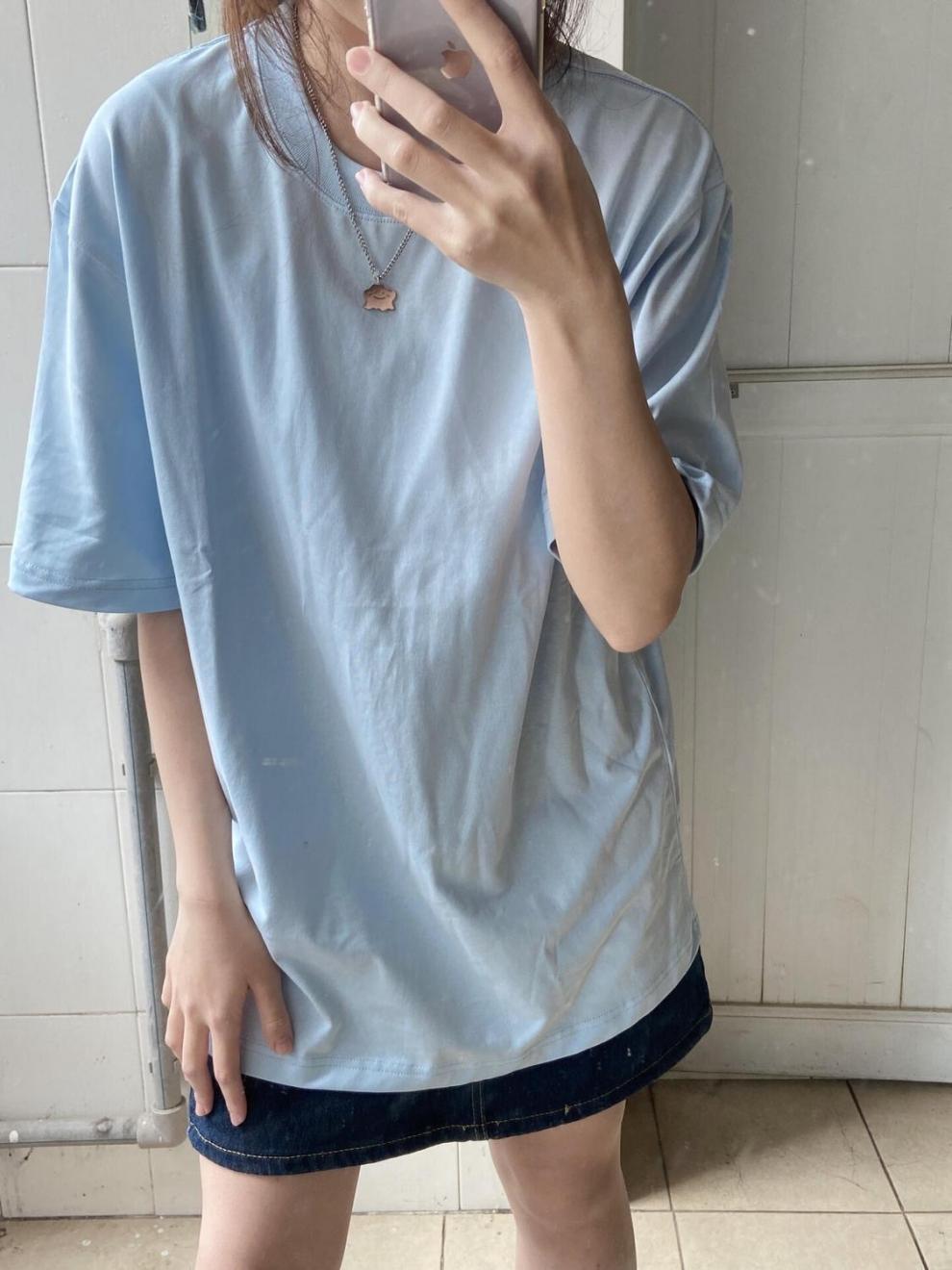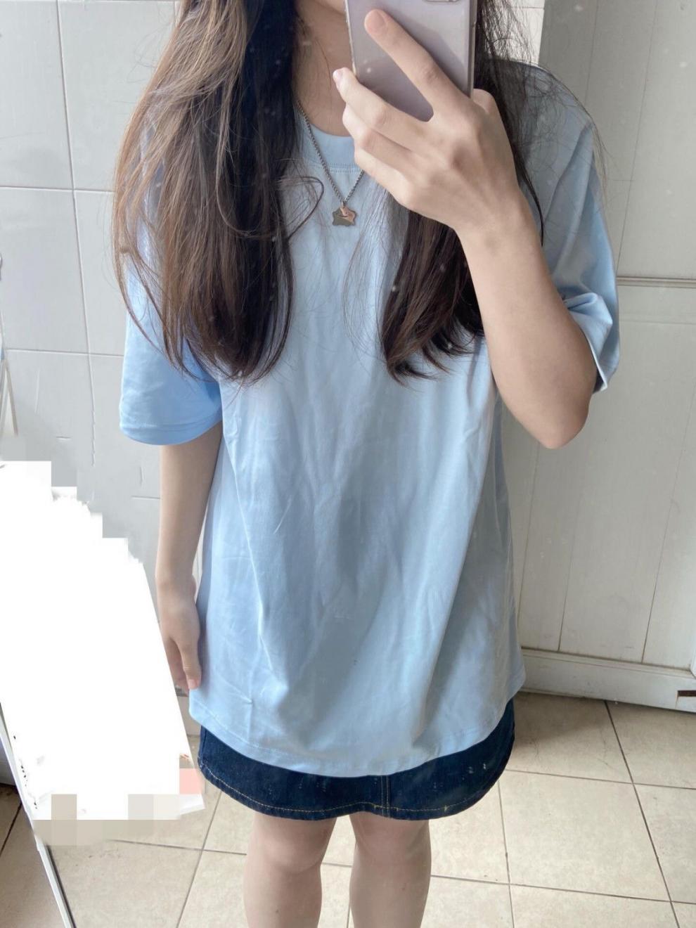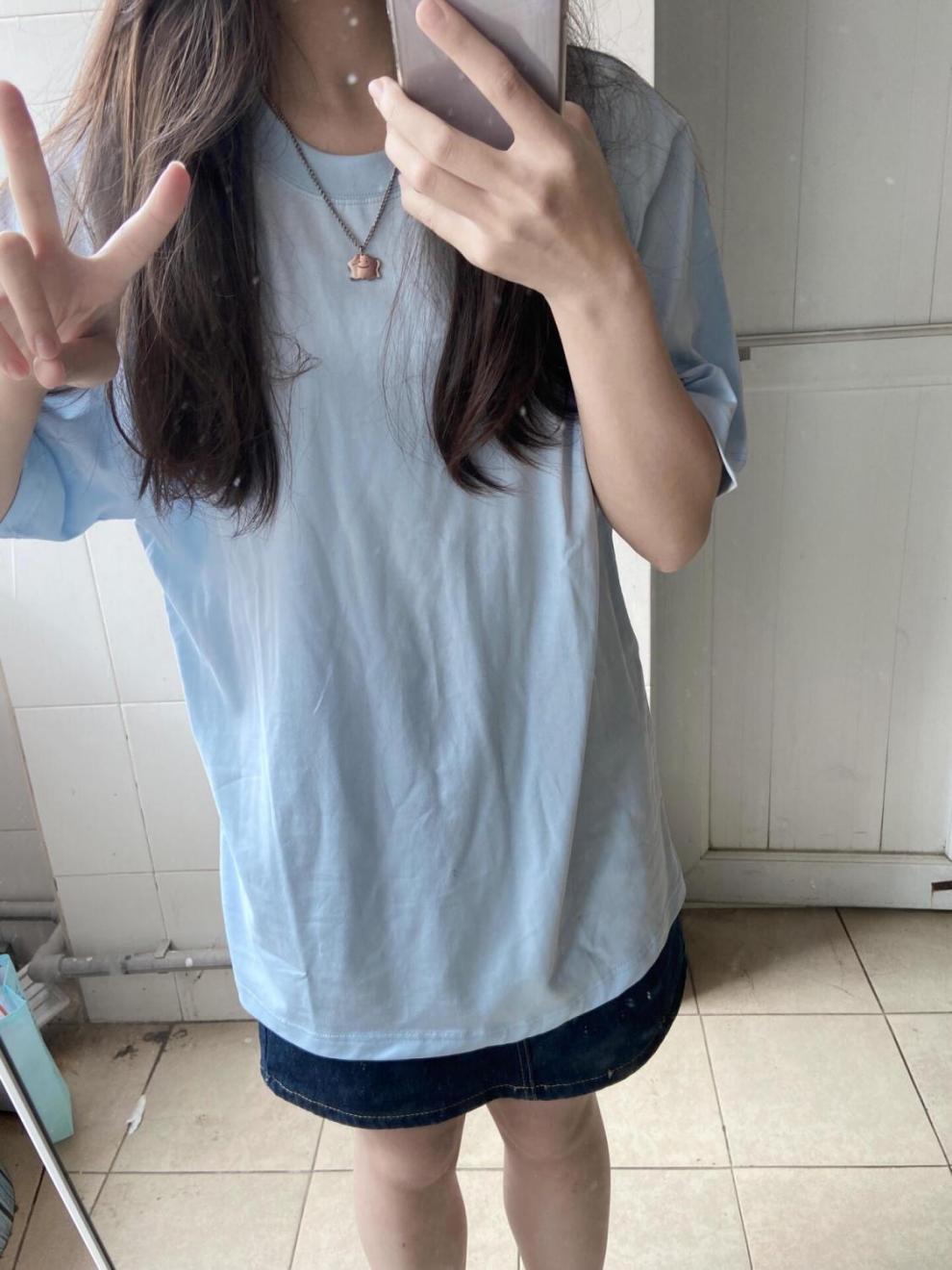 라이트 블루 밀크 블루 코튼 반팔 티셔츠 남자와 여자 아기의 블루 중량급 솔리드 컬러 기본 라운드 넥 루즈 트렌디 탑스토어 가기