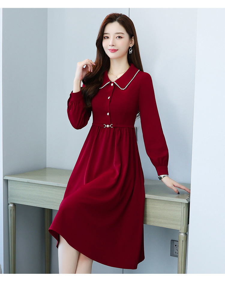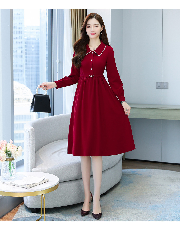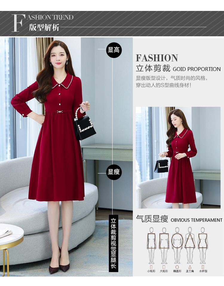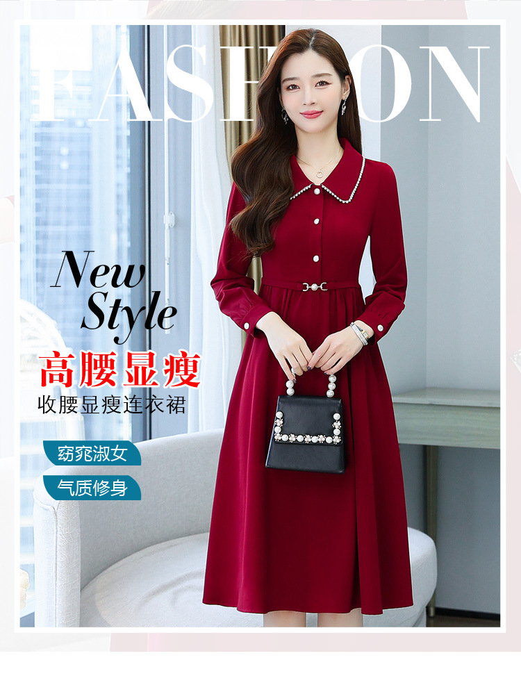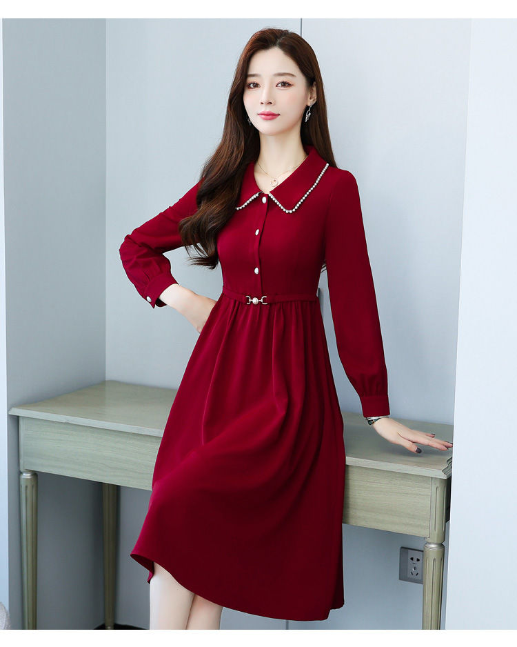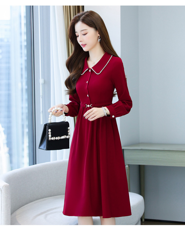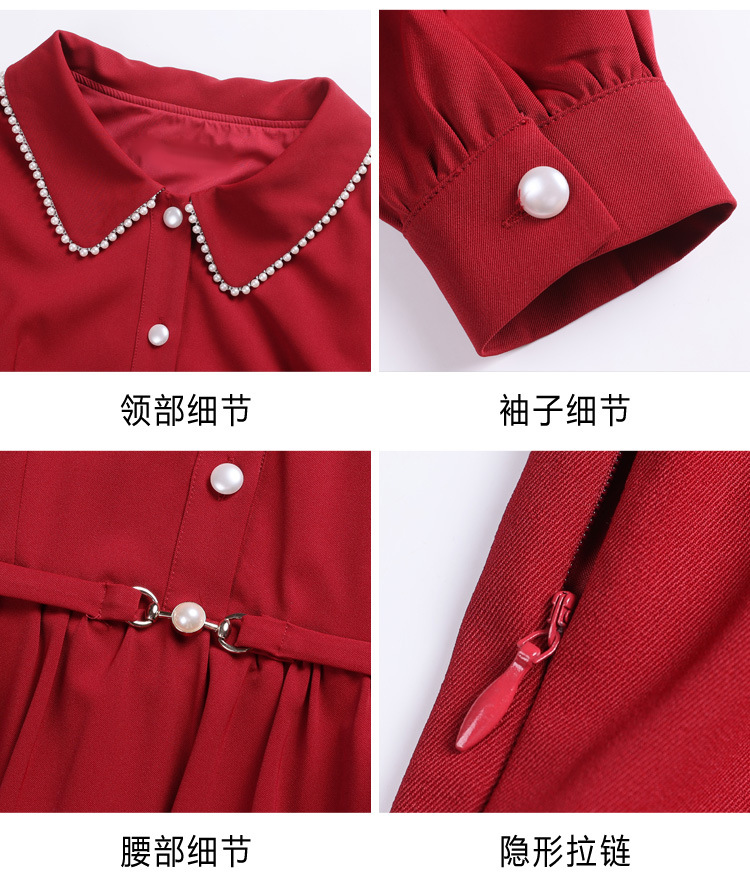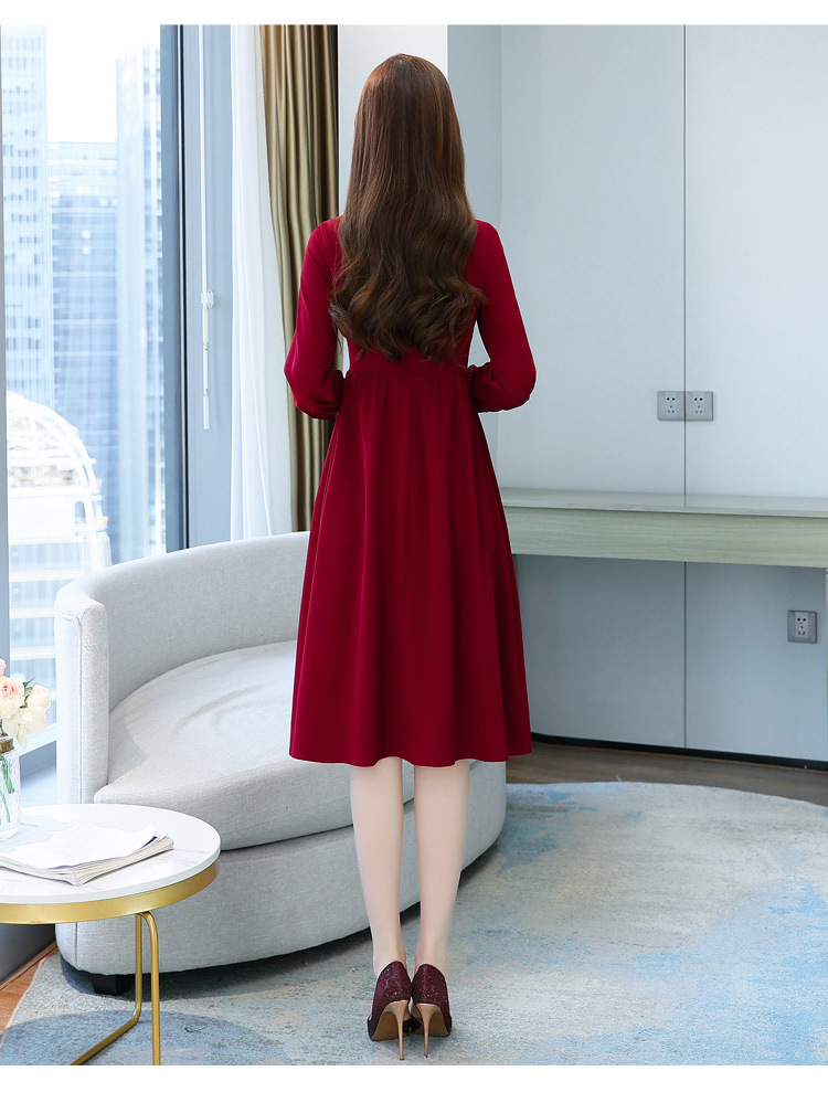 새로운 봄 여성복 슬리밍 우아한 프랑스 복고풍 긴 소매 레드 원피스 틈새 디자인스토어 가기