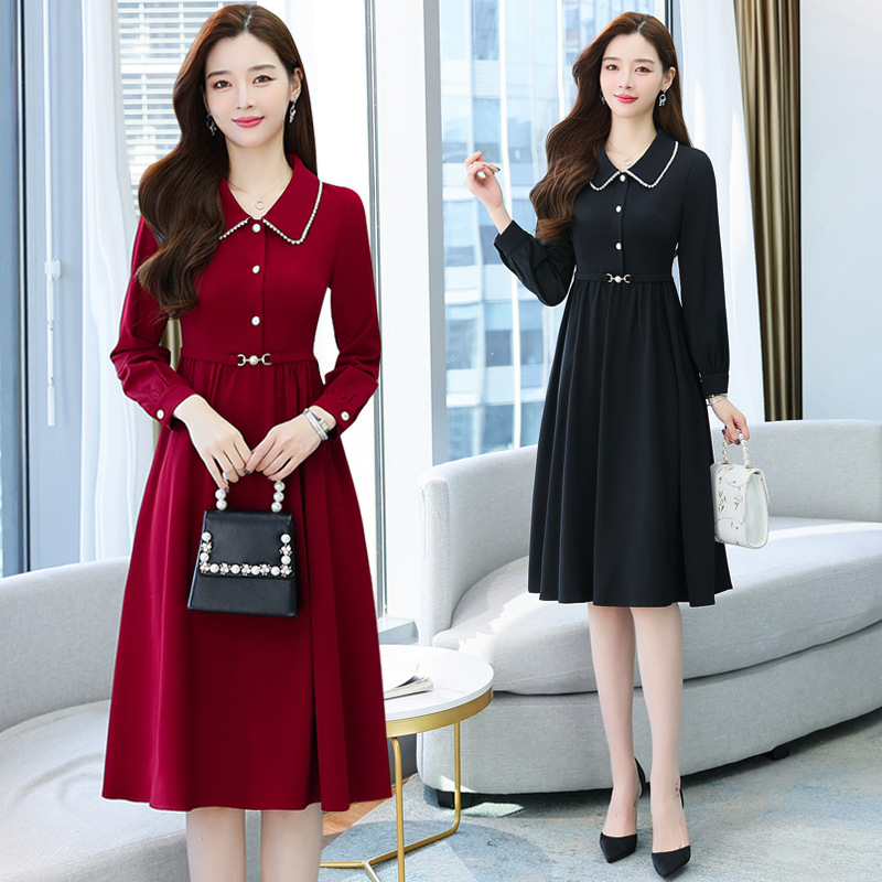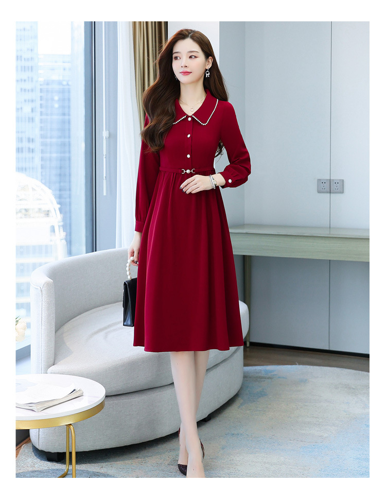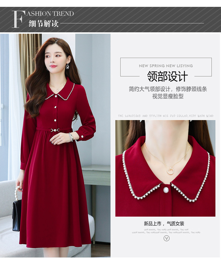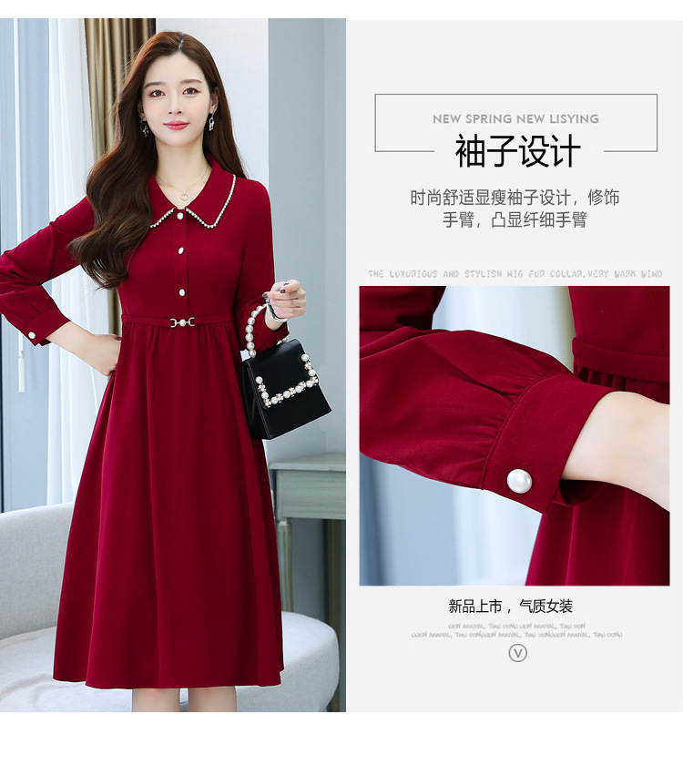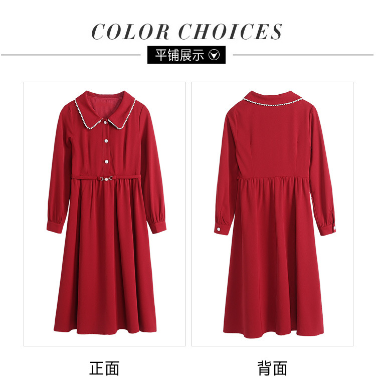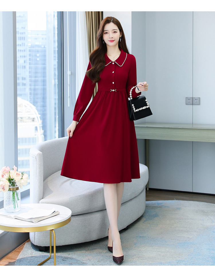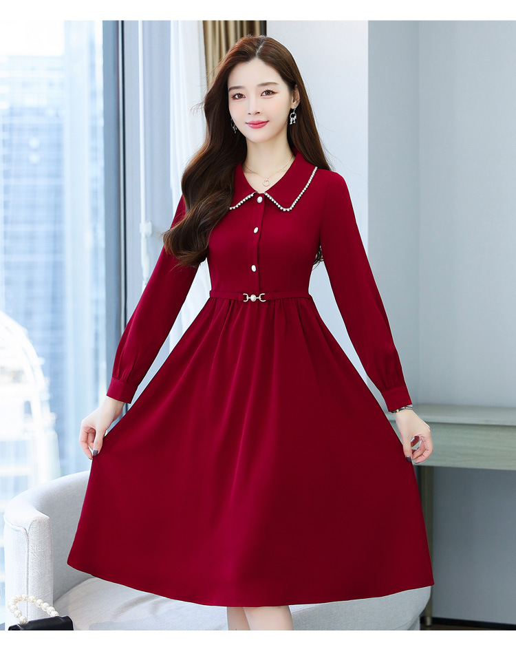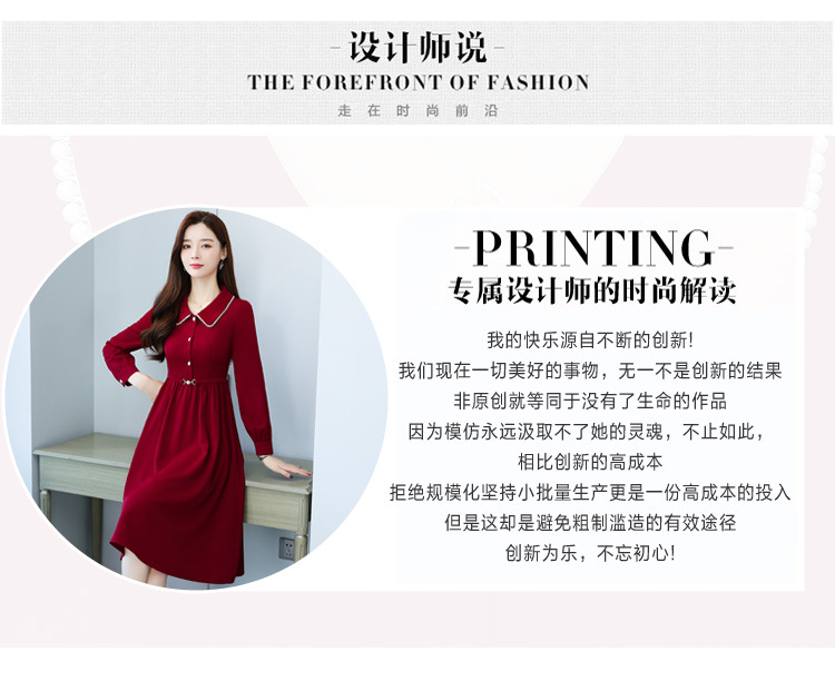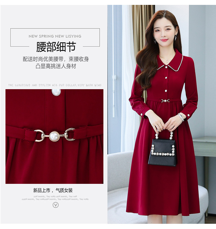 새로운 봄 여성복 슬리밍 우아한 프랑스 복고풍 긴 소매 레드 원피스 틈새 디자인스토어 가기