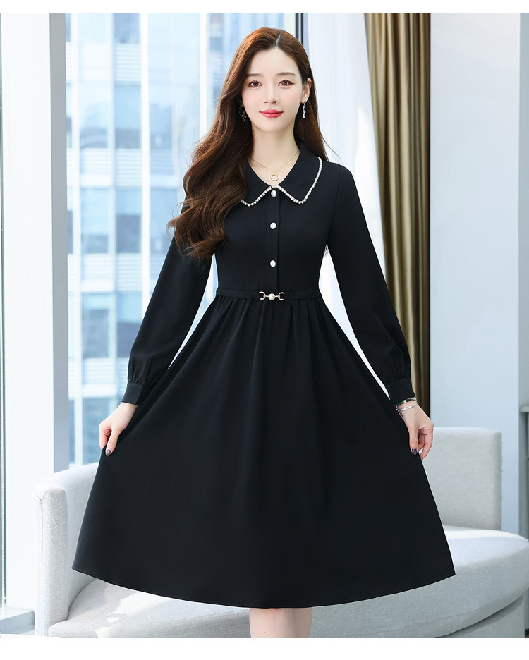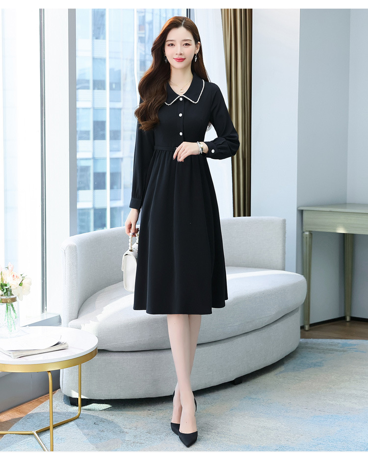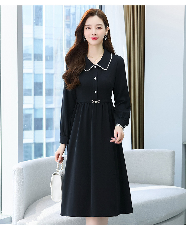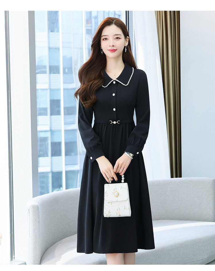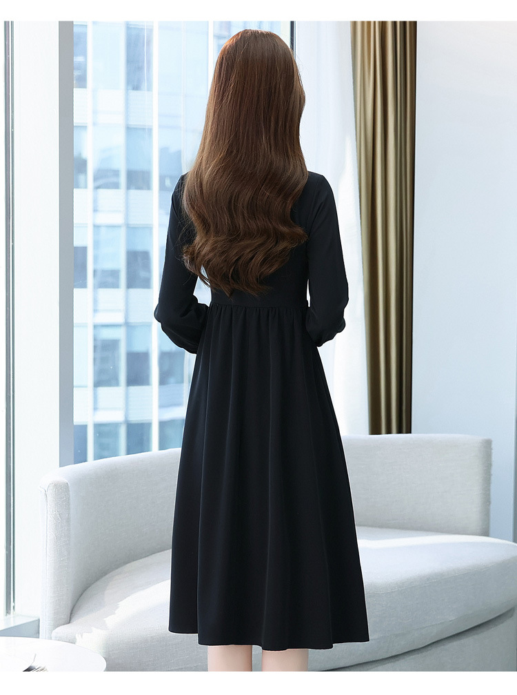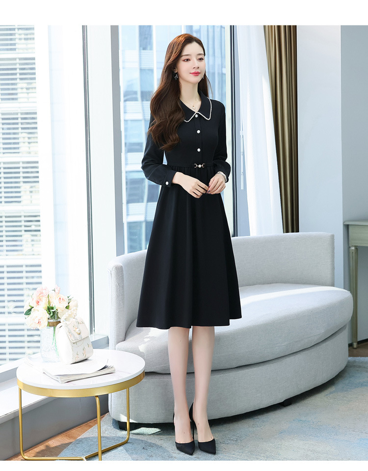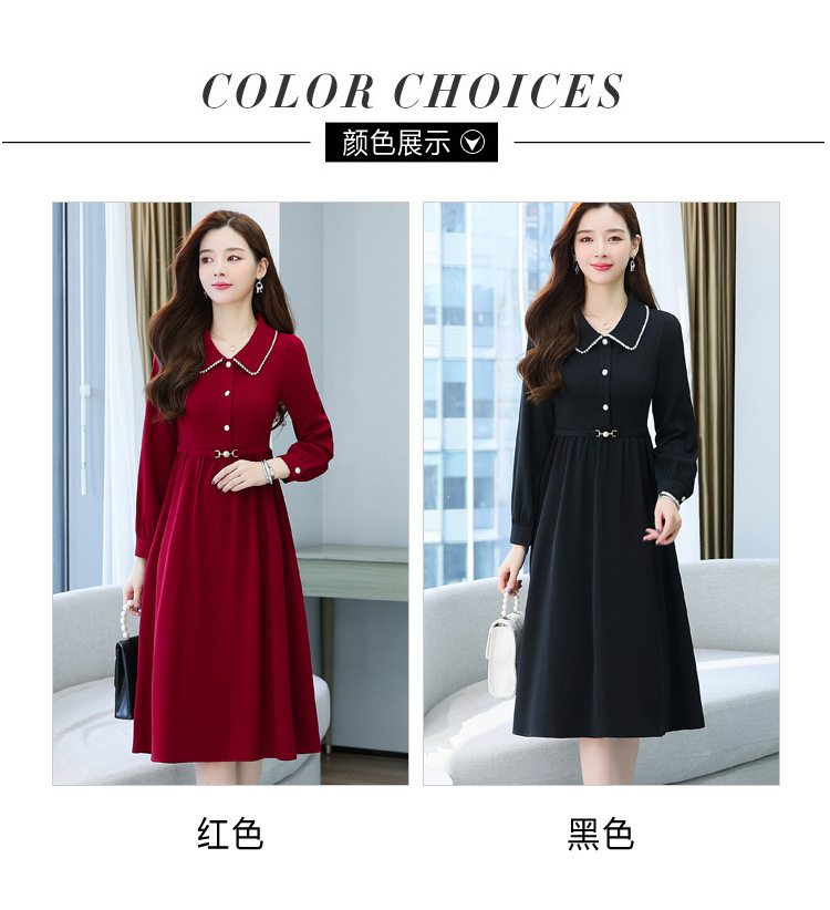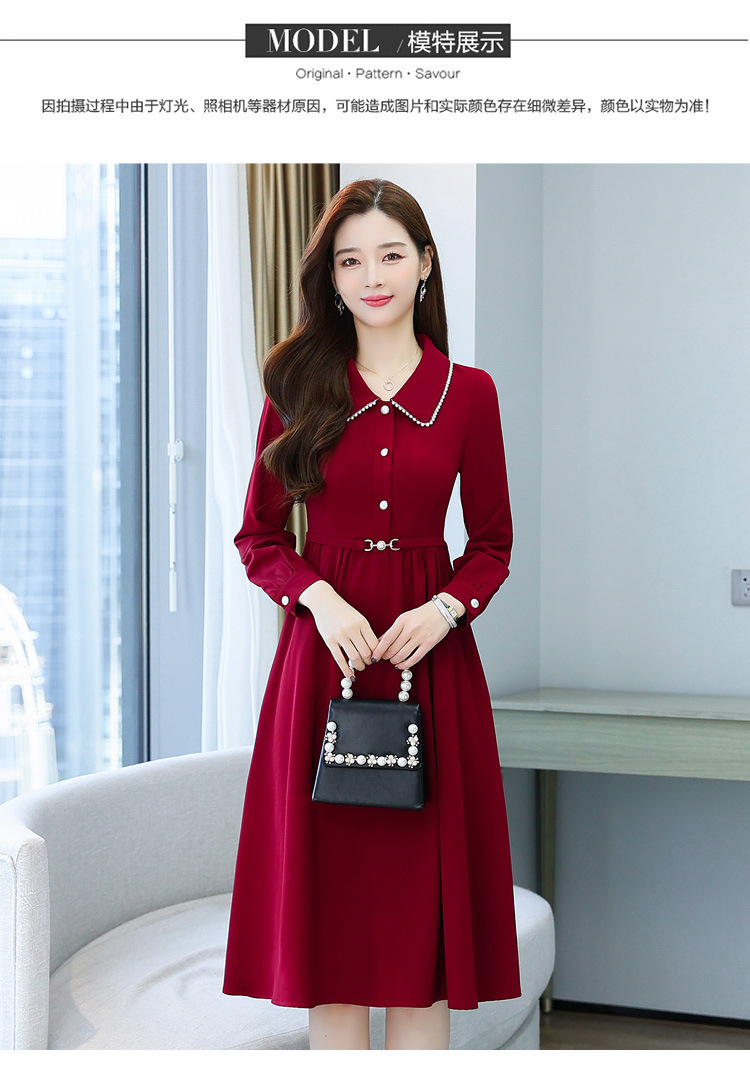 새로운 봄 여성복 슬리밍 우아한 프랑스 복고풍 긴 소매 레드 원피스 틈새 디자인스토어 가기