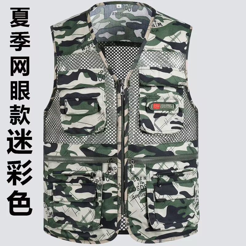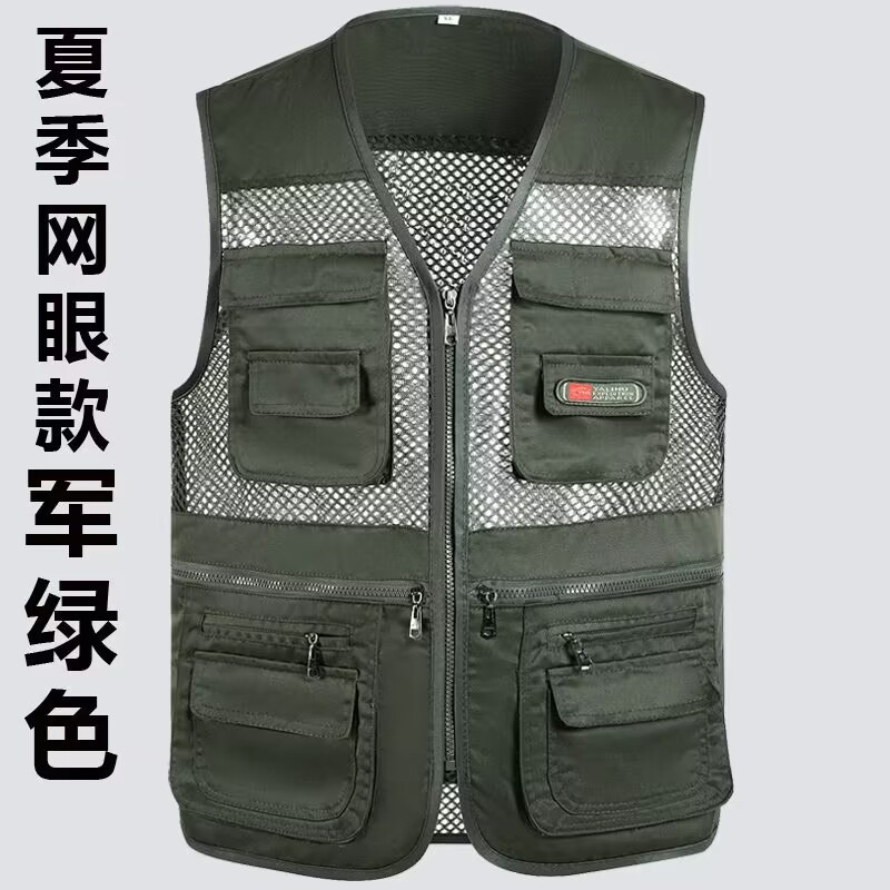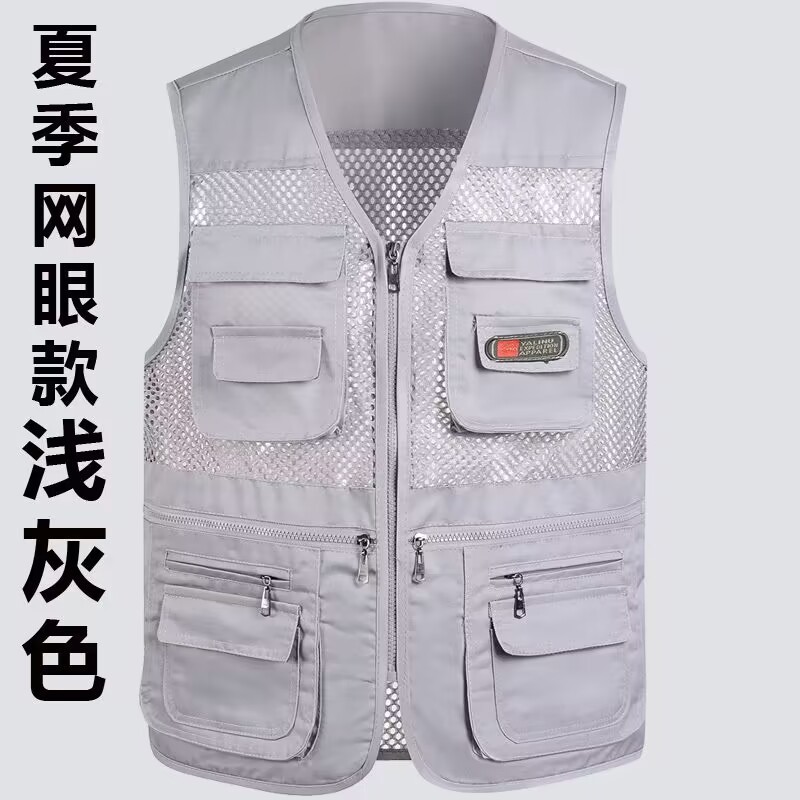 중년 및 노인 양복 조끼 남성 여름 메쉬 멀티 포켓 레저 사진 낚시 양복 조끼 느슨한 플러스 사이즈 아빠 양복 조끼스토어 가기