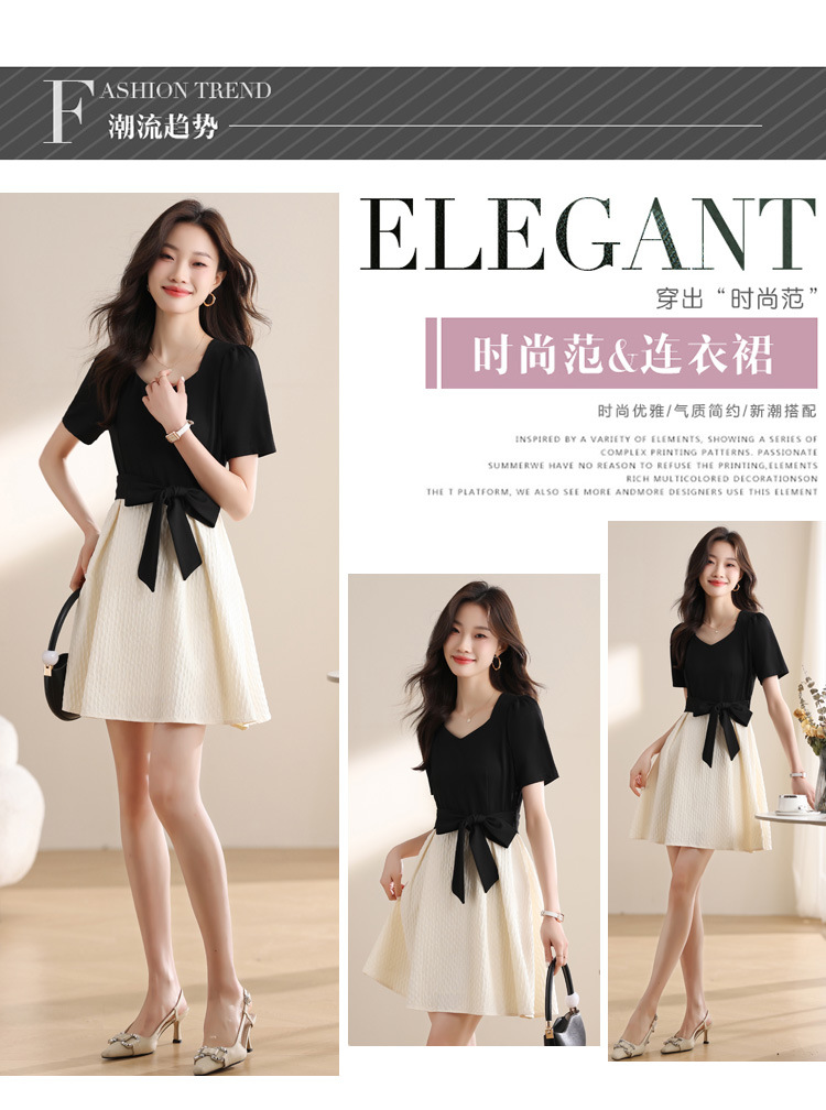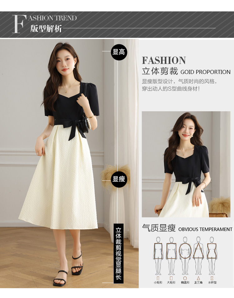 스퀘어 칼라 스티칭 원피스 여성 여름 원피스 새로운 우아한 슬리밍 디자인 센스 스커트 퍼프 소매 긴 스커트스토어 가기